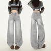 Jeans Americanos Retro Azules de Pierna Ancha Lavados 2025 Nuevos para Mujer Sueltos Adelgazantes de Cintura Alta Rectos hasta el Piso