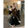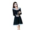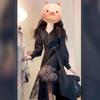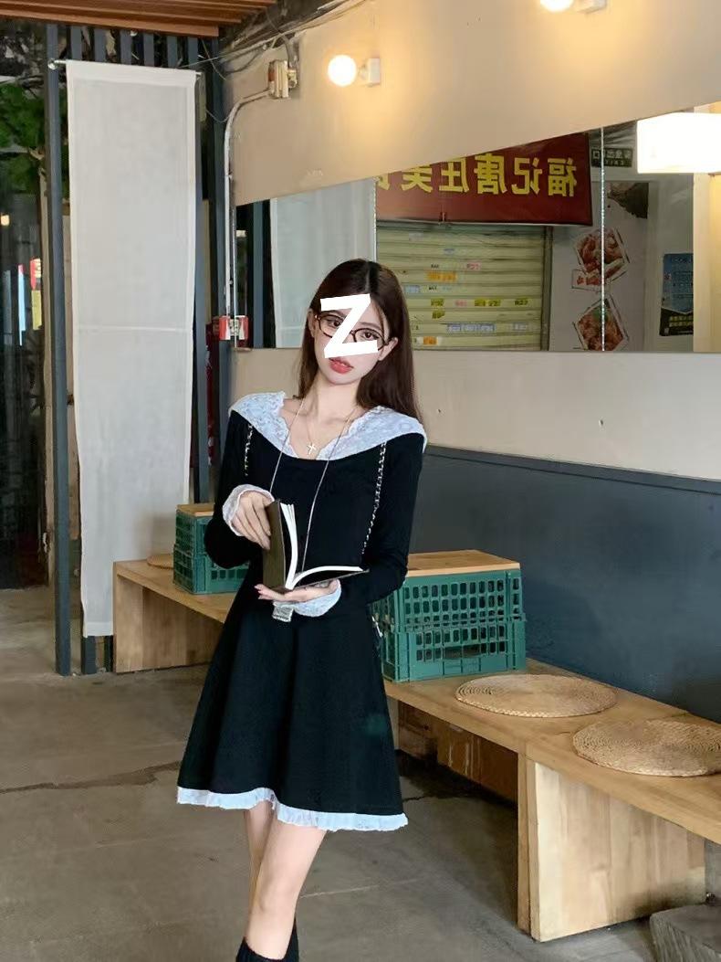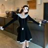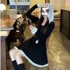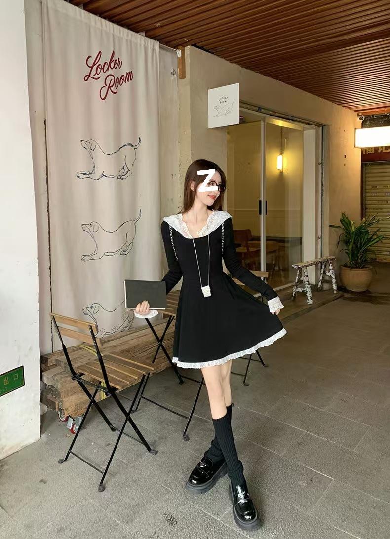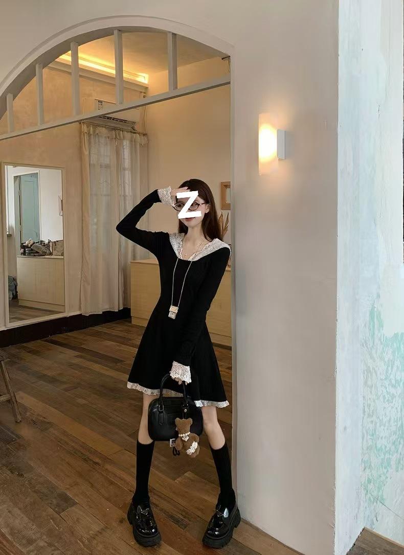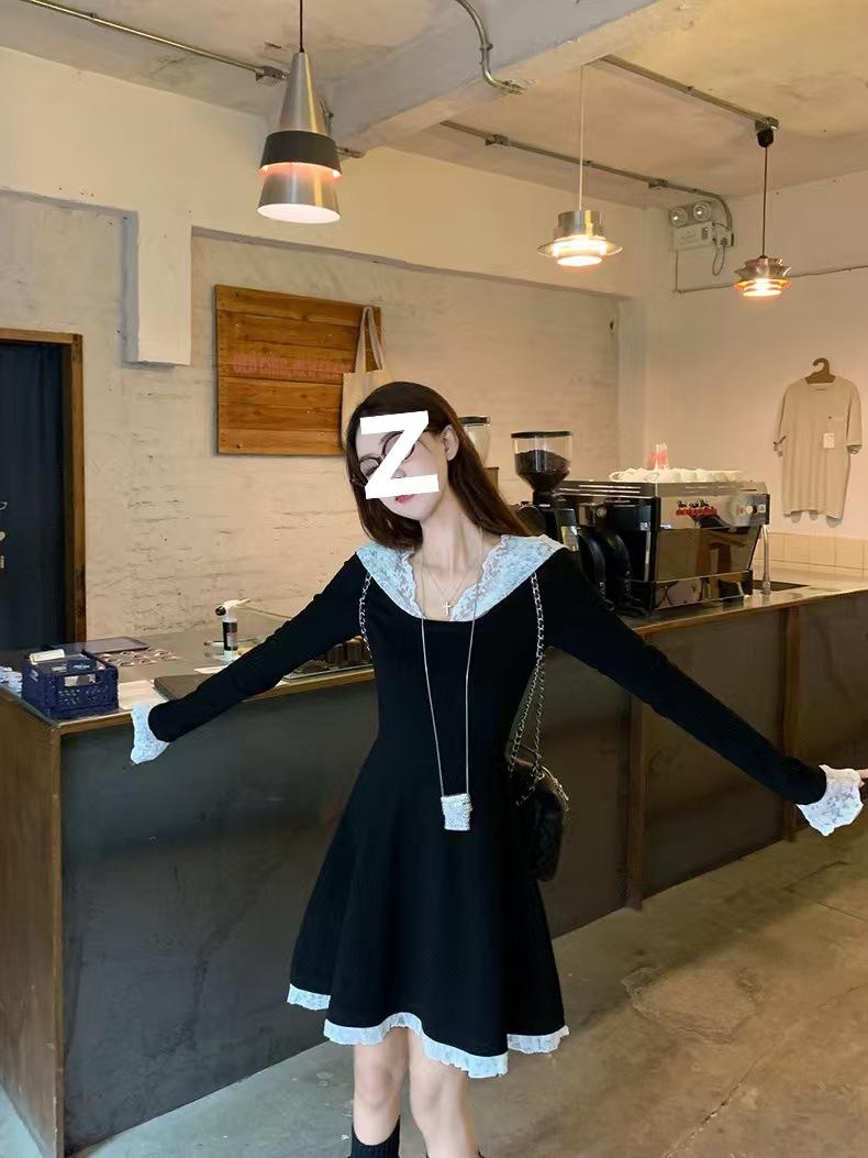 Vestido negro estilo Hepburn francés para mujer otoño/invierno 2025 nuevo encaje patchwork temperamento adelgazante línea A falda corta