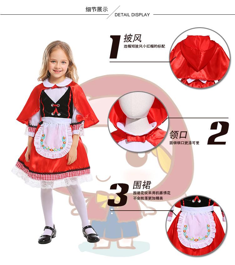 Disfraz de Halloween Cuento de Hadas Disfraz de Caperucita Roja Niñas Falda Disfraz para Disfrazarse Escenario Disfraz de Drama Disfraz de Cosplay