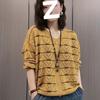 Suéter de Punto Holgado de Manga Larga de Otoño 2025 para Mujer de Talla Grande con Cuello en V Cubriendo la Carne Moda Casual Gordo mm Suéter de Punto