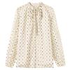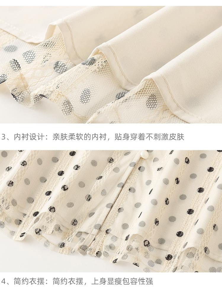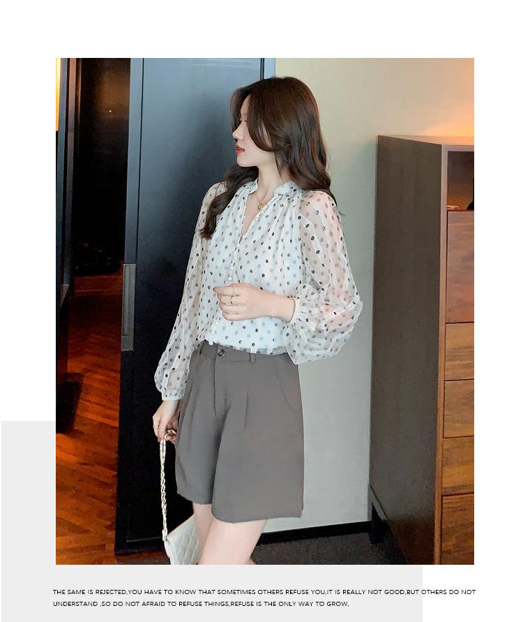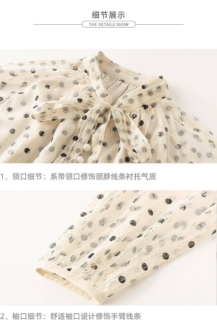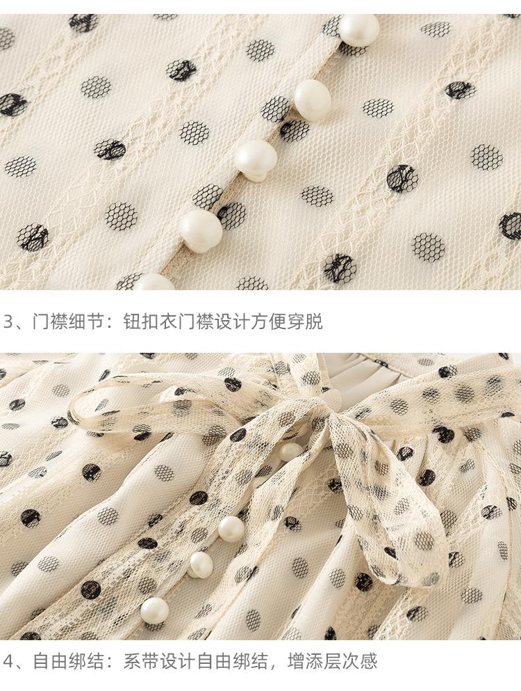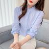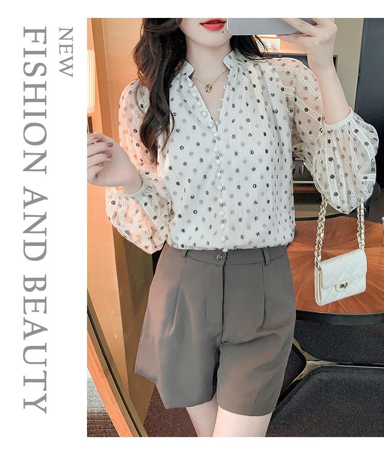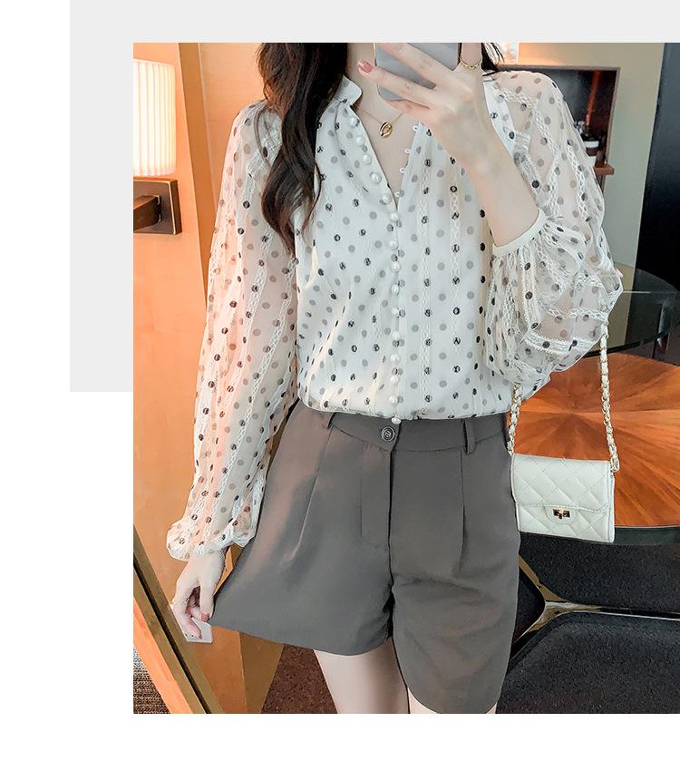 Camisa de gasa de estilo coreano para mujer, camisa de manga larga con cuello en V y costuras de malla, disponible en primavera de 2025.