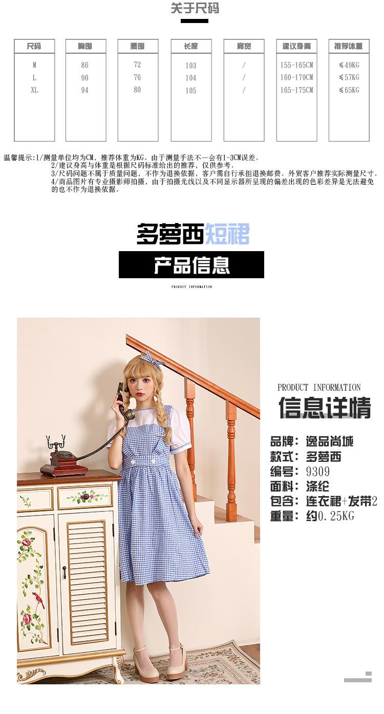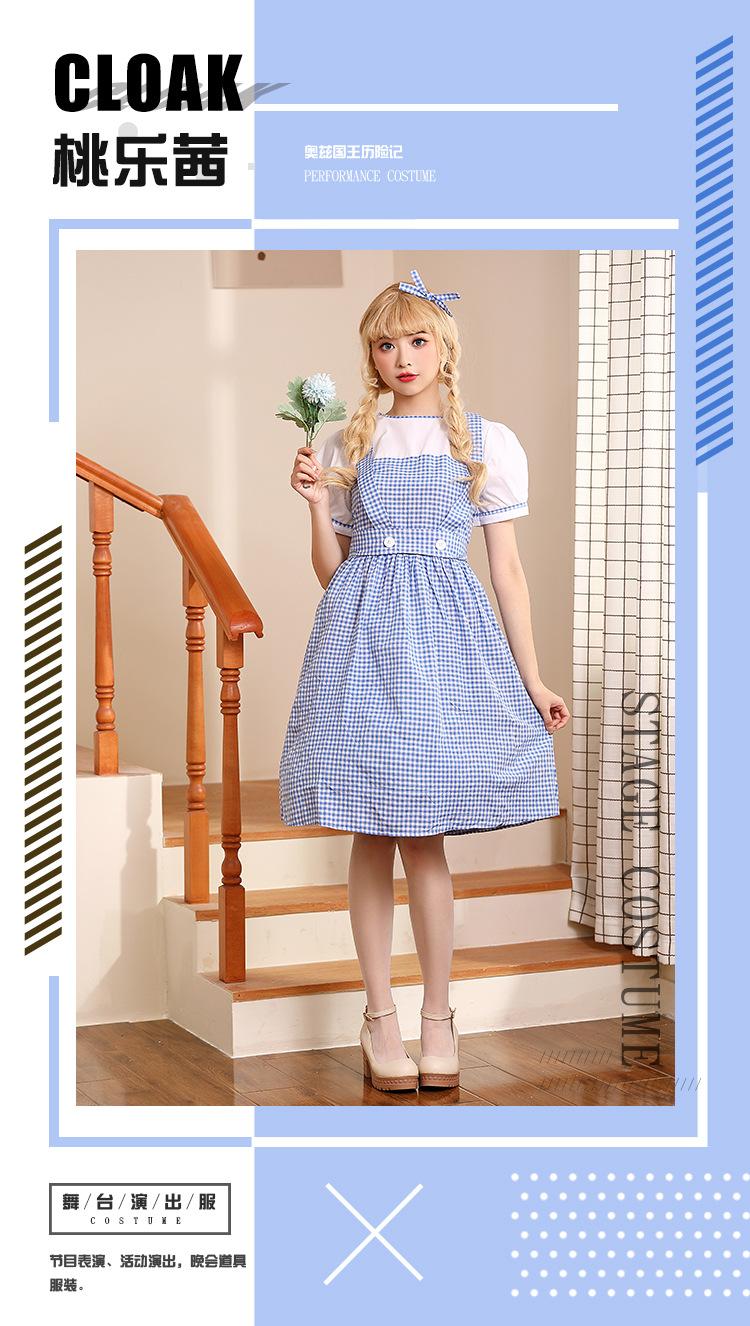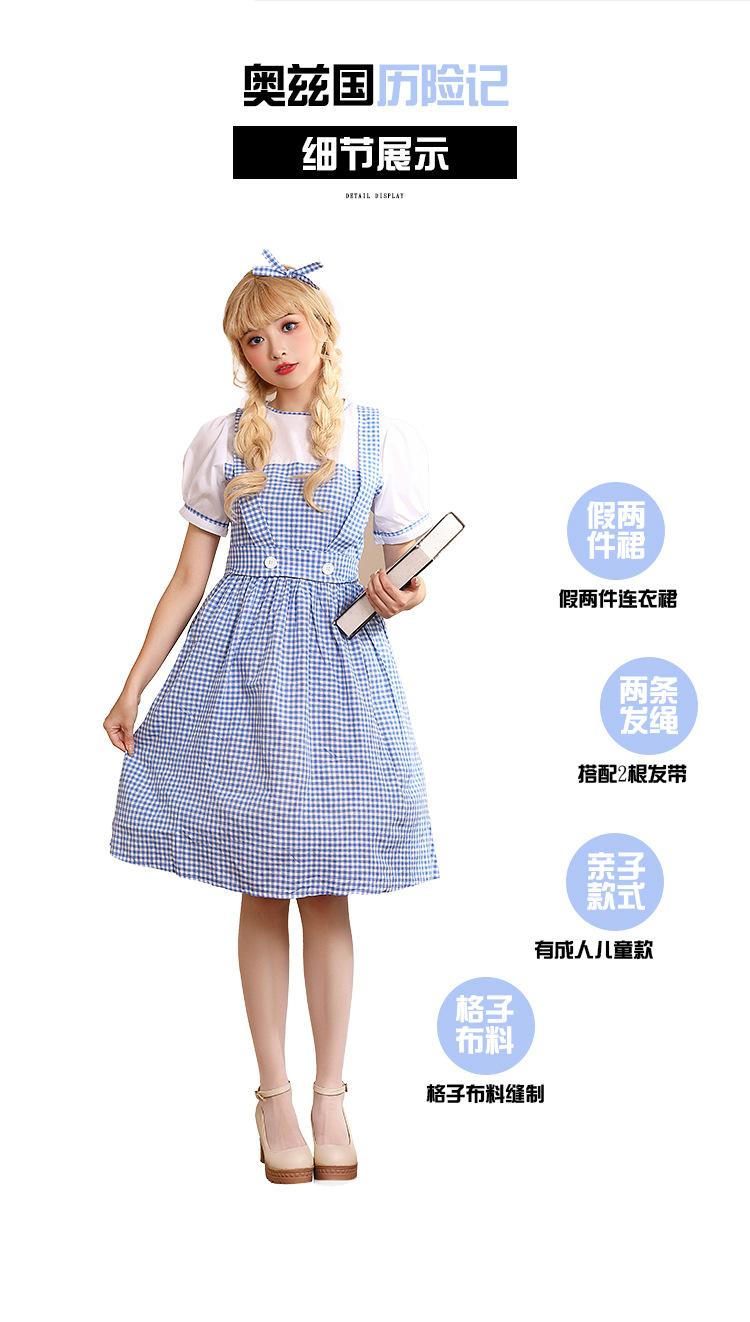 Disfraz de Halloween El Mago de Oz Dorothy Falda Azul de Pago Disfraz de Cuento de Hadas Falda de Doble Cola de Caballo