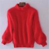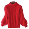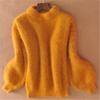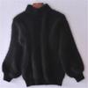 Otoño e Invierno Nuevo Suéter Largo de Lana de Visón de Cuello Alto para Mujer Jersey Corto Grueso Suéter de Visón Manga Linterna Abrigo Holgado