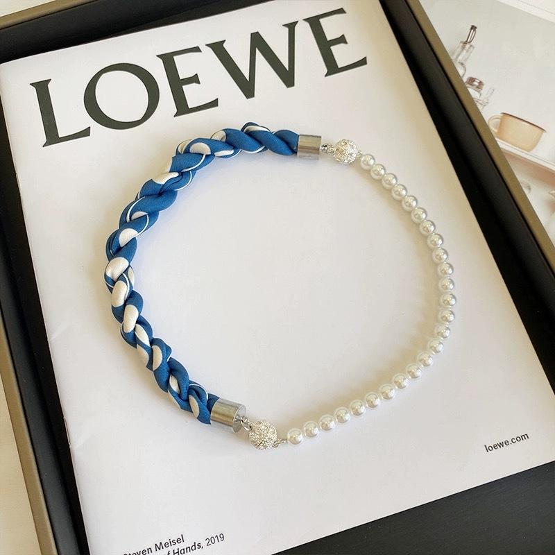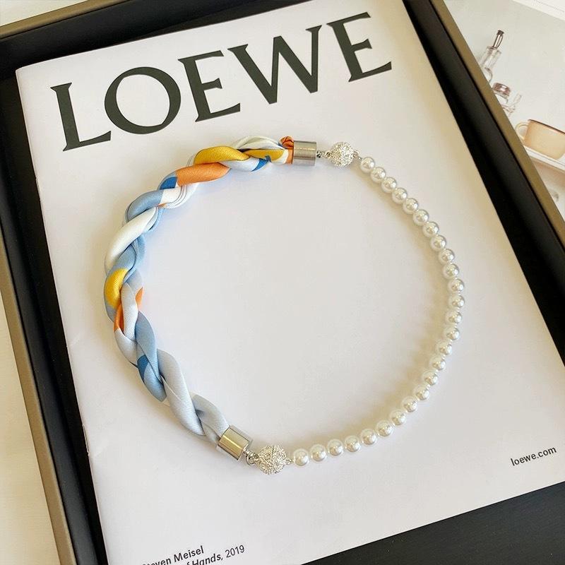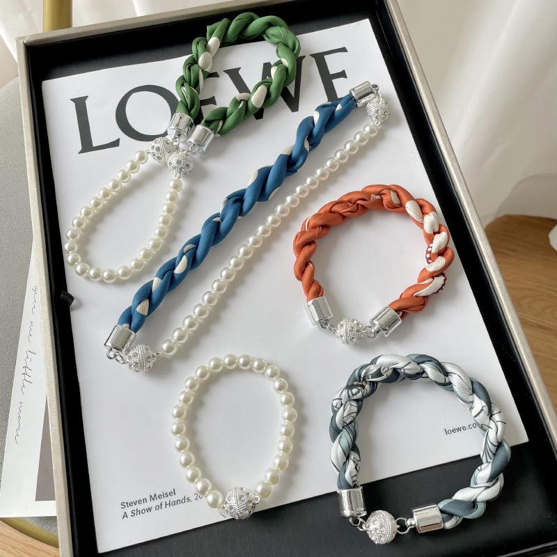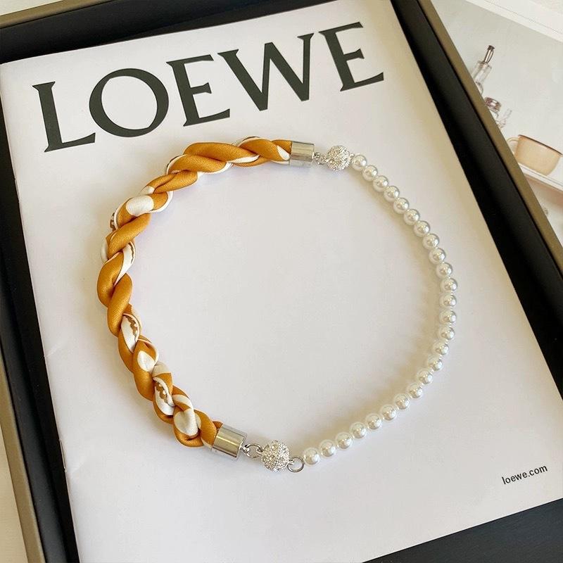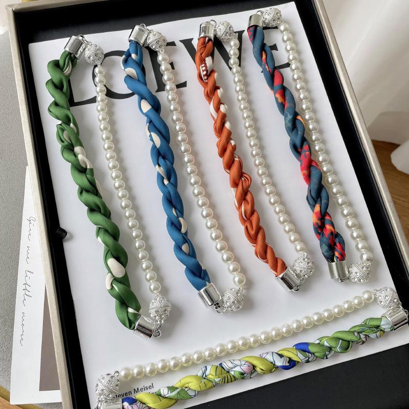 Nuevo Pañuelo de Seda Perla Multifuncional Perezoso Collar para Mujer Popular en Internet Hebilla Magnética Pañuelo Pequeño Primavera y Verano Decoración para el Cuello Clavícula