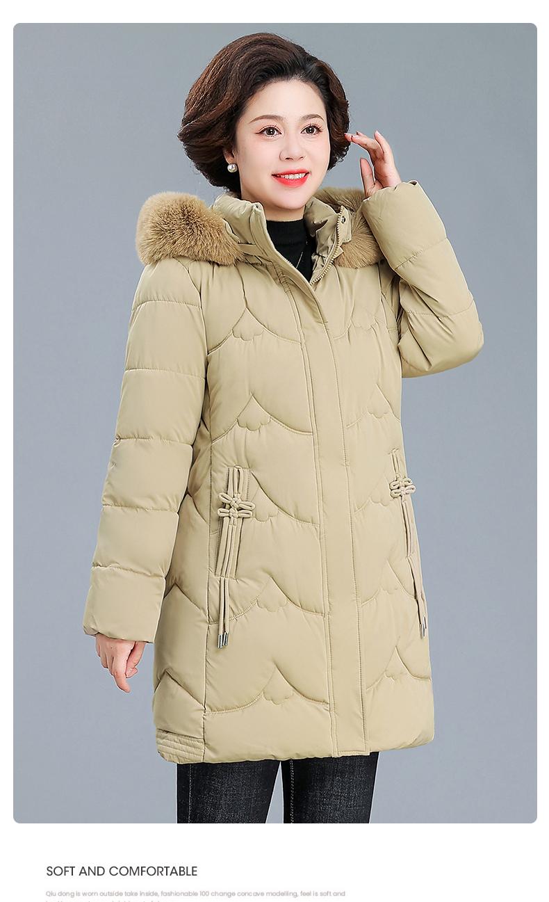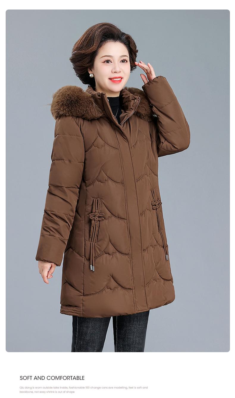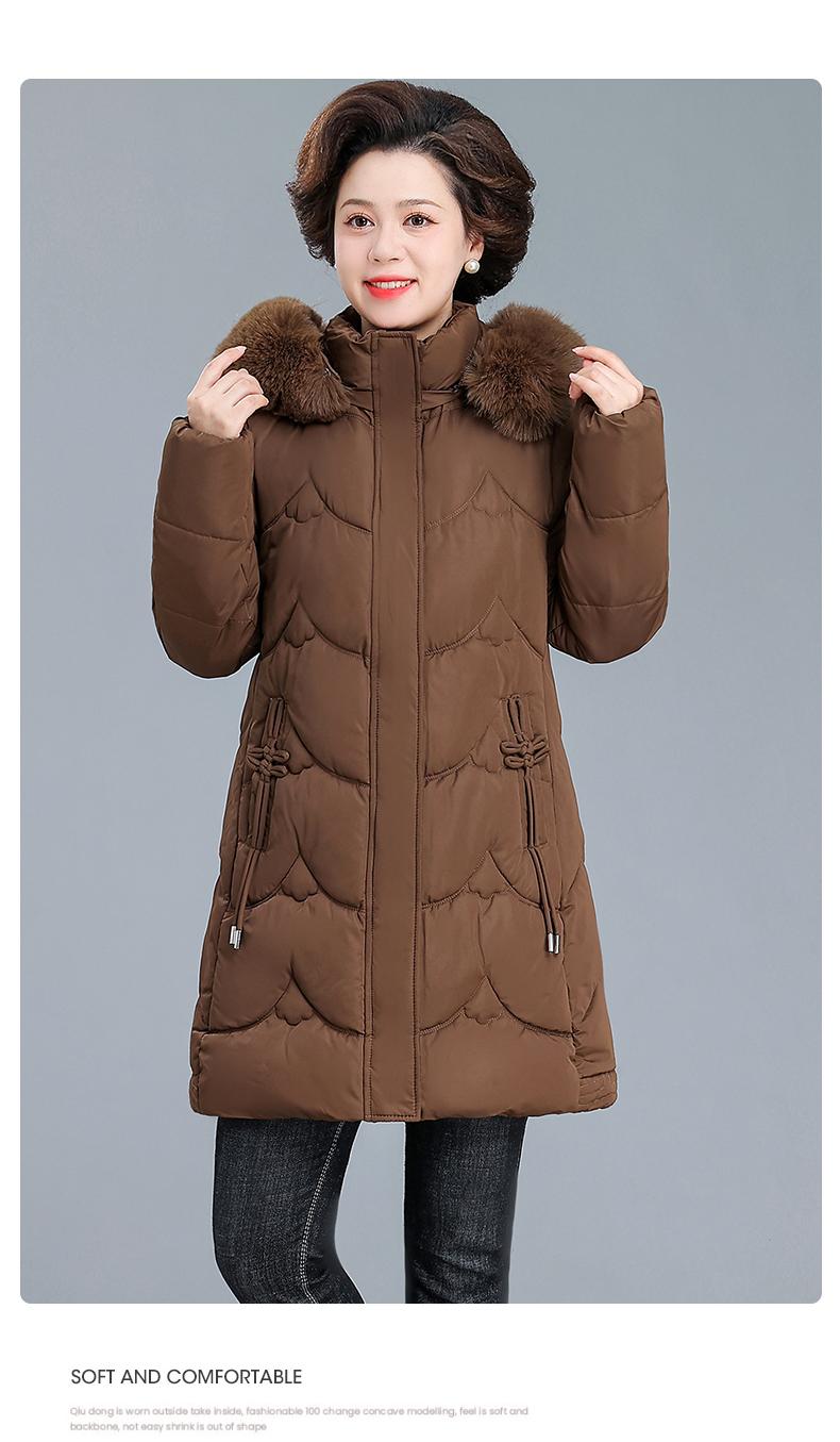 Abrigo de Algodón Acolchado de Invierno para Madre Estilo Occidental Abrigo de Algodón Cálido para Mujeres de Mediana Edad y Ancianas Otoño e Invierno Nuevo Abrigo de Algodón Largo Medio