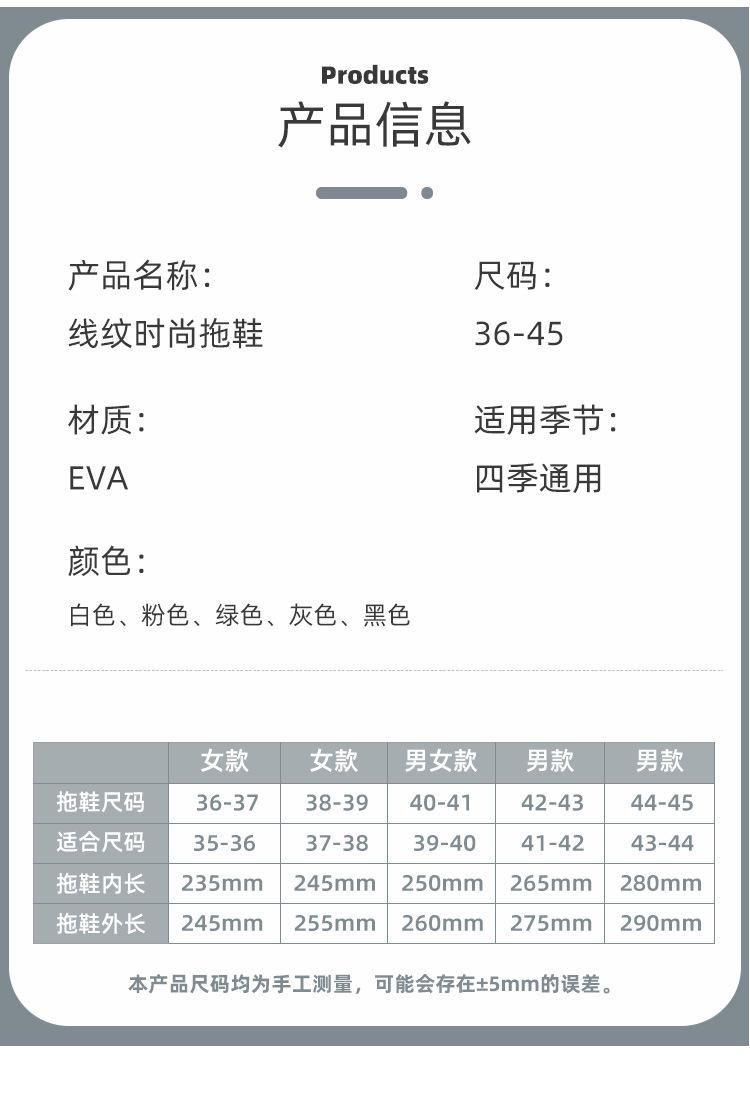 Las pantuflas de EVA suelen llamarse pantuflas de espuma, son ligeras y de suela blanda, y tienen las características: no se ponen negras ni huelen mal fácilmente con el uso normal, y no se rompen fácilmente. (Nota: las pantuflas deben evitar la exposición a altas temperaturas para prevenir la contracción y la deformación)