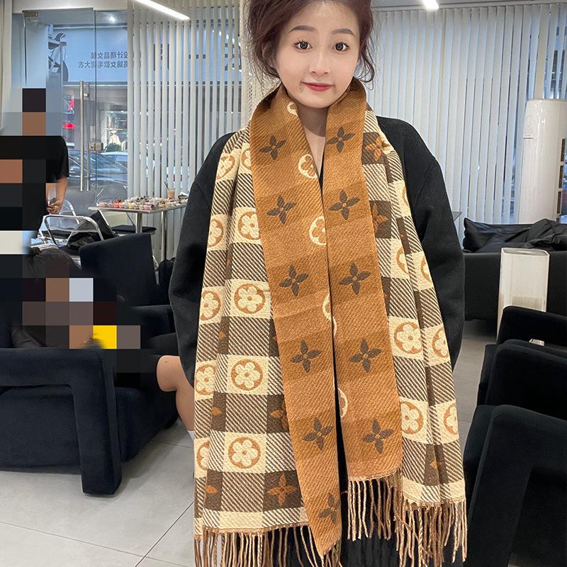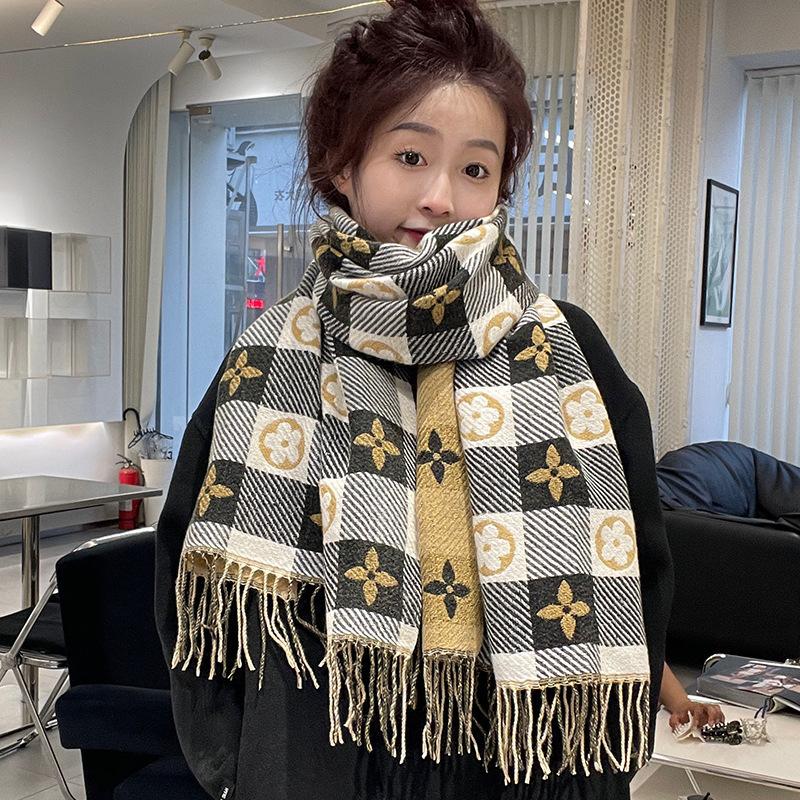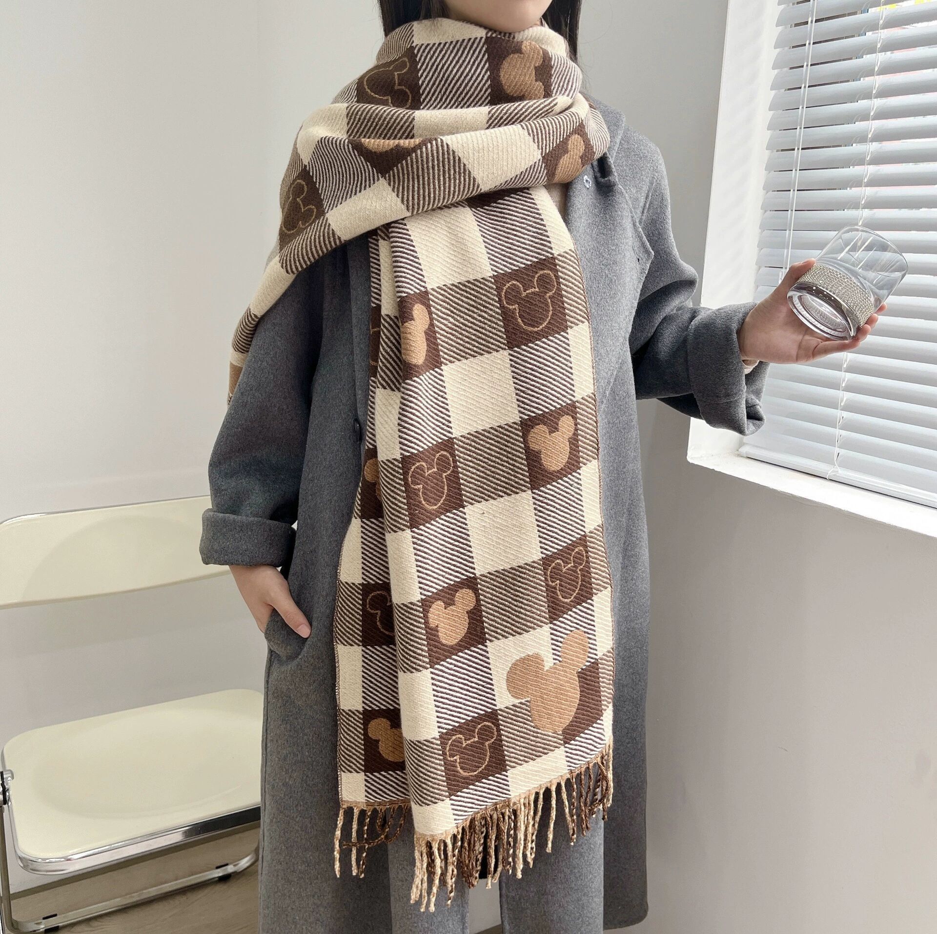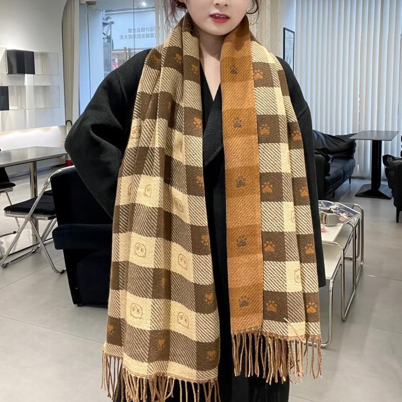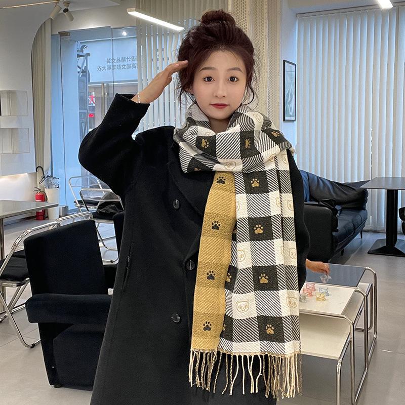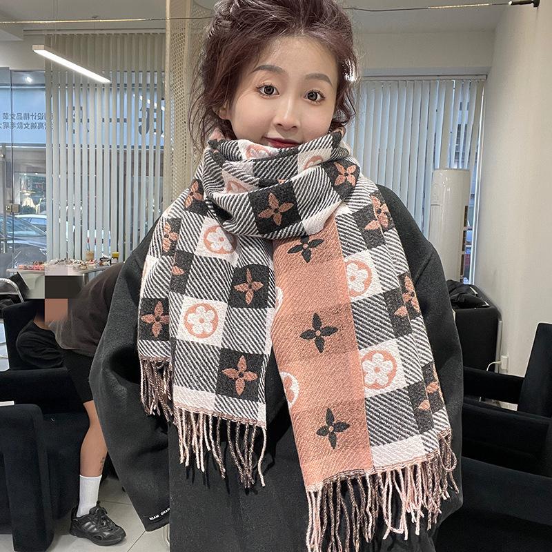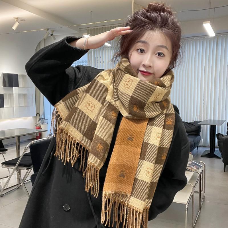 Nuevo Otoño e Invierno Nuevo Amor Bufanda de Cachemira Imitación a Cuadros Estilo Coreano Gruesa Cálida Calentador de Cuello para Estudiantes Chal con Borlas Largas