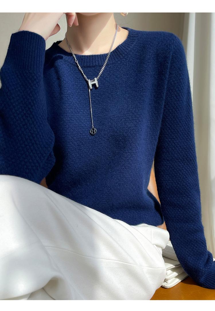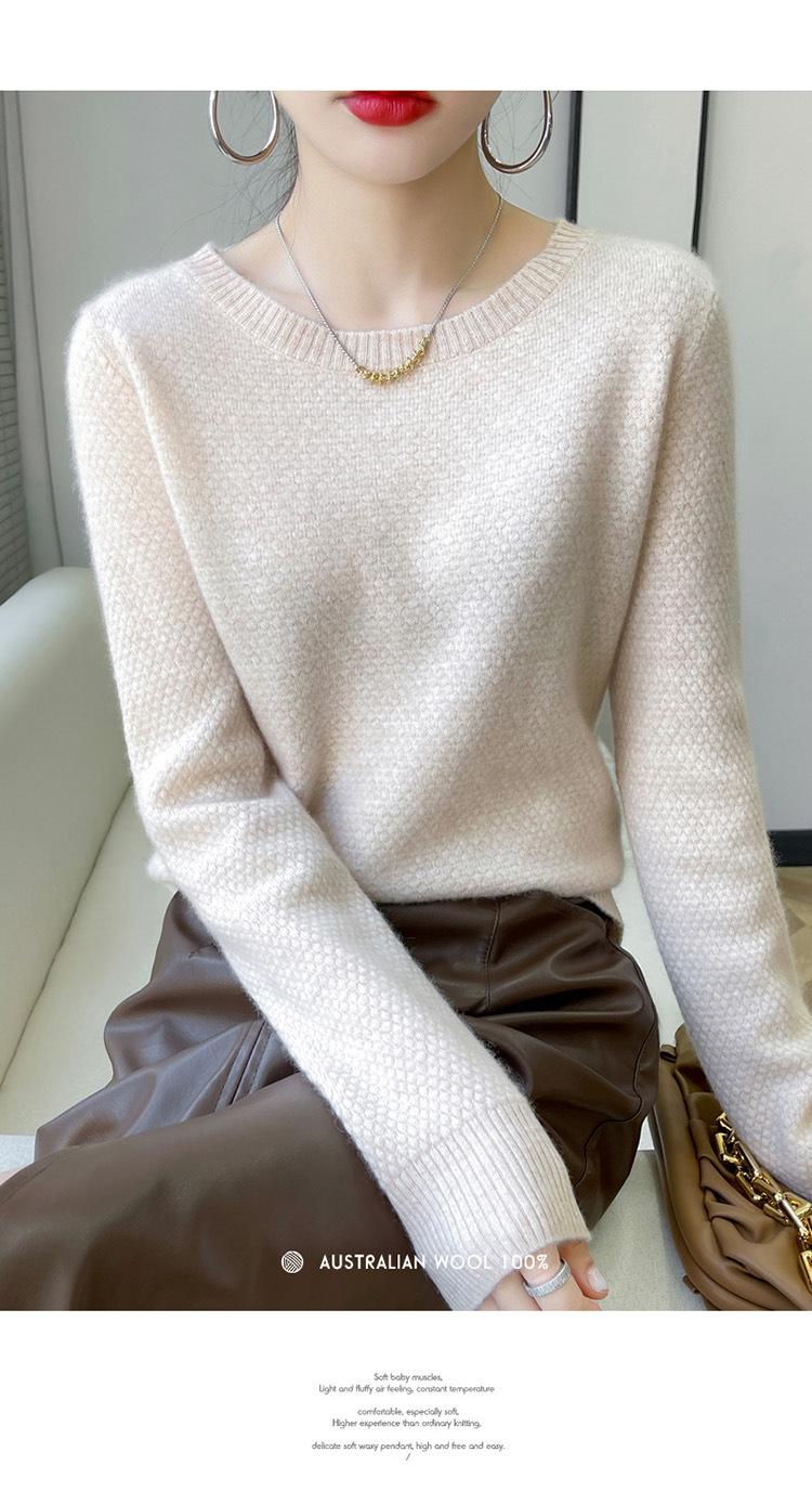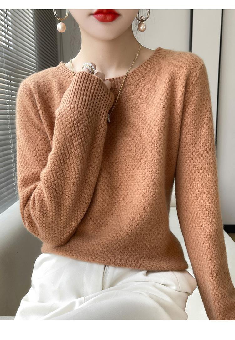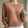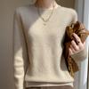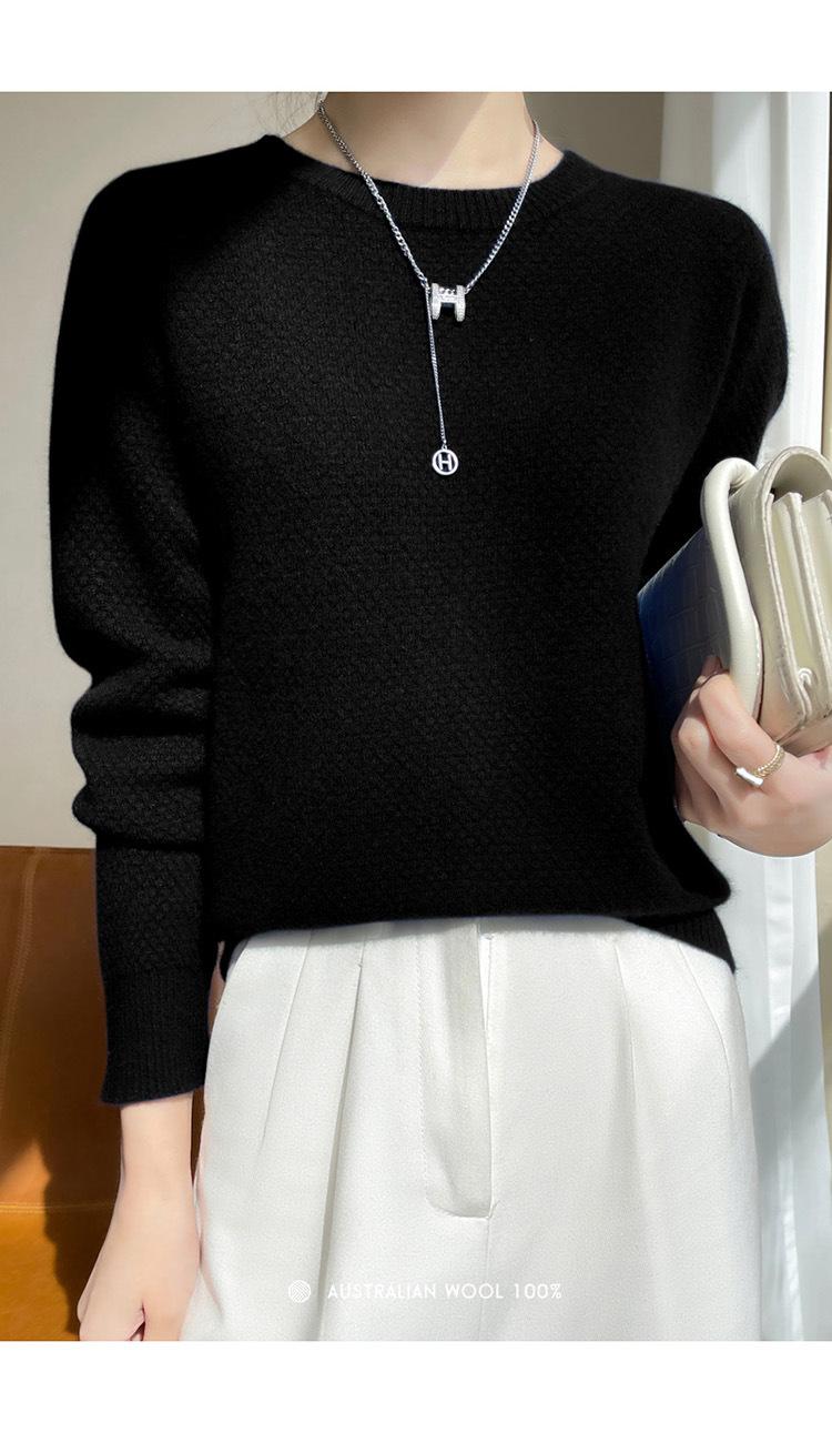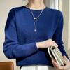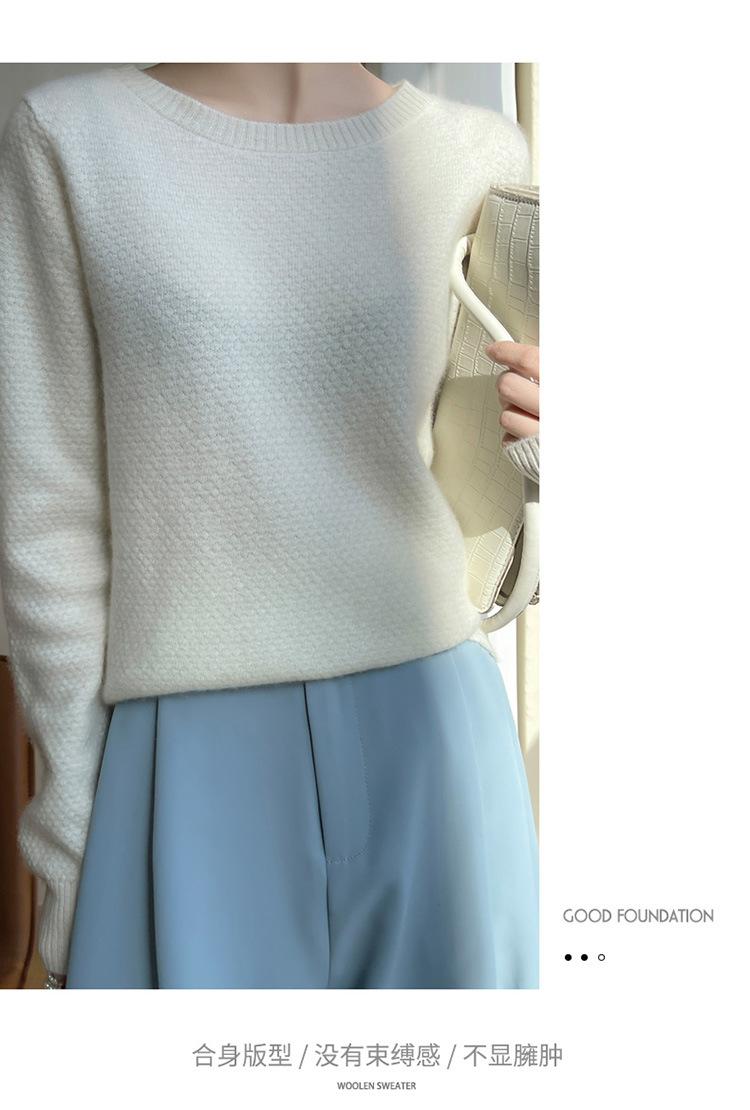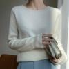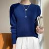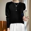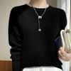 Cuello redondo, simple y versátil, 100% lana pura, camiseta de punto para mujer, holgada y ajustada, estilo cálido y relajado, mangas largas
