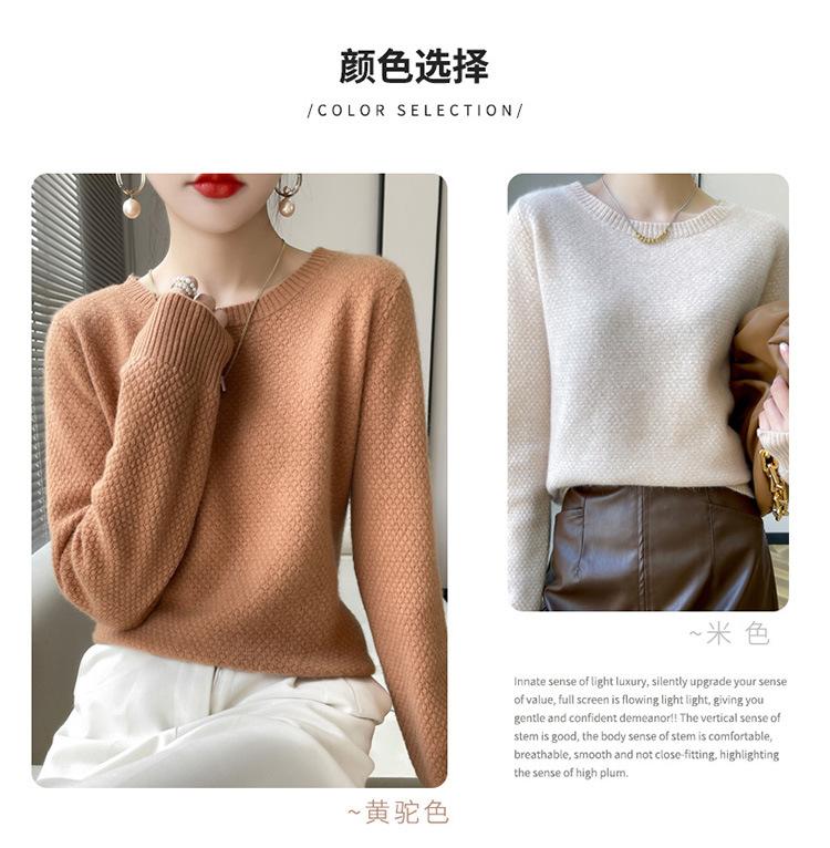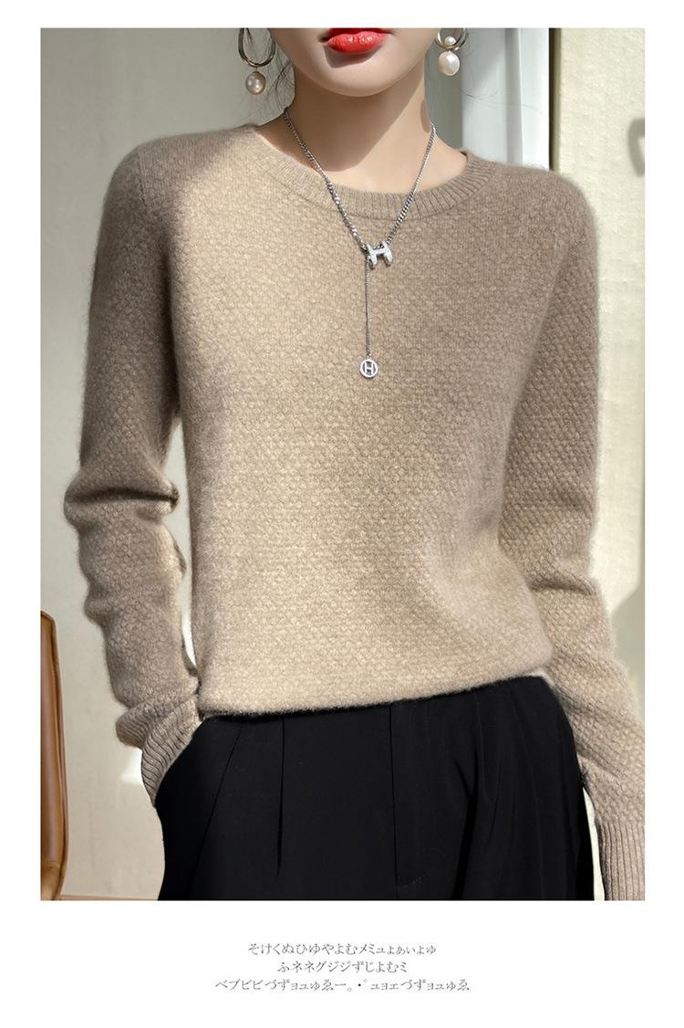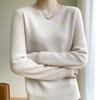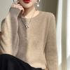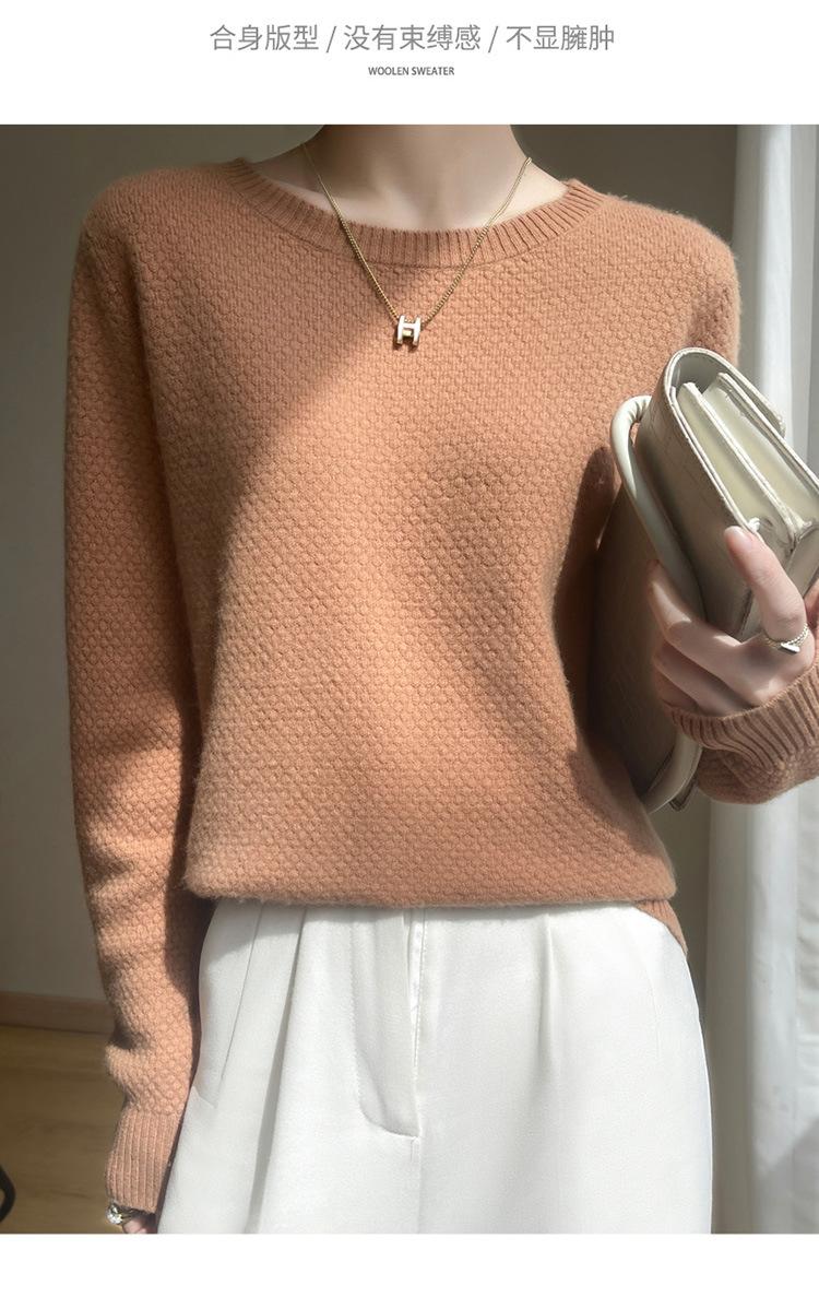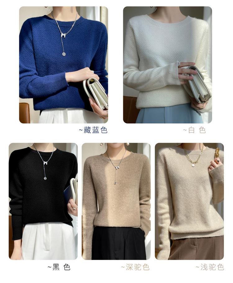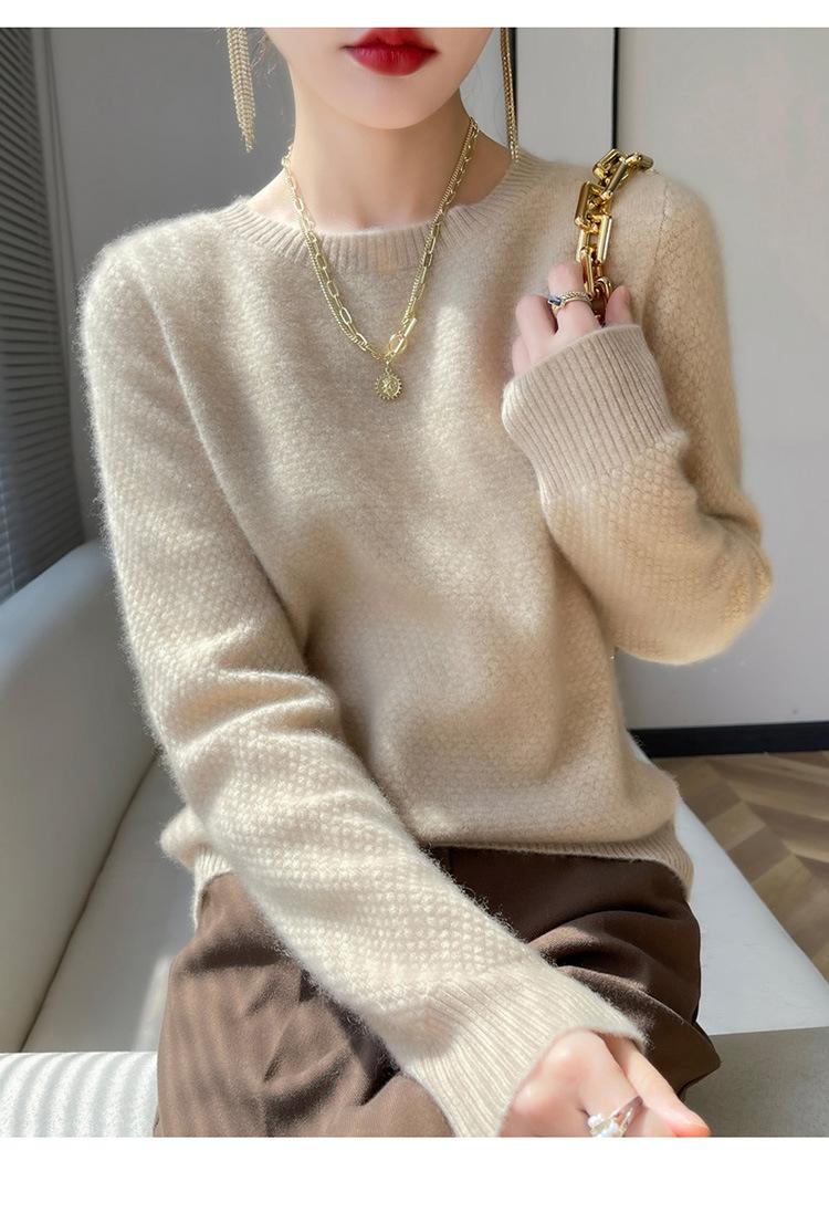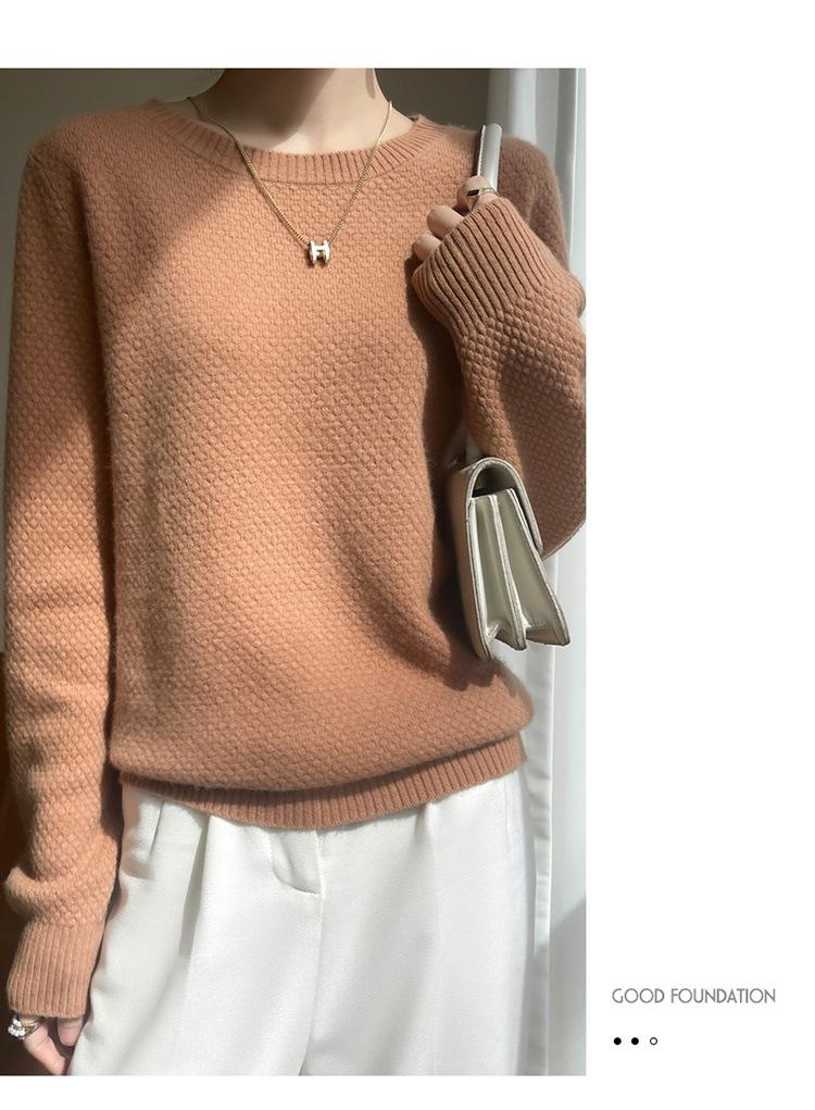 Cuello redondo, simple y versátil, 100% lana pura, camiseta de punto para mujer, holgada y ajustada, estilo cálido y relajado, mangas largas