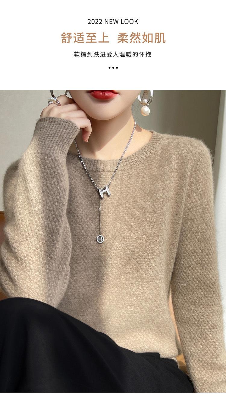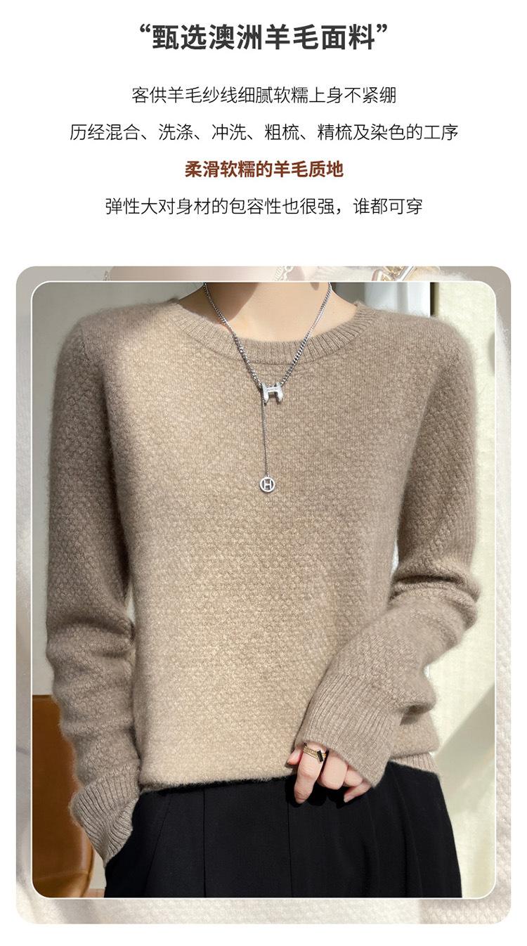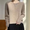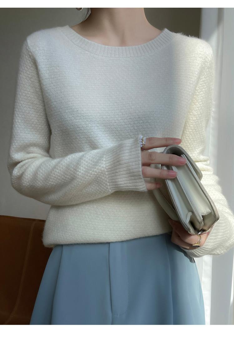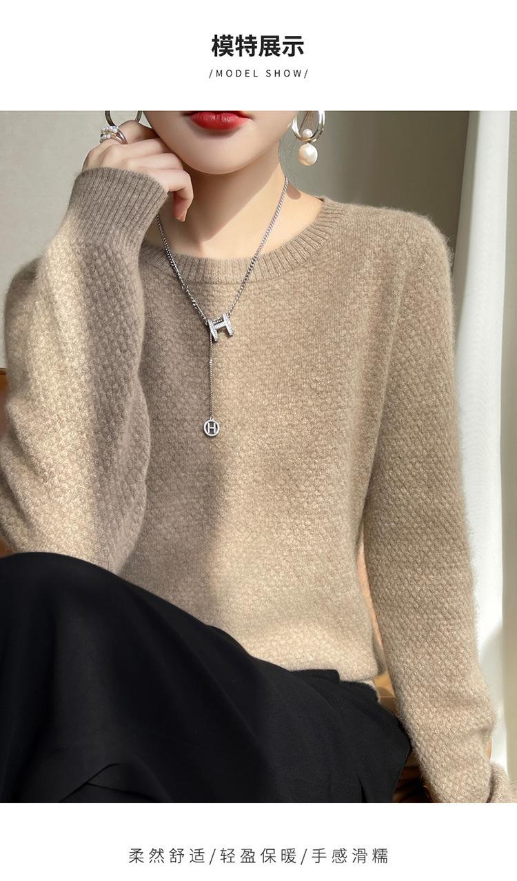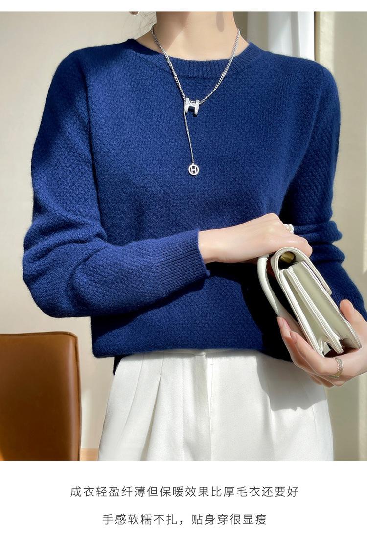 Cuello redondo, simple y versátil, 100% lana pura, camiseta de punto para mujer, holgada y ajustada, estilo cálido y relajado, mangas largas