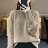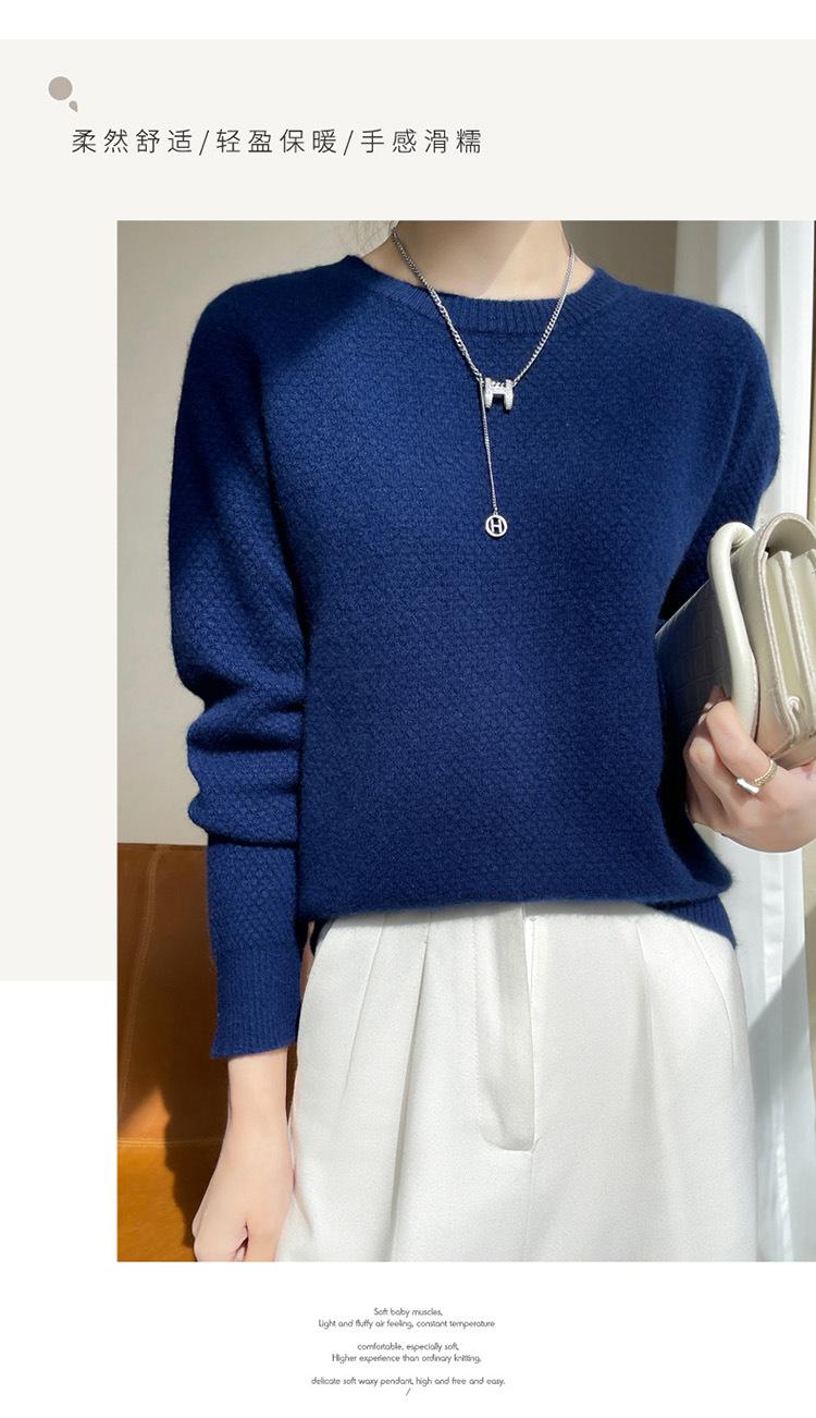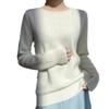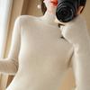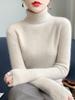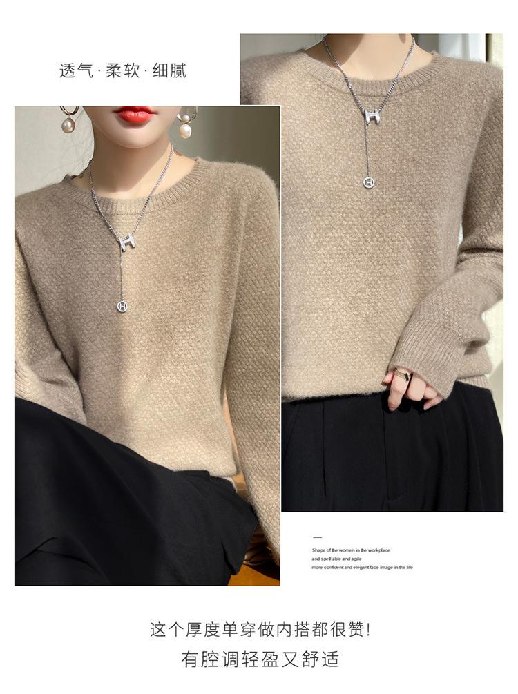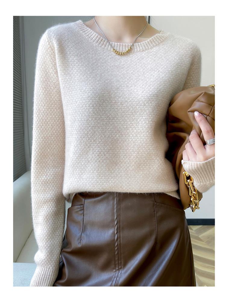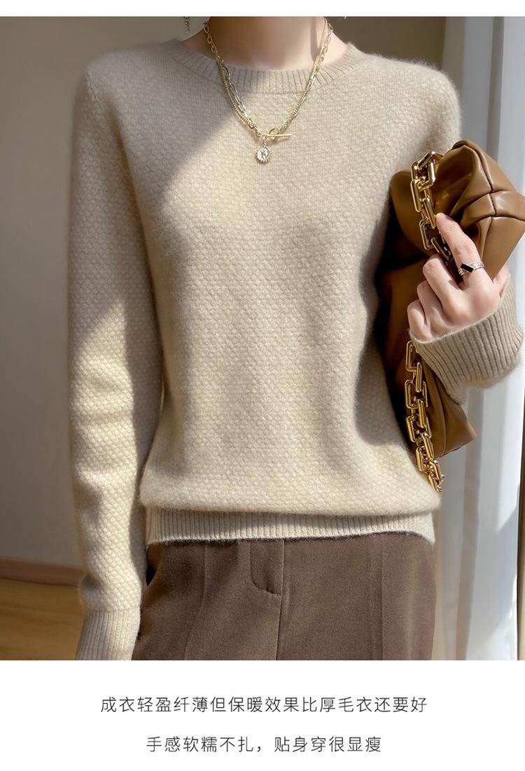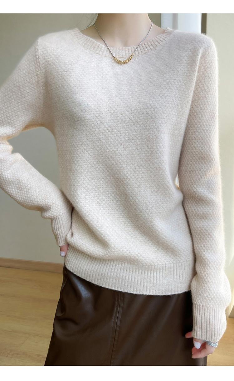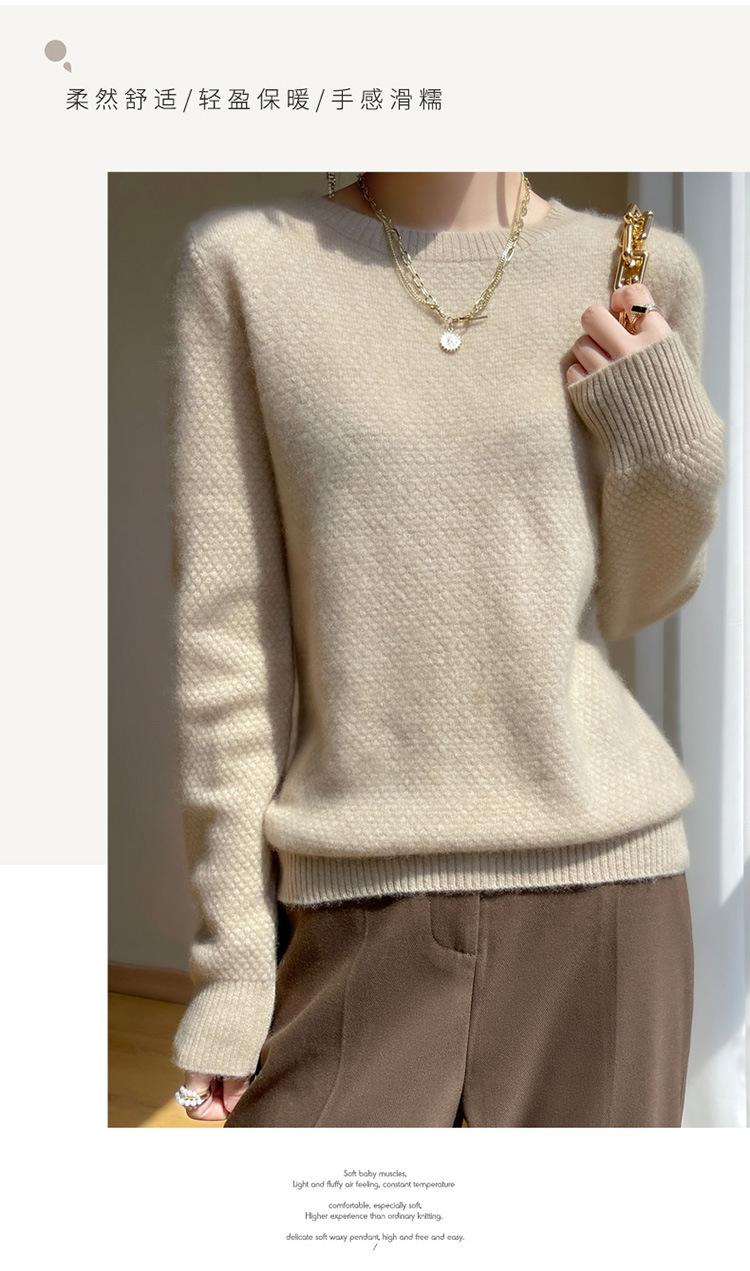 Cuello redondo, simple y versátil, 100% lana pura, camiseta de punto para mujer, holgada y ajustada, estilo cálido y relajado, mangas largas