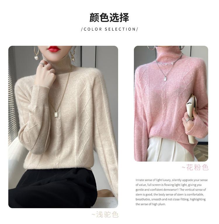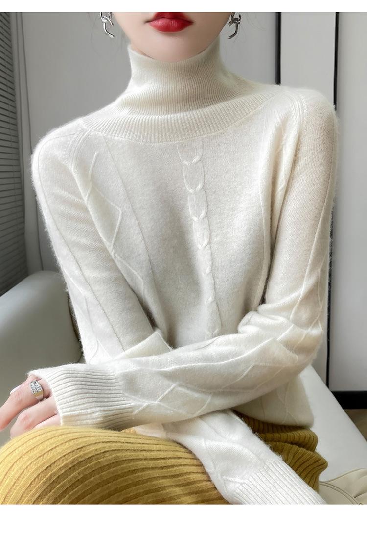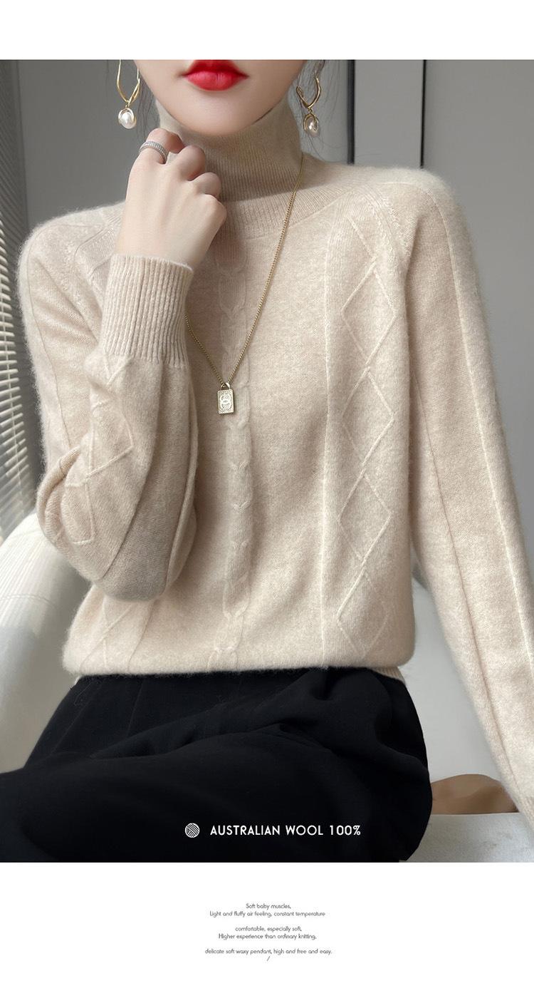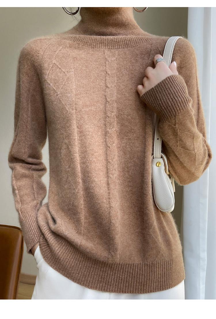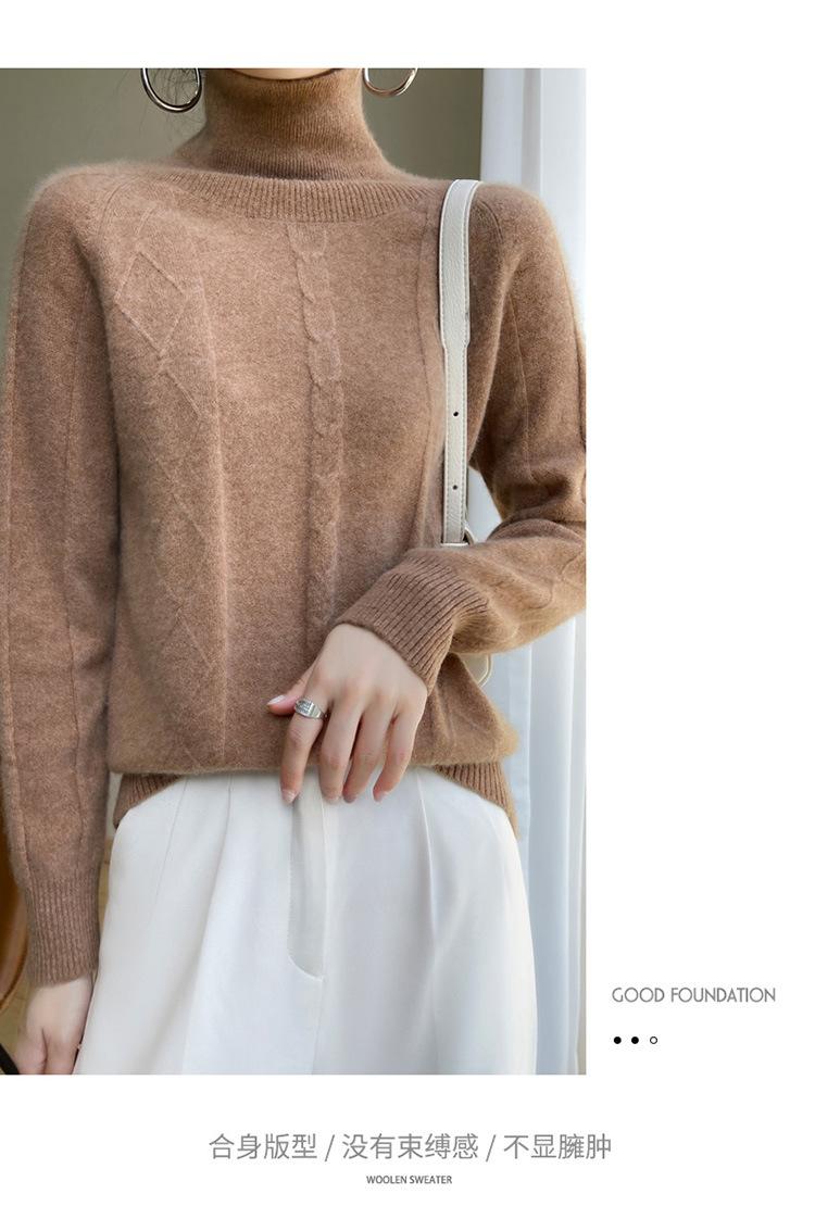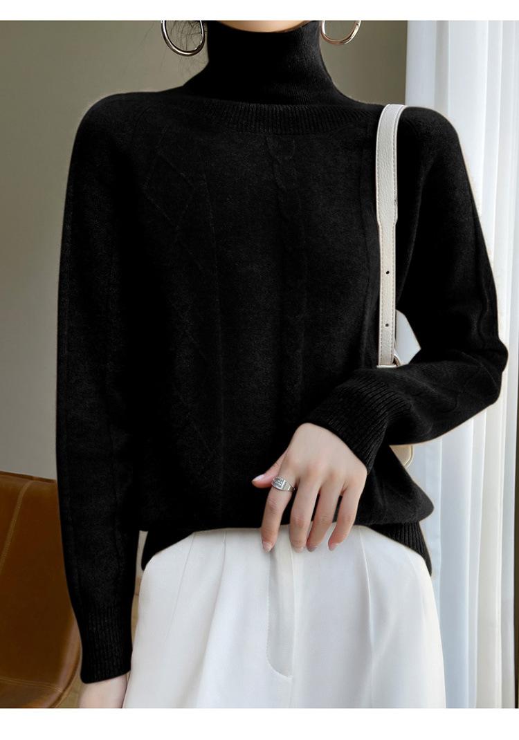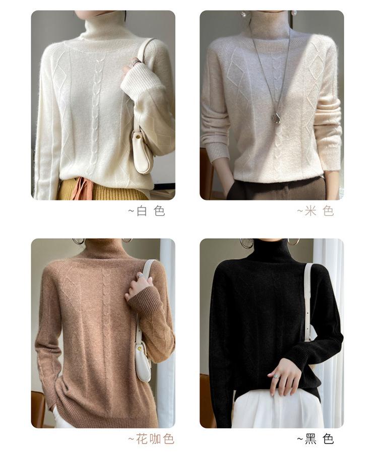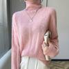 Nueva Otoño/Invierno 100% Lana Pura para Mujer Top de Capa Base Tejido Cuello Alto Suelto Cálido Adelgazante Ropa Interior Suave y Delicado con la Piel