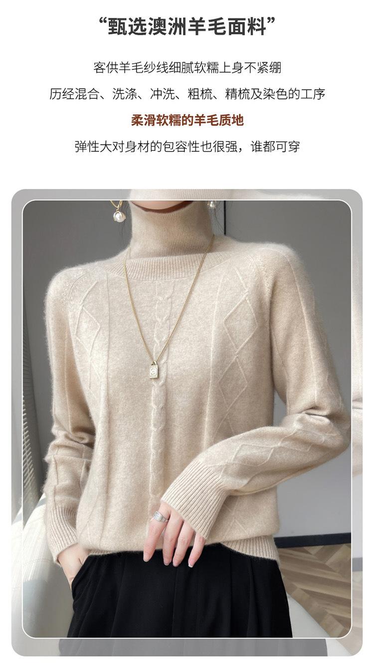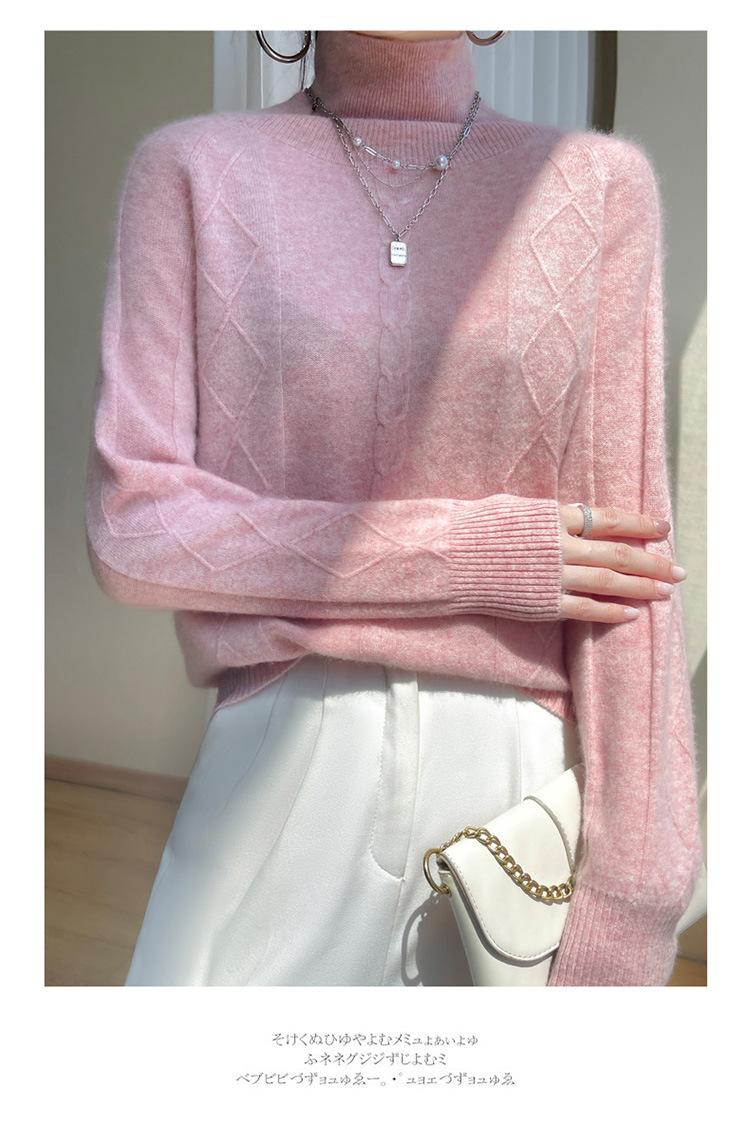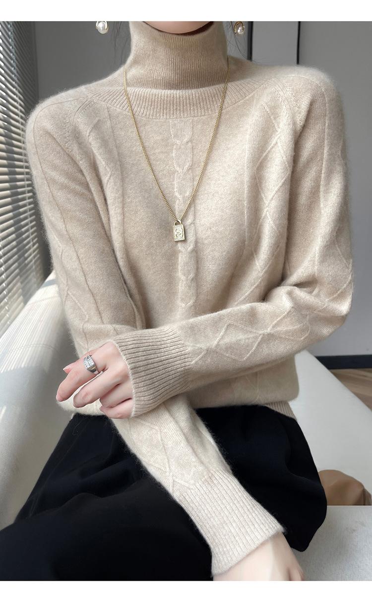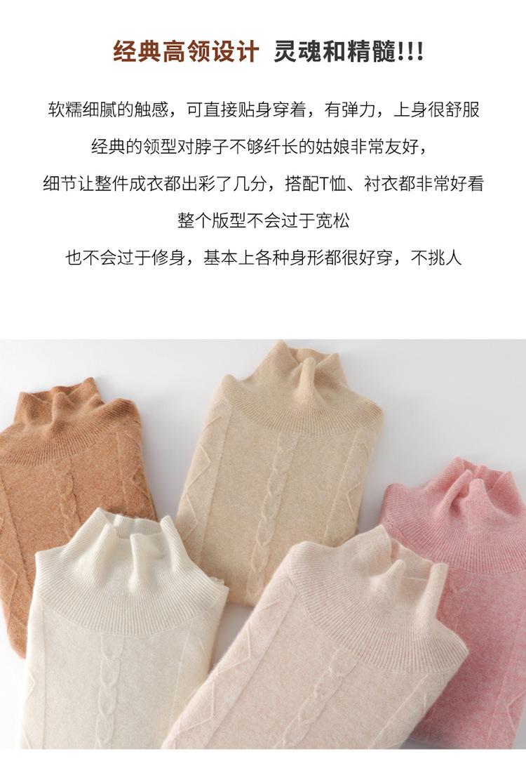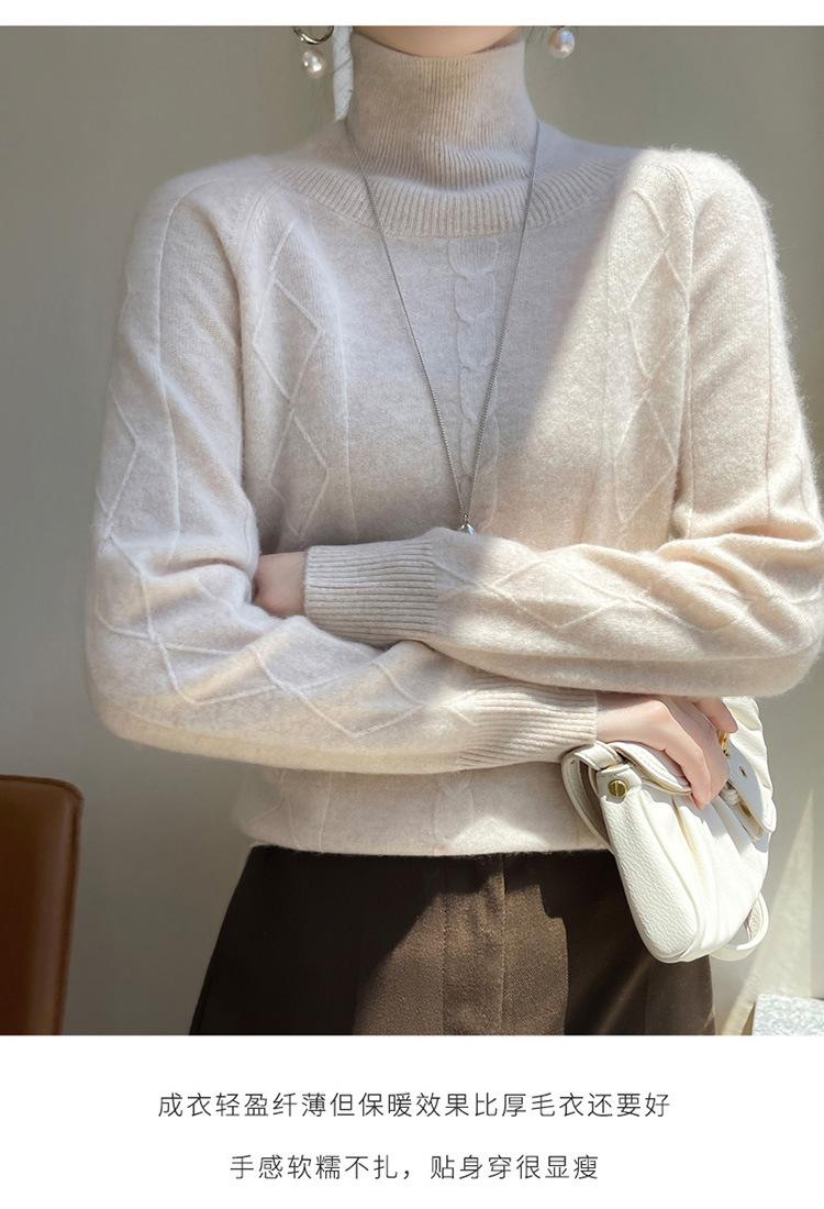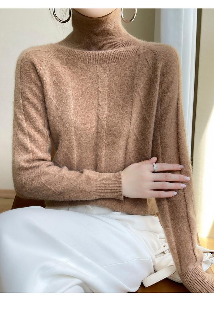 Nueva Otoño/Invierno 100% Lana Pura para Mujer Top de Capa Base Tejido Cuello Alto Suelto Cálido Adelgazante Ropa Interior Suave y Delicado con la Piel