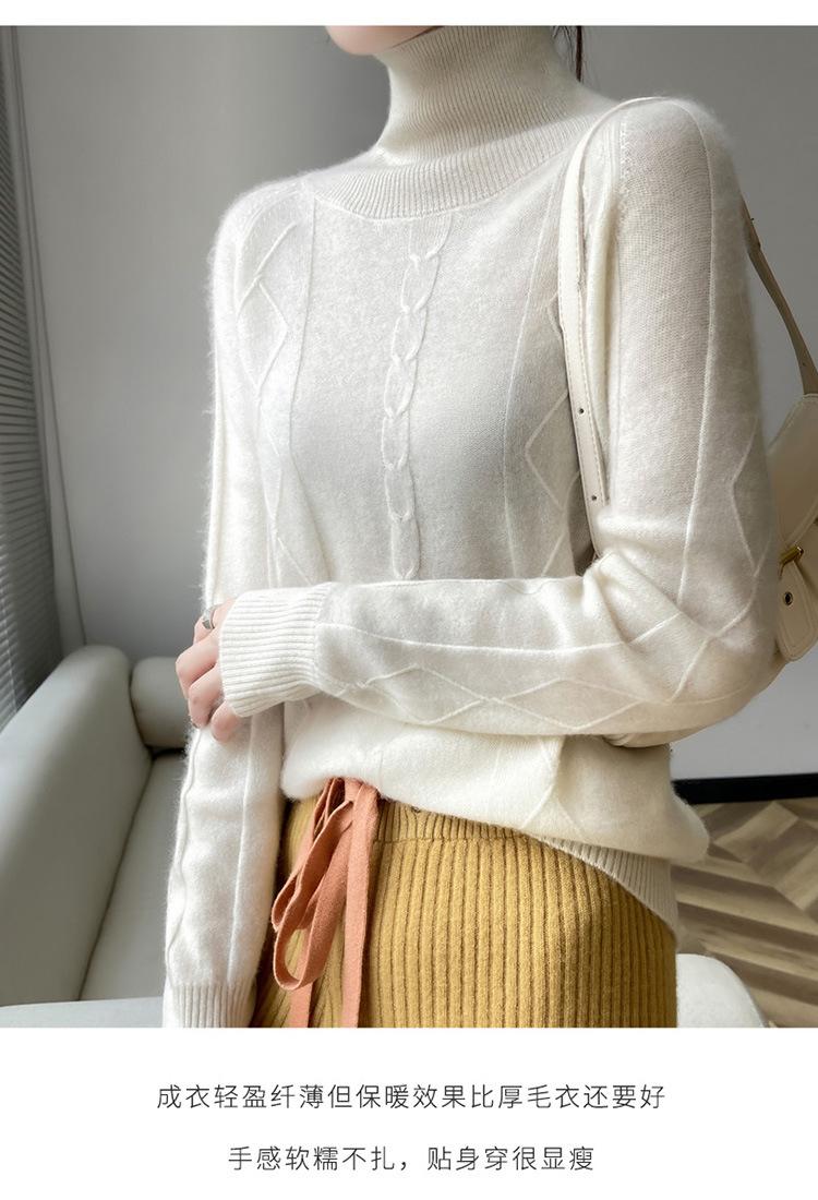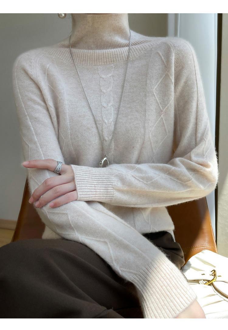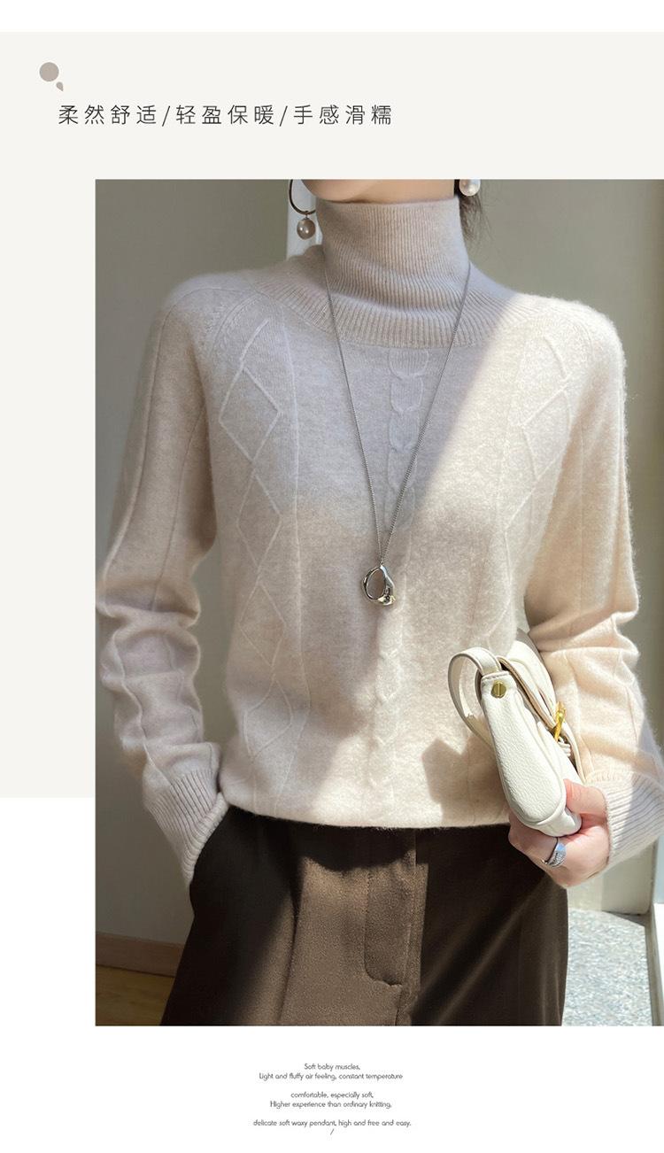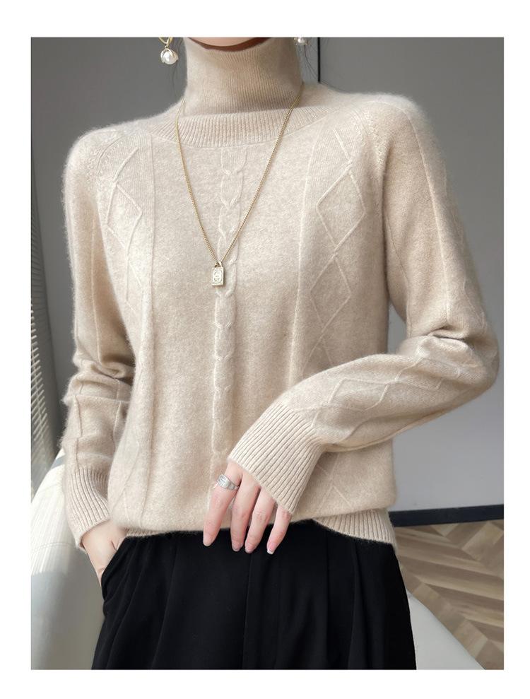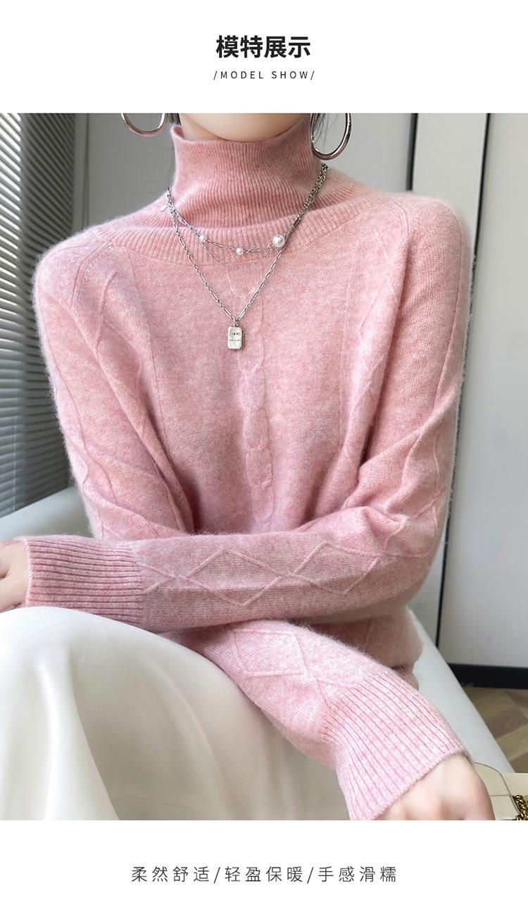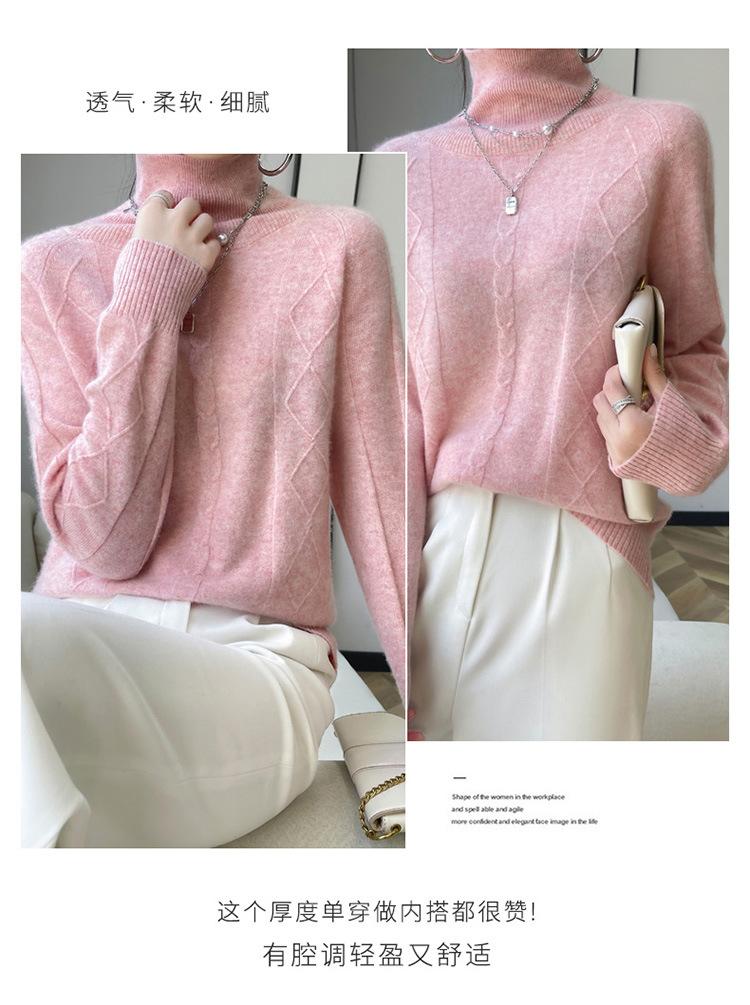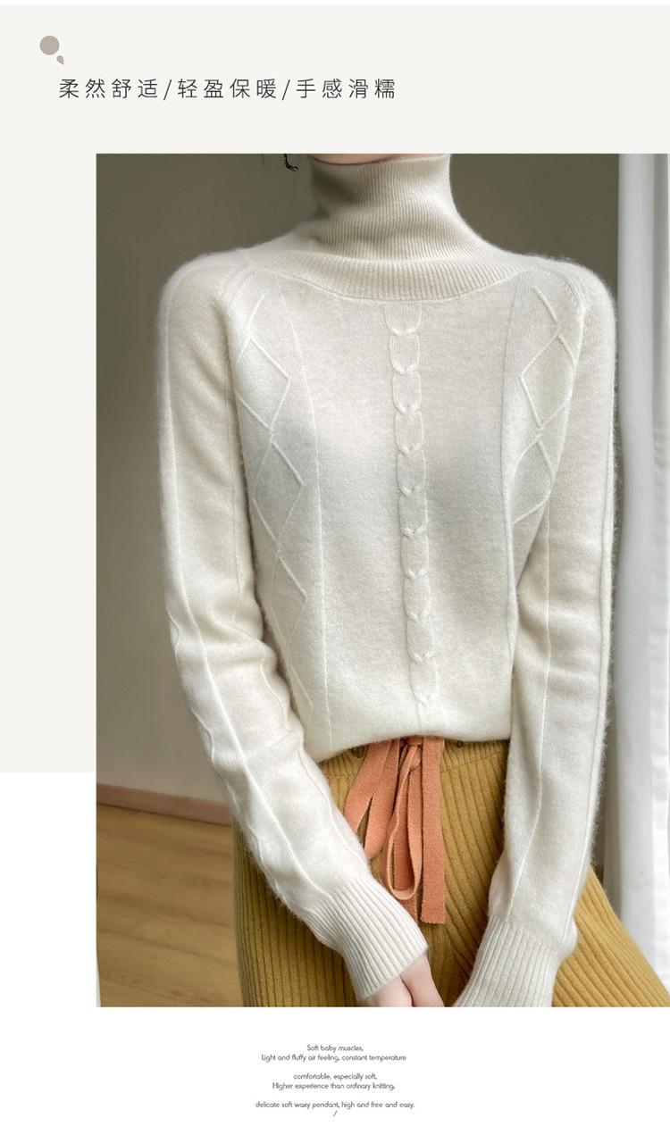 Nueva Otoño/Invierno 100% Lana Pura para Mujer Top de Capa Base Tejido Cuello Alto Suelto Cálido Adelgazante Ropa Interior Suave y Delicado con la Piel