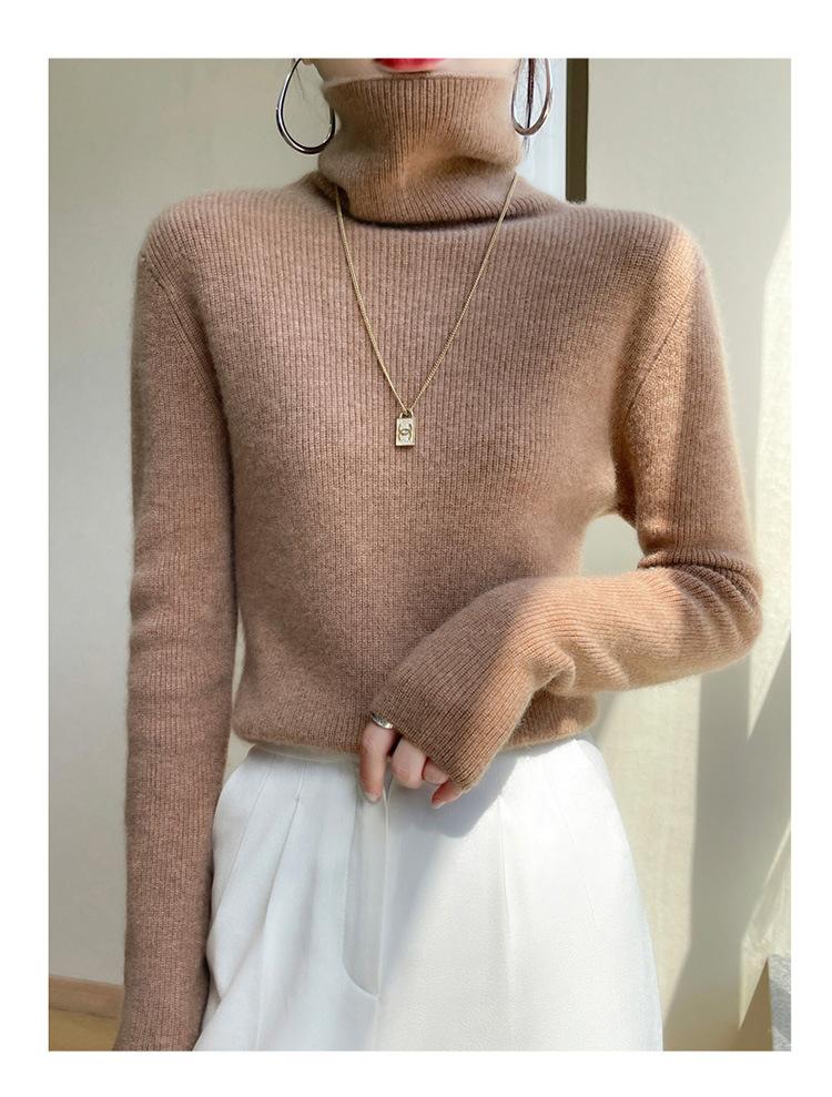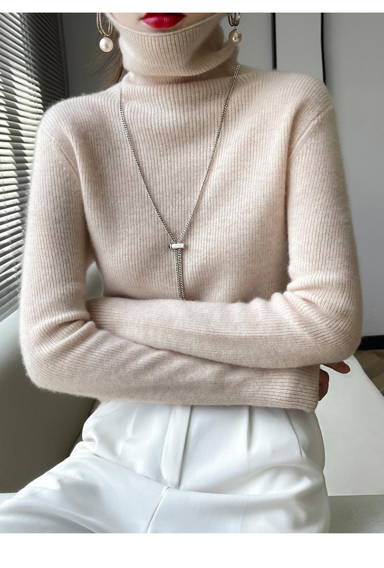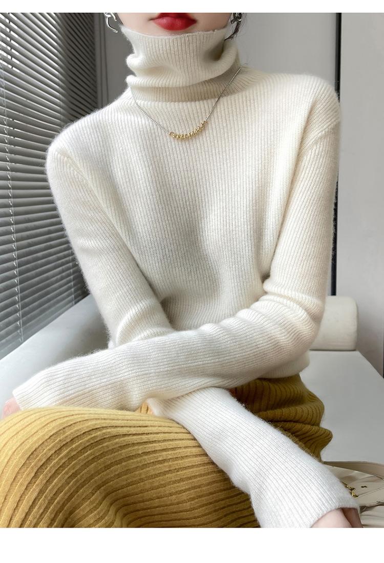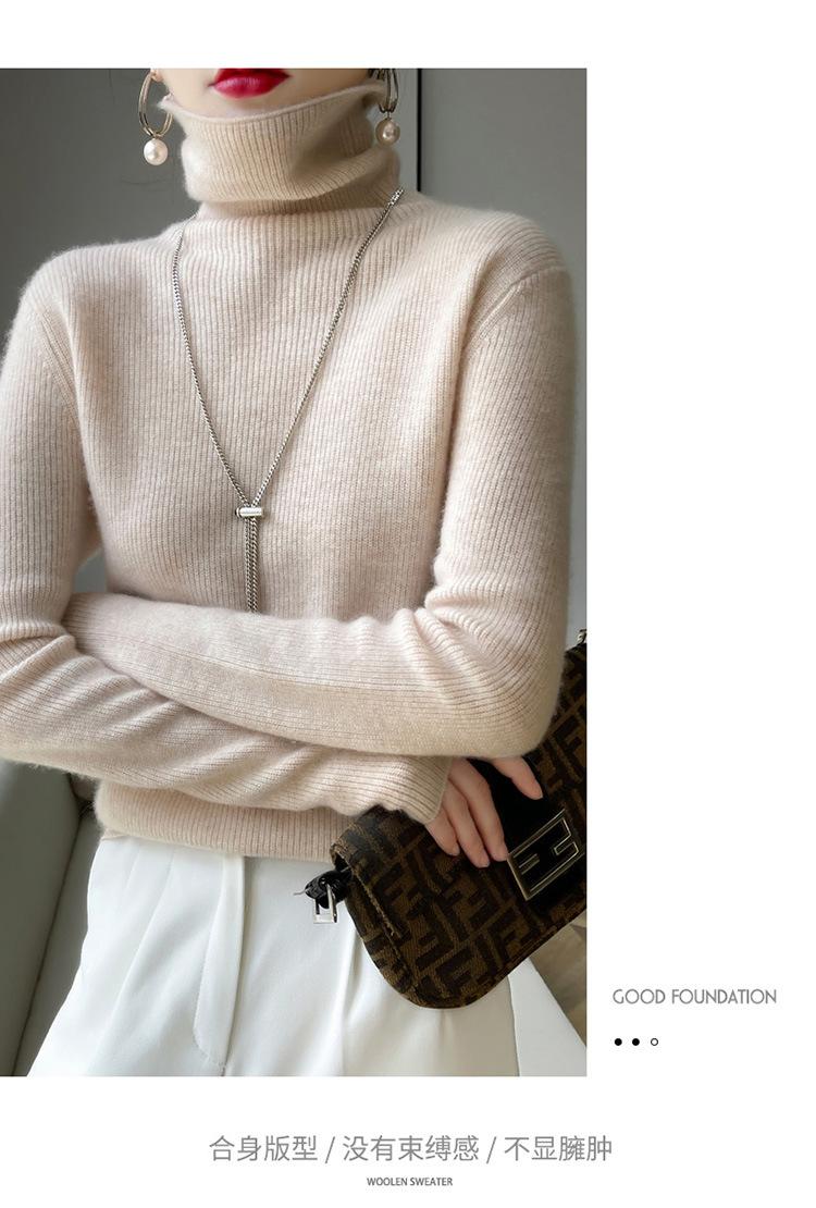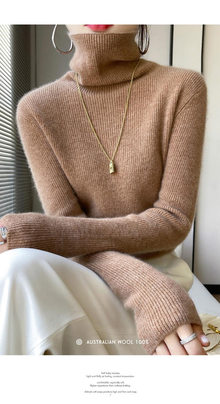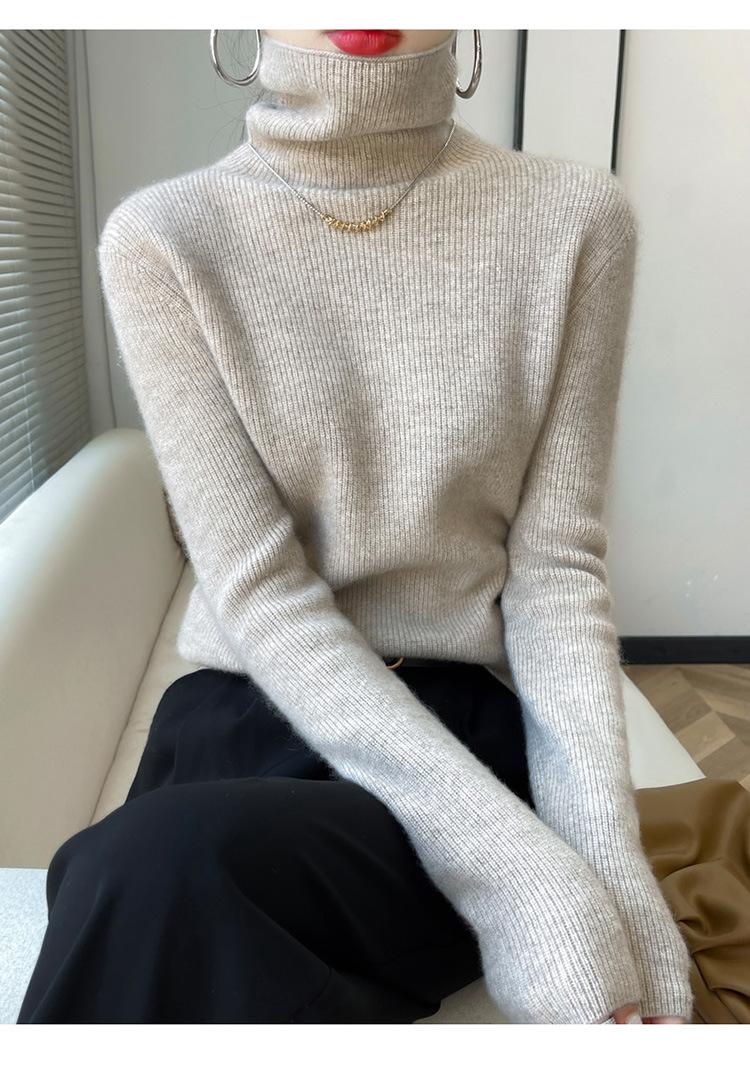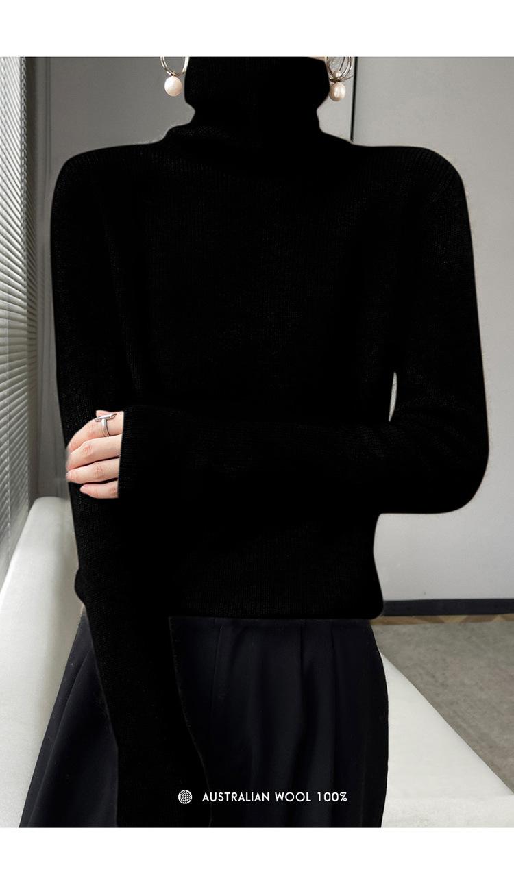 2025 Otoño/Invierno Nuevo Estilo 100% Lana Pura Top Tejido de Capa Base para Mujer Cuello Alto Holgado Adelgazante Ropa Interior Suave y Delicado con la Piel