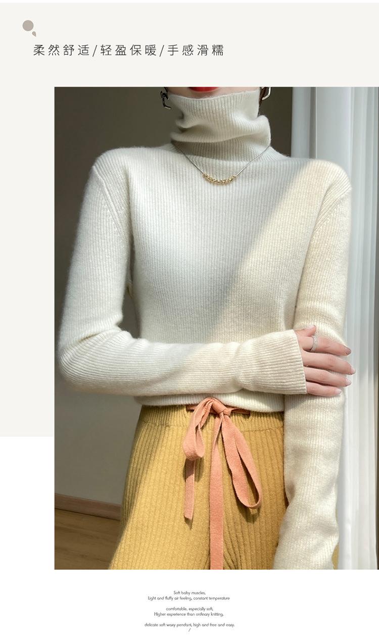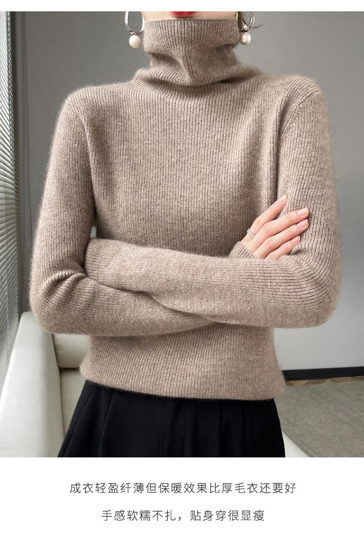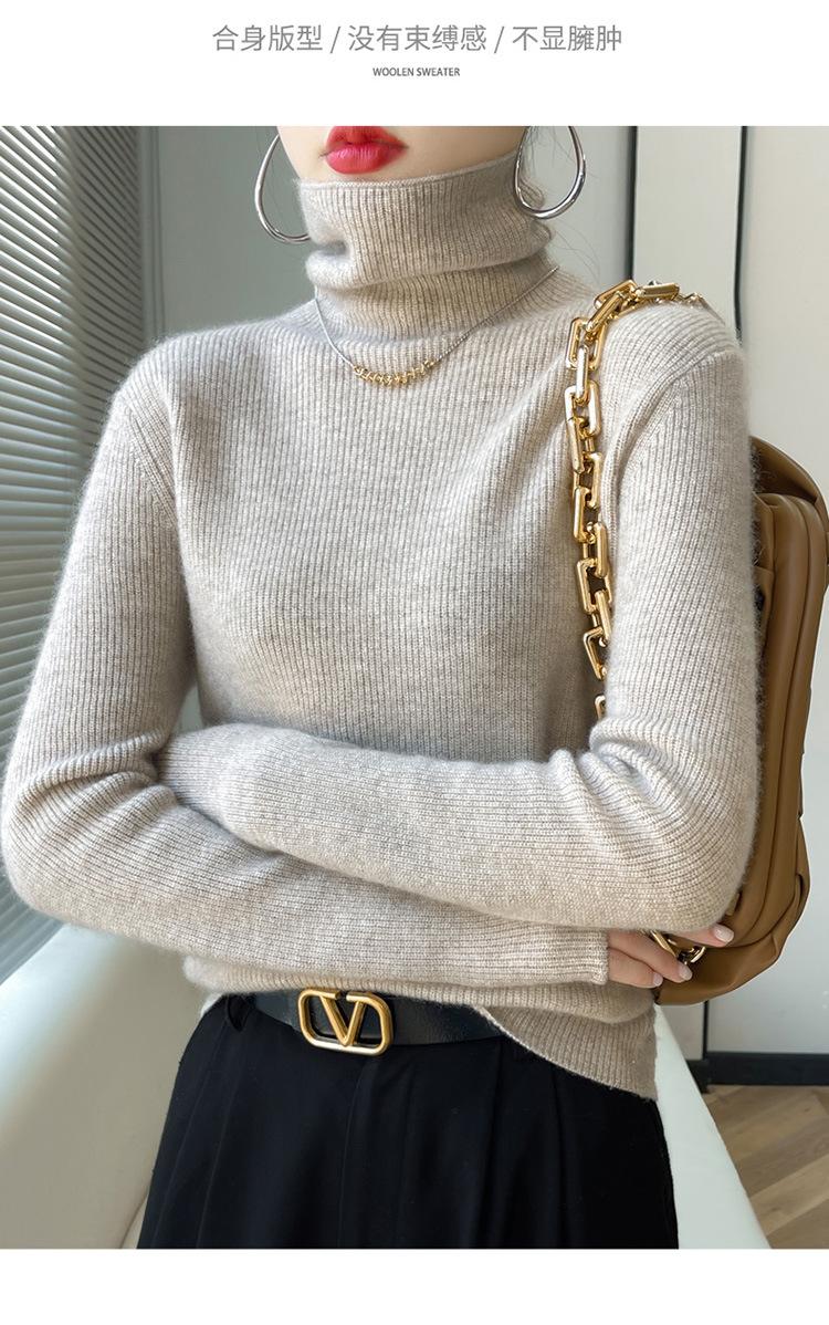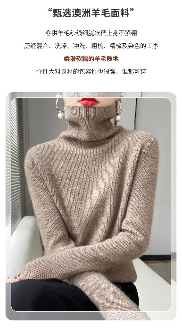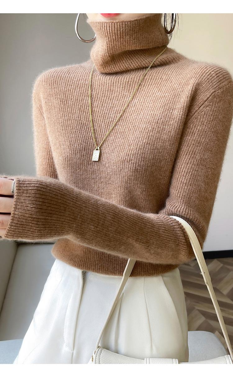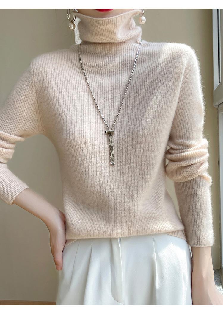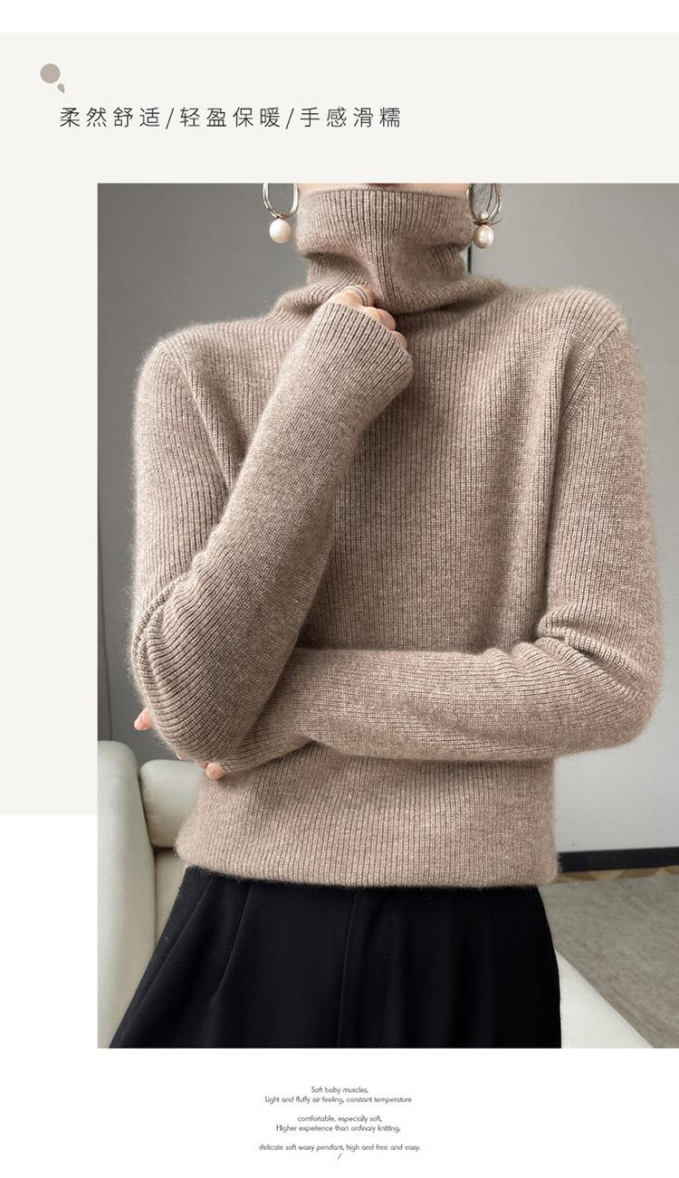 2025 Otoño/Invierno Nuevo Estilo 100% Lana Pura Top Tejido de Capa Base para Mujer Cuello Alto Holgado Adelgazante Ropa Interior Suave y Delicado con la Piel