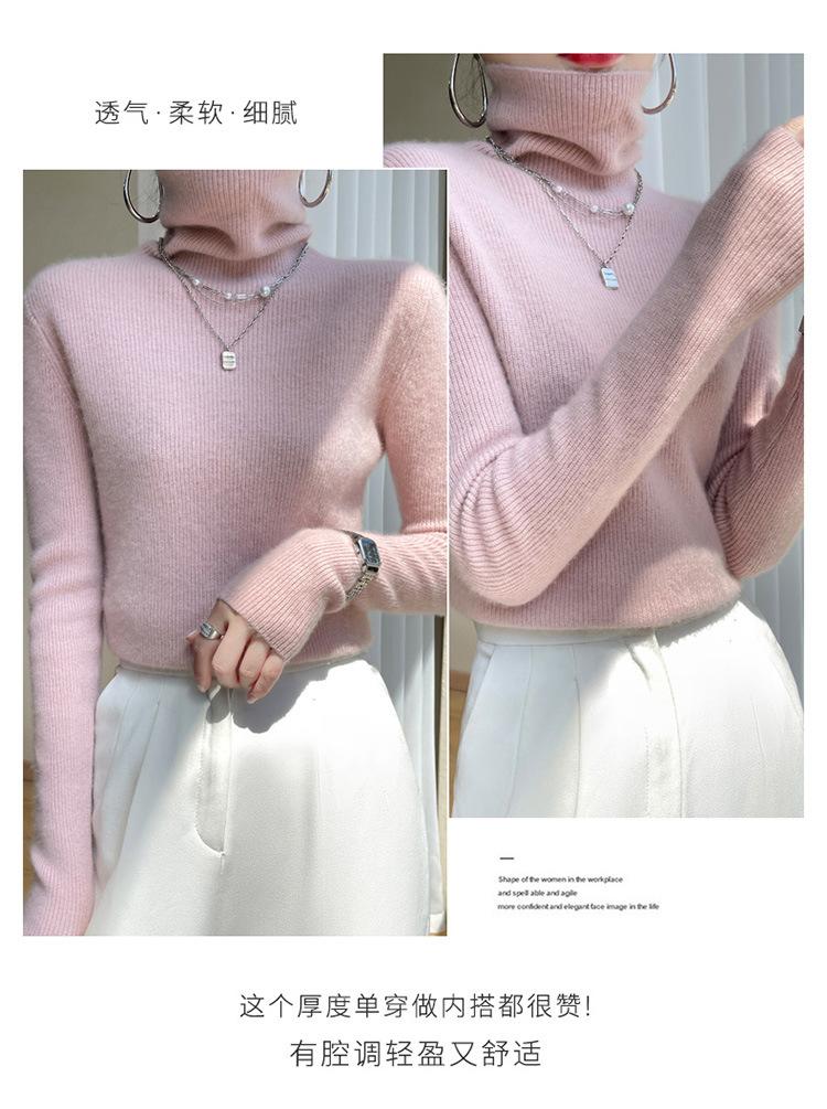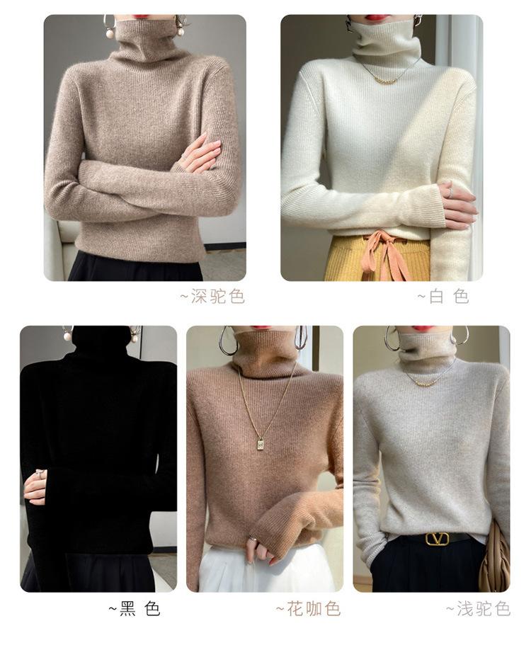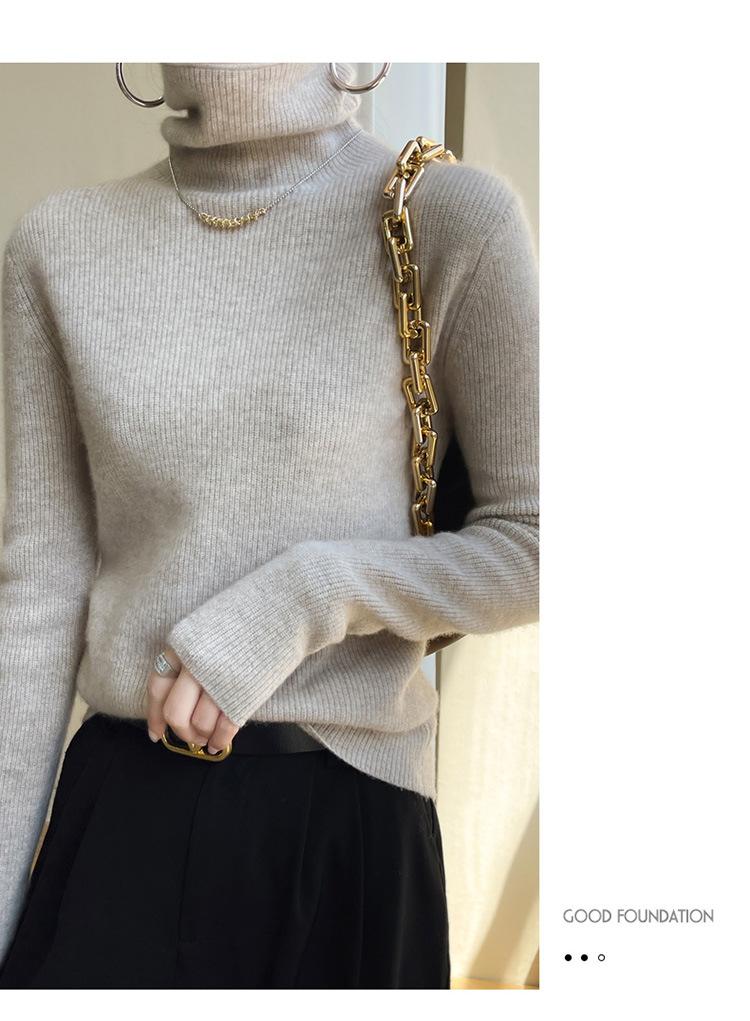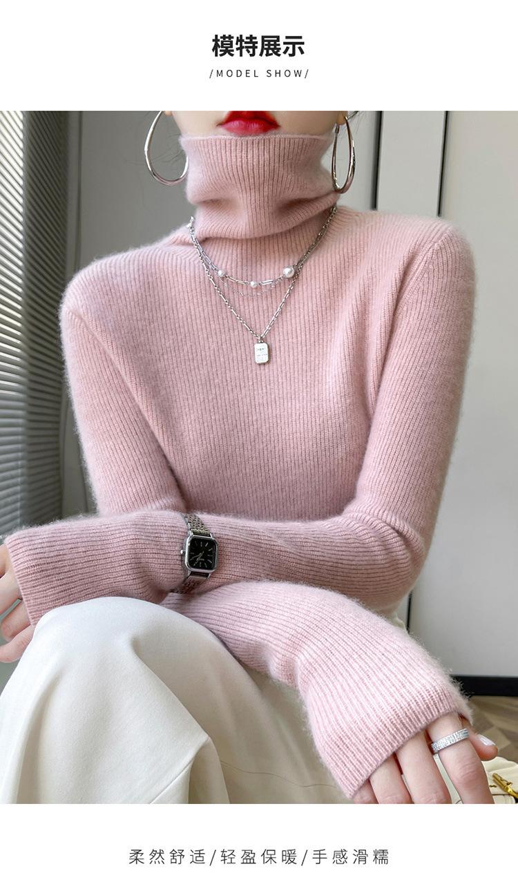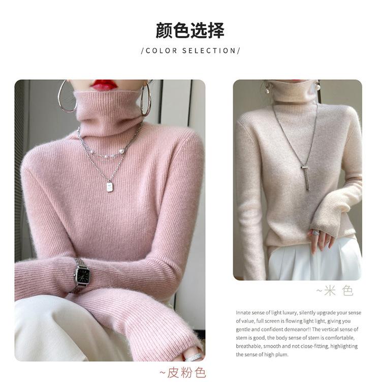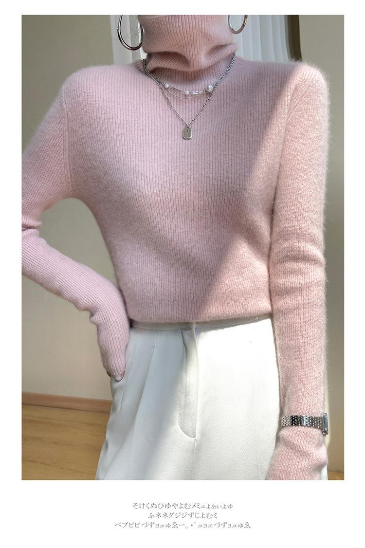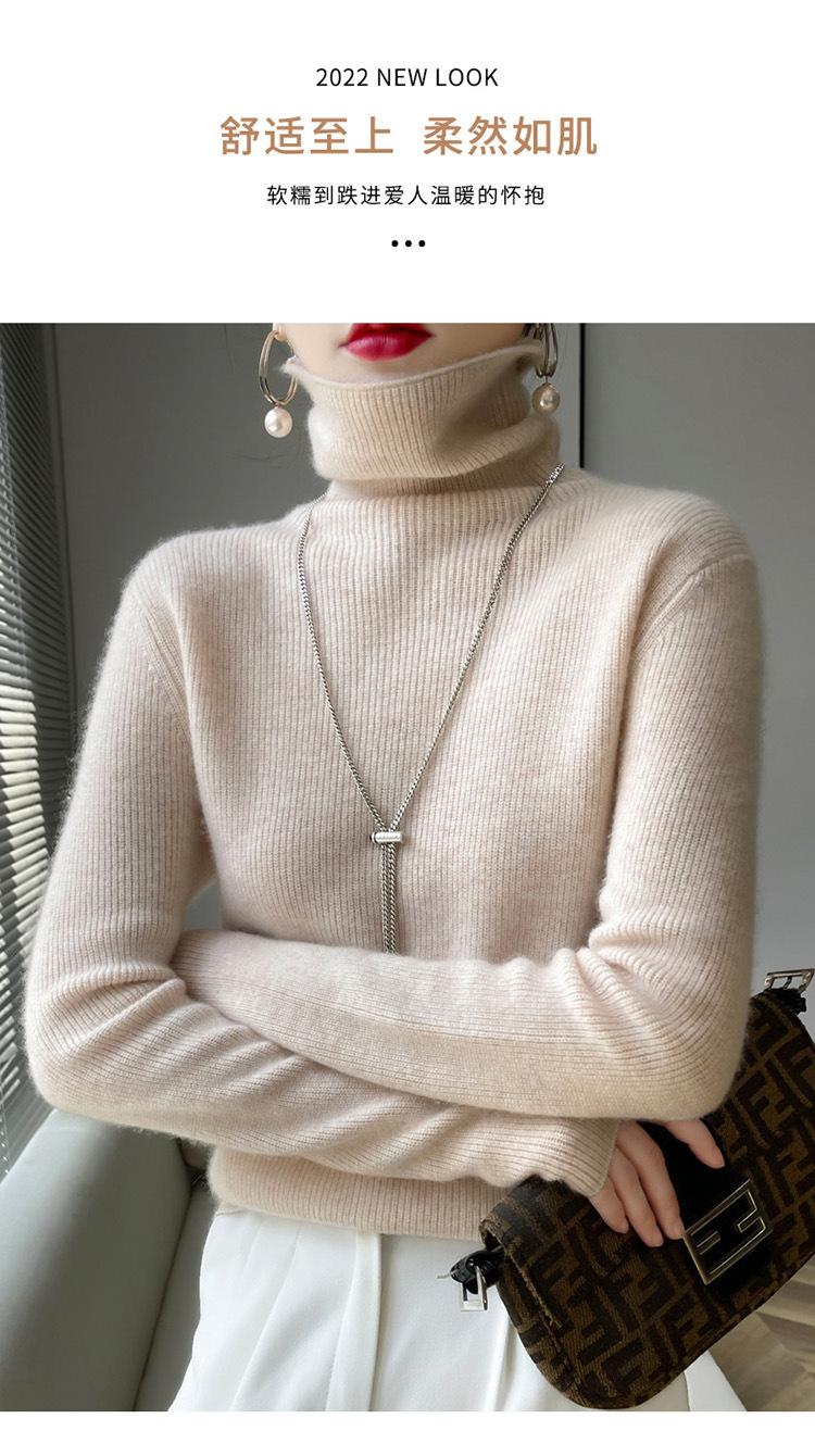 2025 Otoño/Invierno Nuevo Estilo 100% Lana Pura Top Tejido de Capa Base para Mujer Cuello Alto Holgado Adelgazante Ropa Interior Suave y Delicado con la Piel