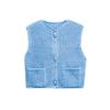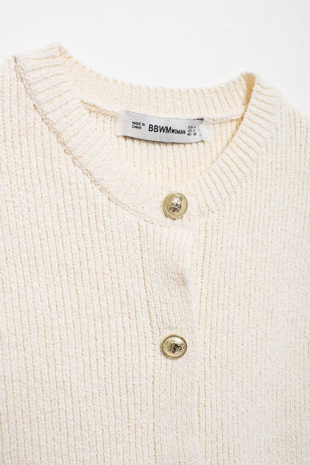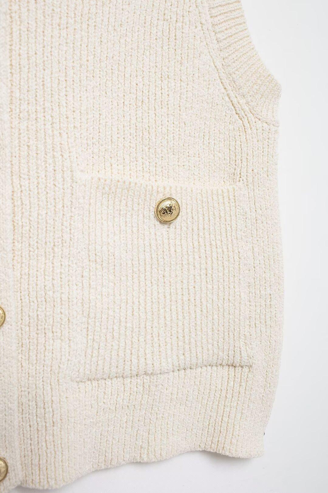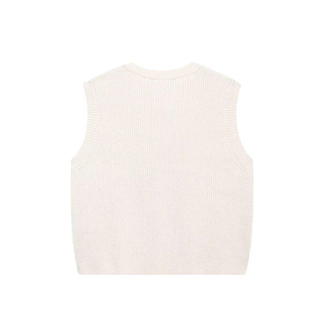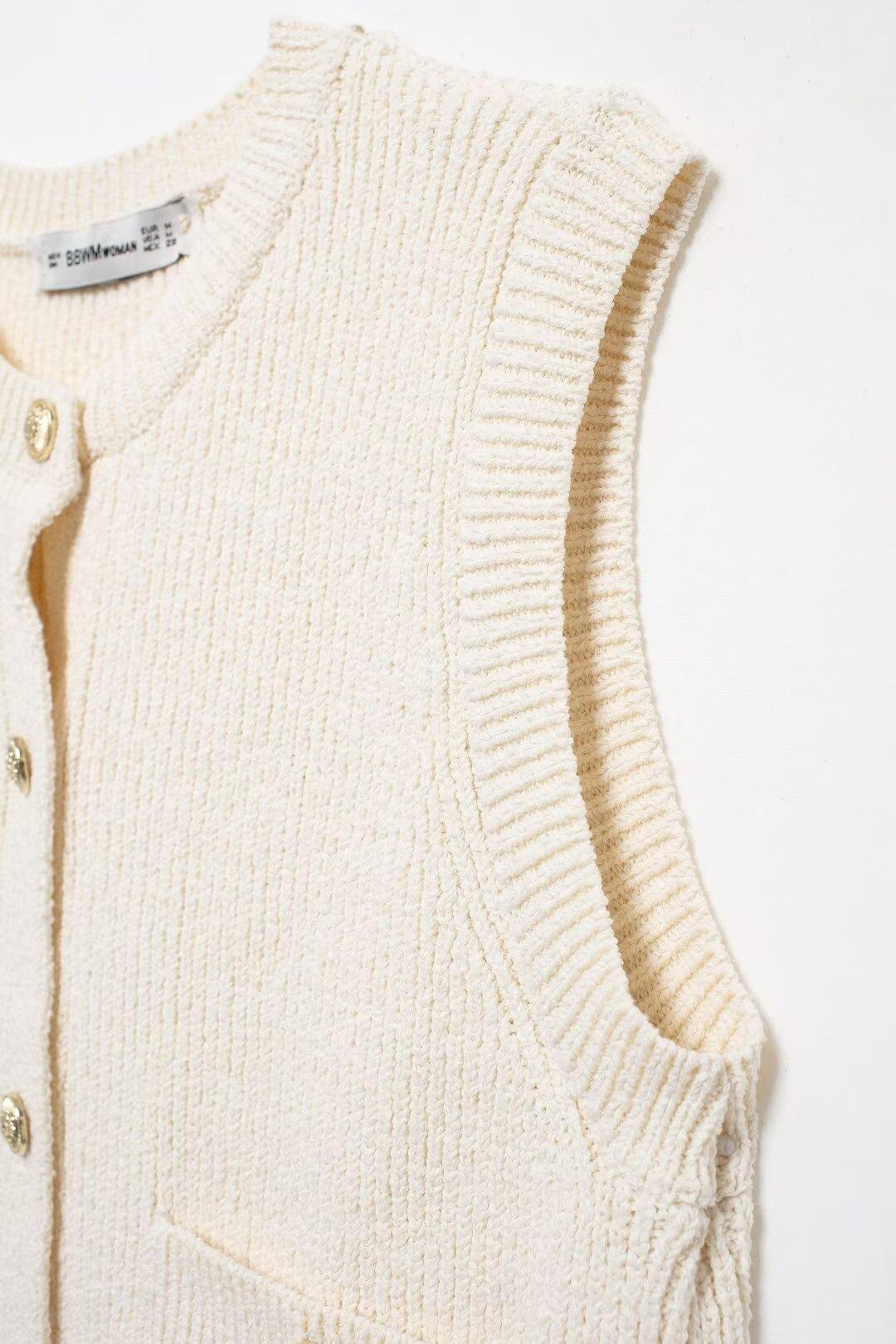 Ropa de Mujer de Comercio Exterior 2024 Principios de Otoño Nuevo Elegante Cuello Redondo Monopeto Sin Mangas Color Puro Cárdigan de Punto Chaleco de Mujer