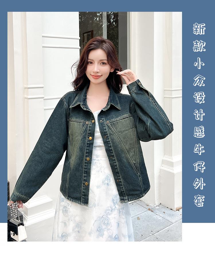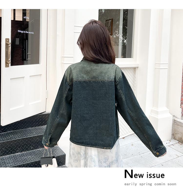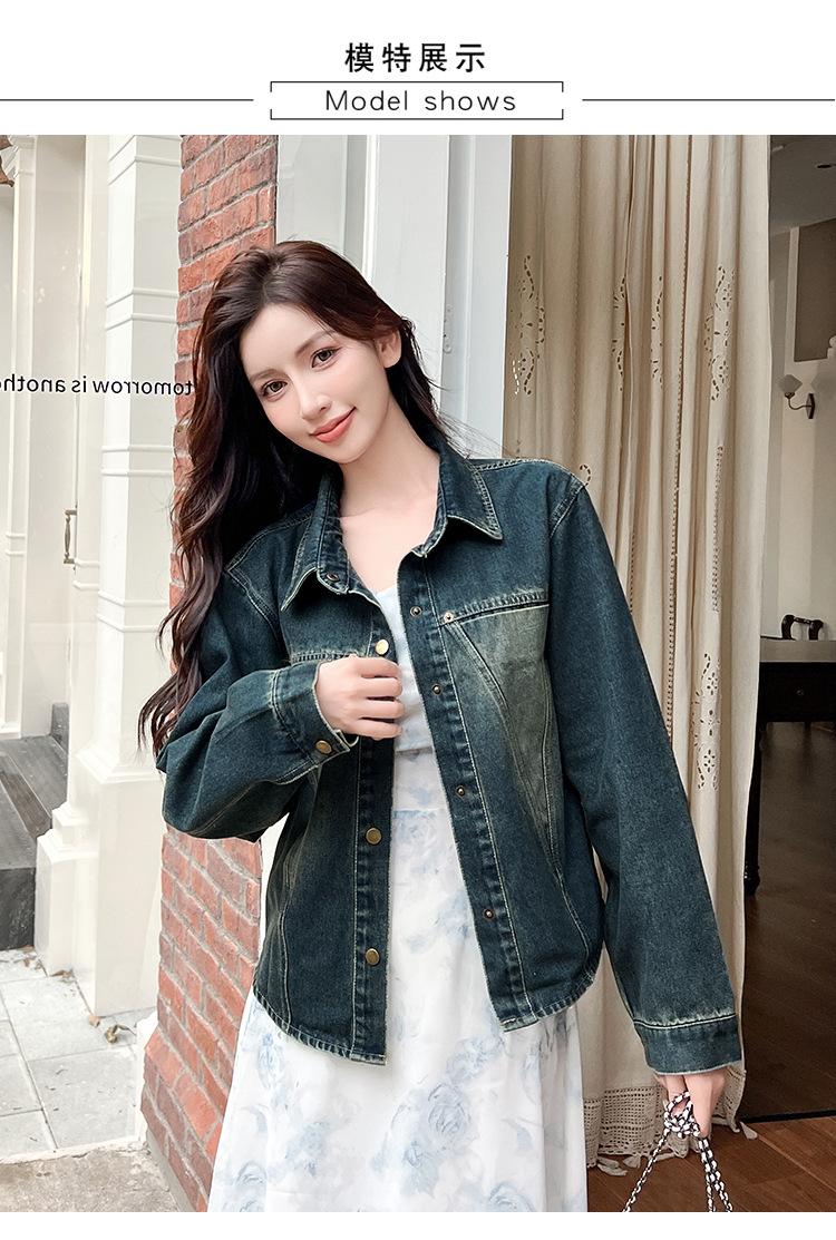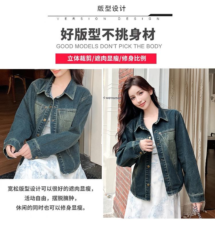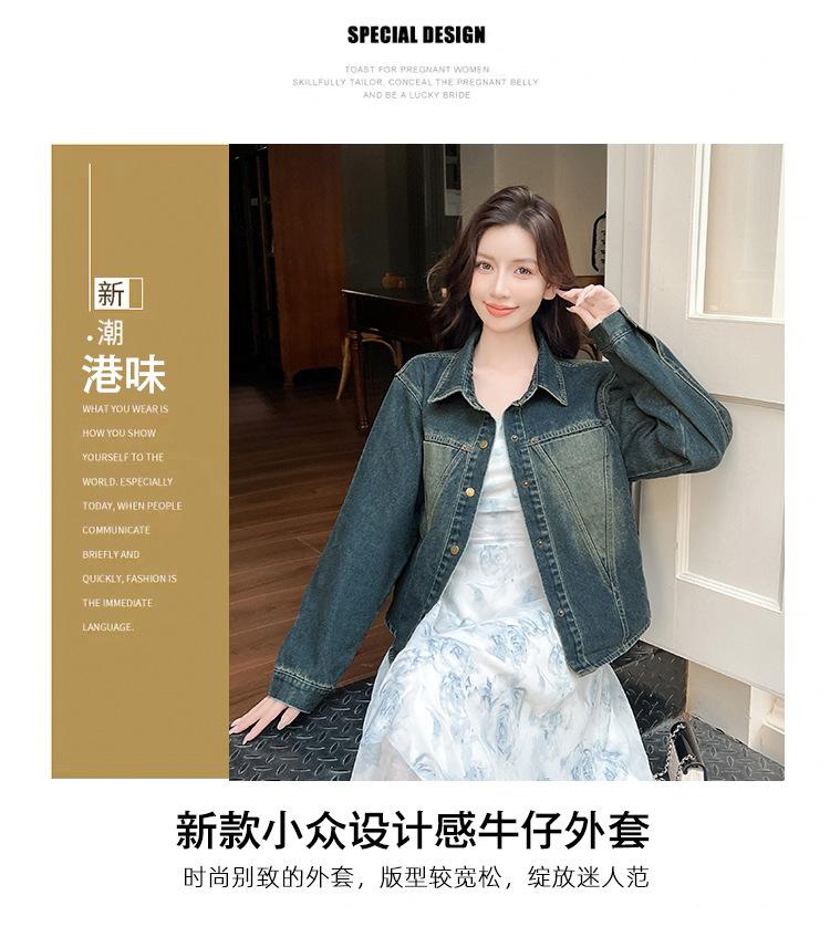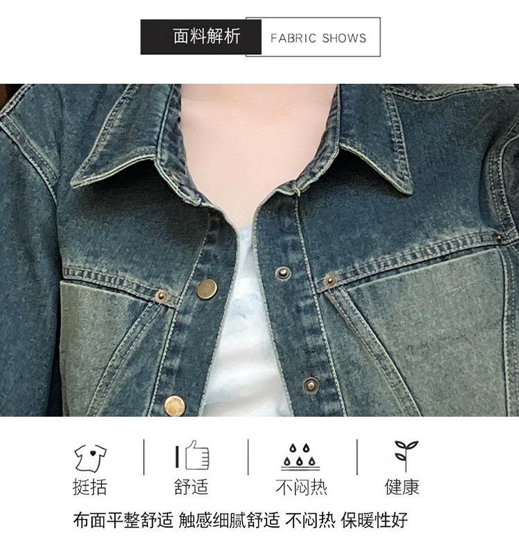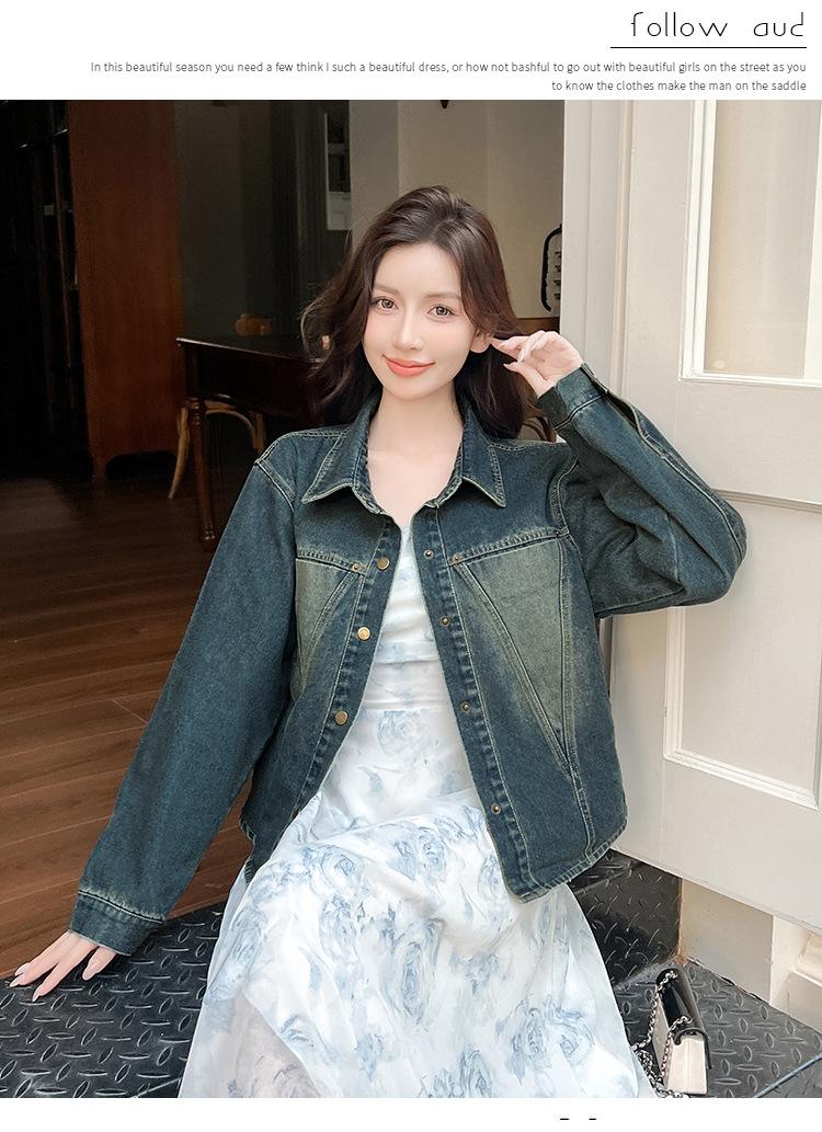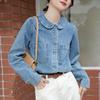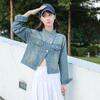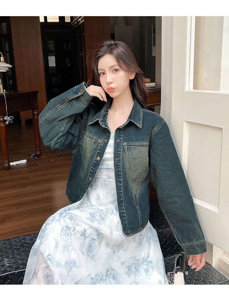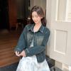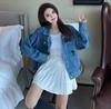 Foto Real En Stock Otoño Nuevo Estilo Coreano Retro Chaqueta Corta de Mezclilla Mujer Holgada Adelgazante Chaqueta Top Azul Algodón