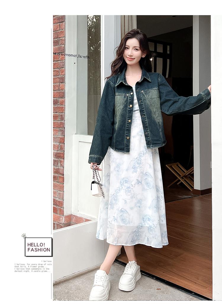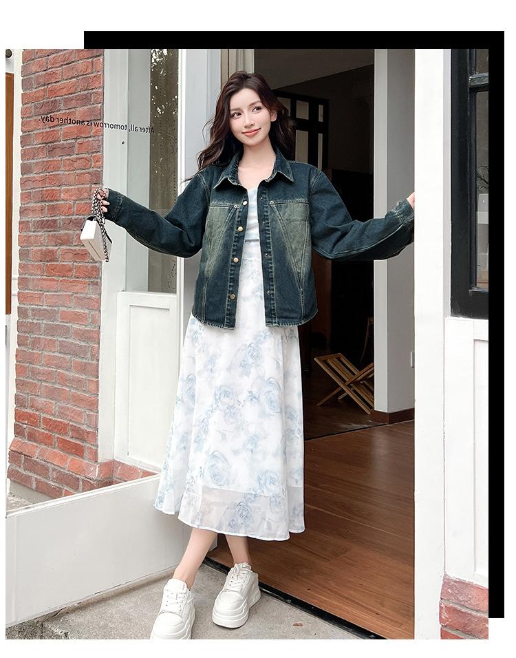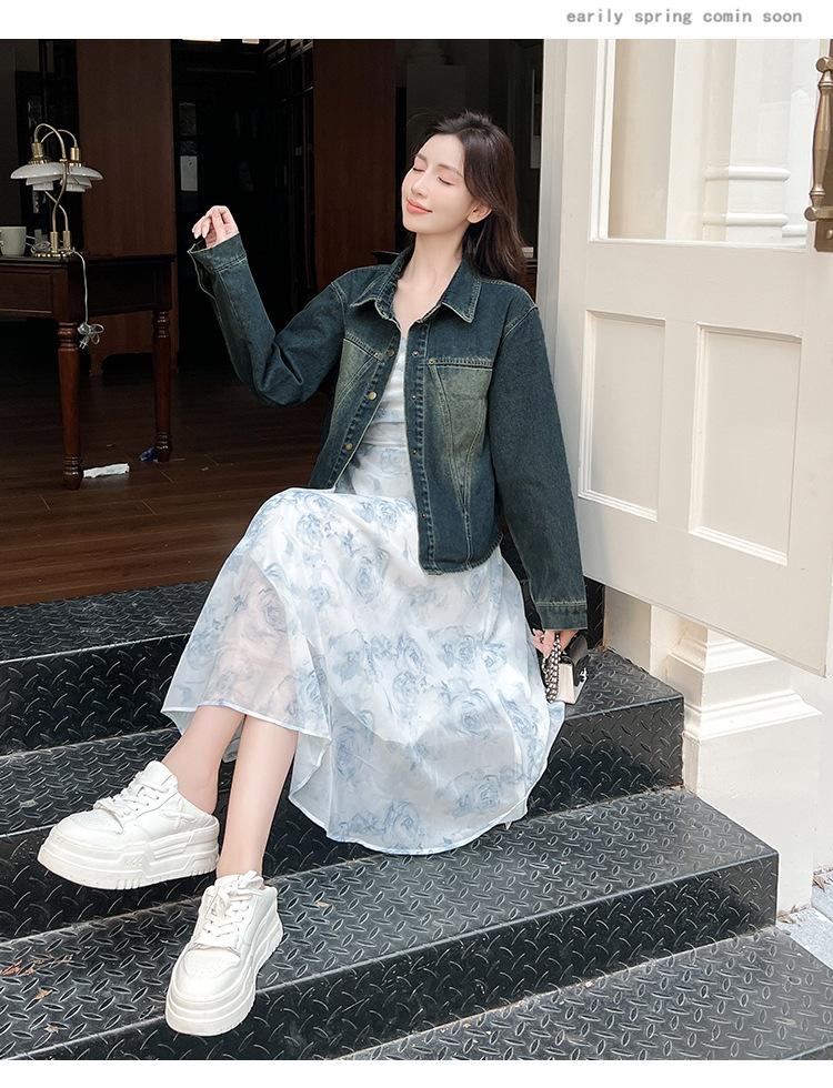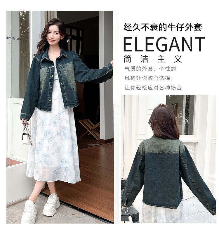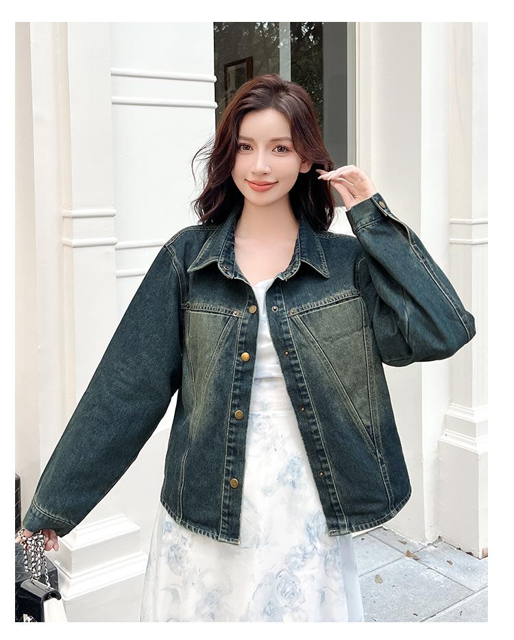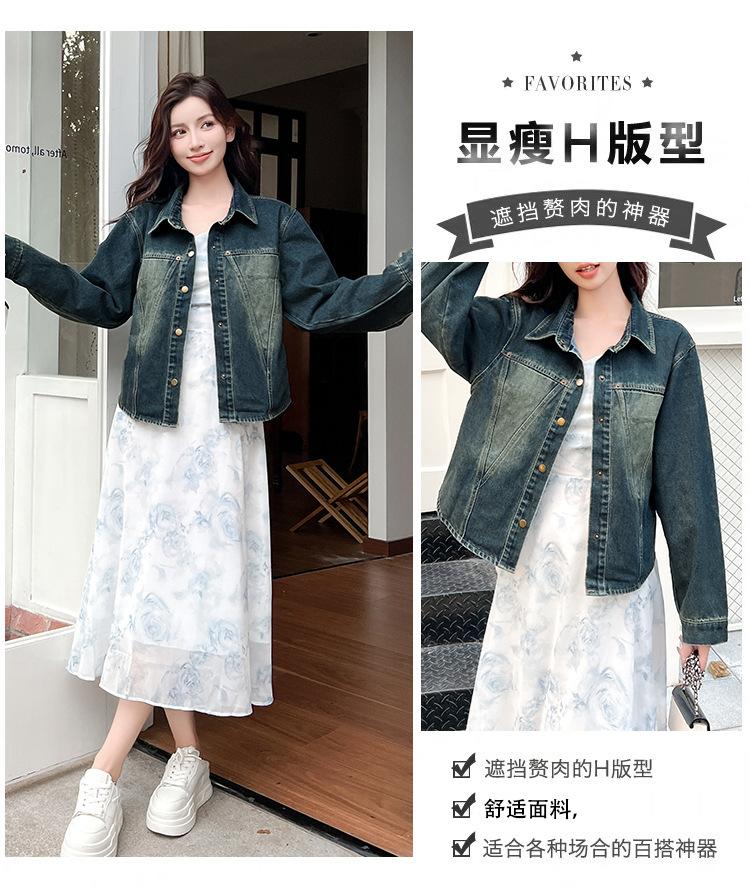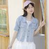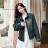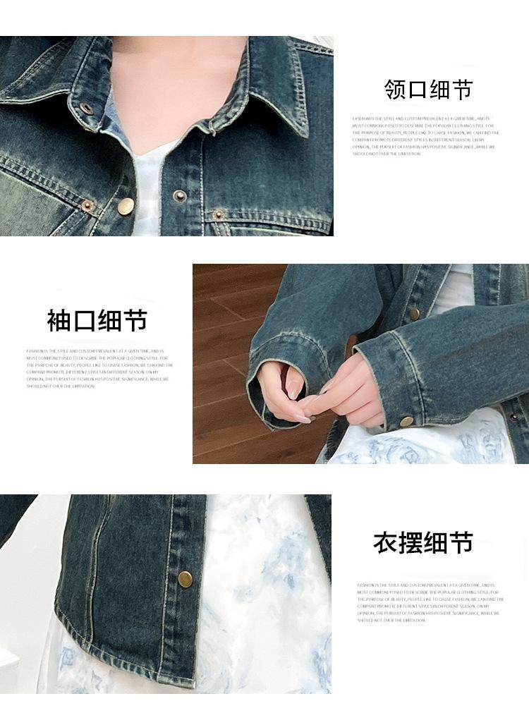 Foto Real En Stock Otoño Nuevo Estilo Coreano Retro Chaqueta Corta de Mezclilla Mujer Holgada Adelgazante Chaqueta Top Azul Algodón