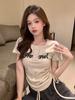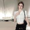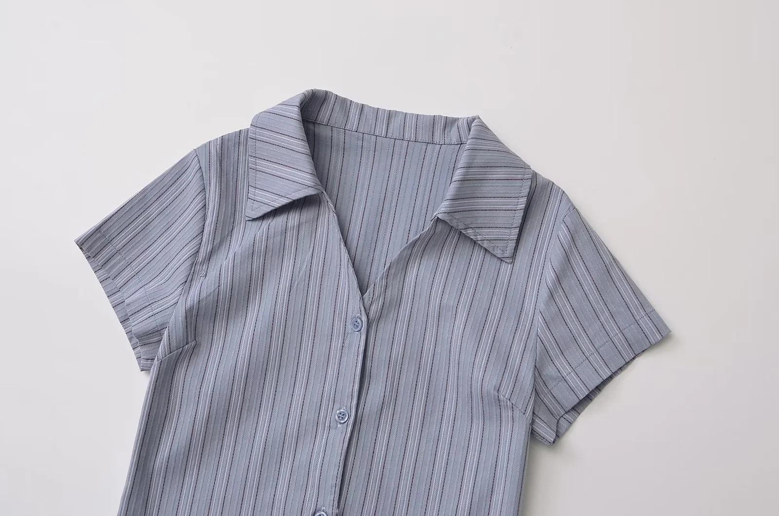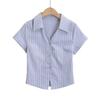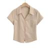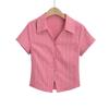 Camisa de Manga Corta con Tres Botones Estilo Europeo y Americano para Mujer Verano Ajustada Cintura Alta Sexy Ombligo Camisa Corta