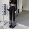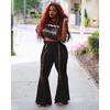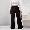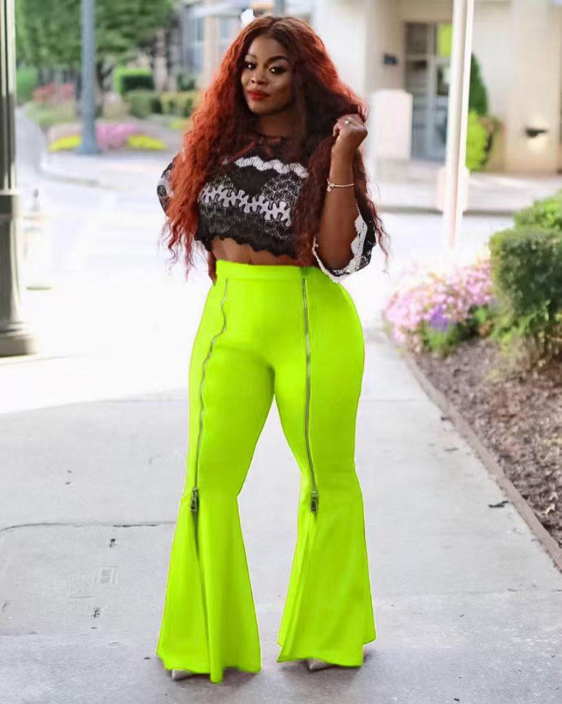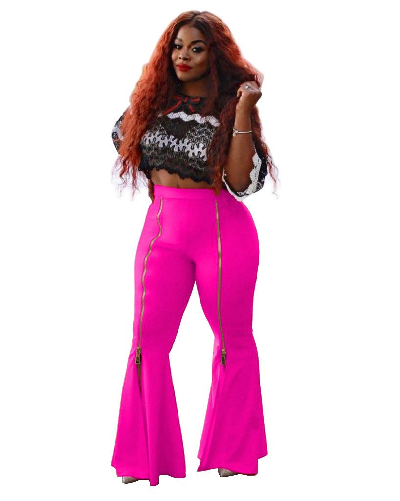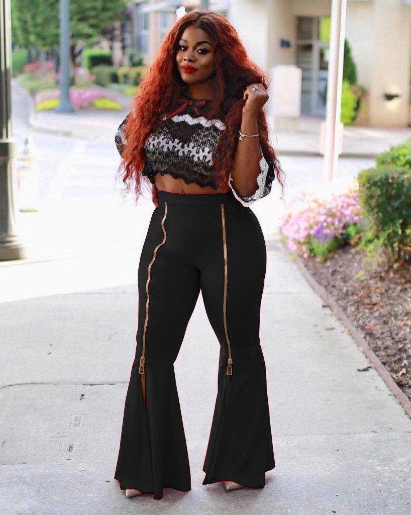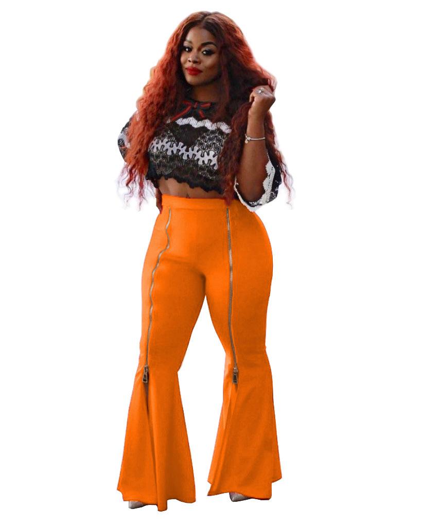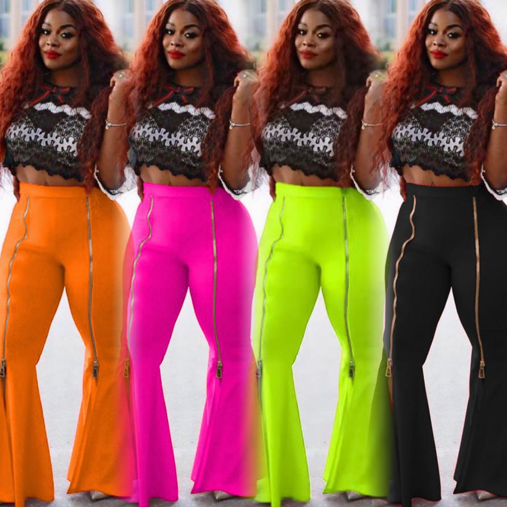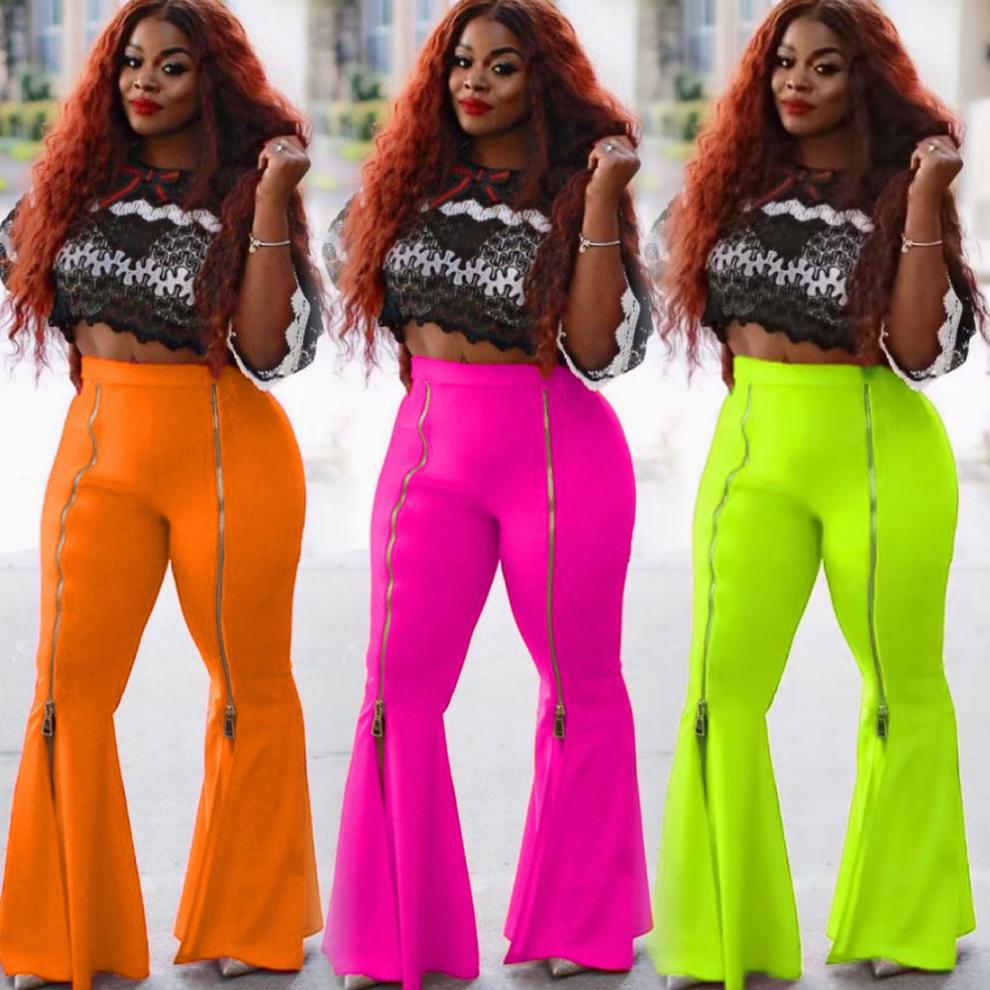 Pantalones Casuales de Pierna Ancha para Mujer, Moda Europea y Americana Transfronteriza, Cintura Alta Adelgazantes con Volantes Acampanados y Cierre de Cremallera, Color Sólido