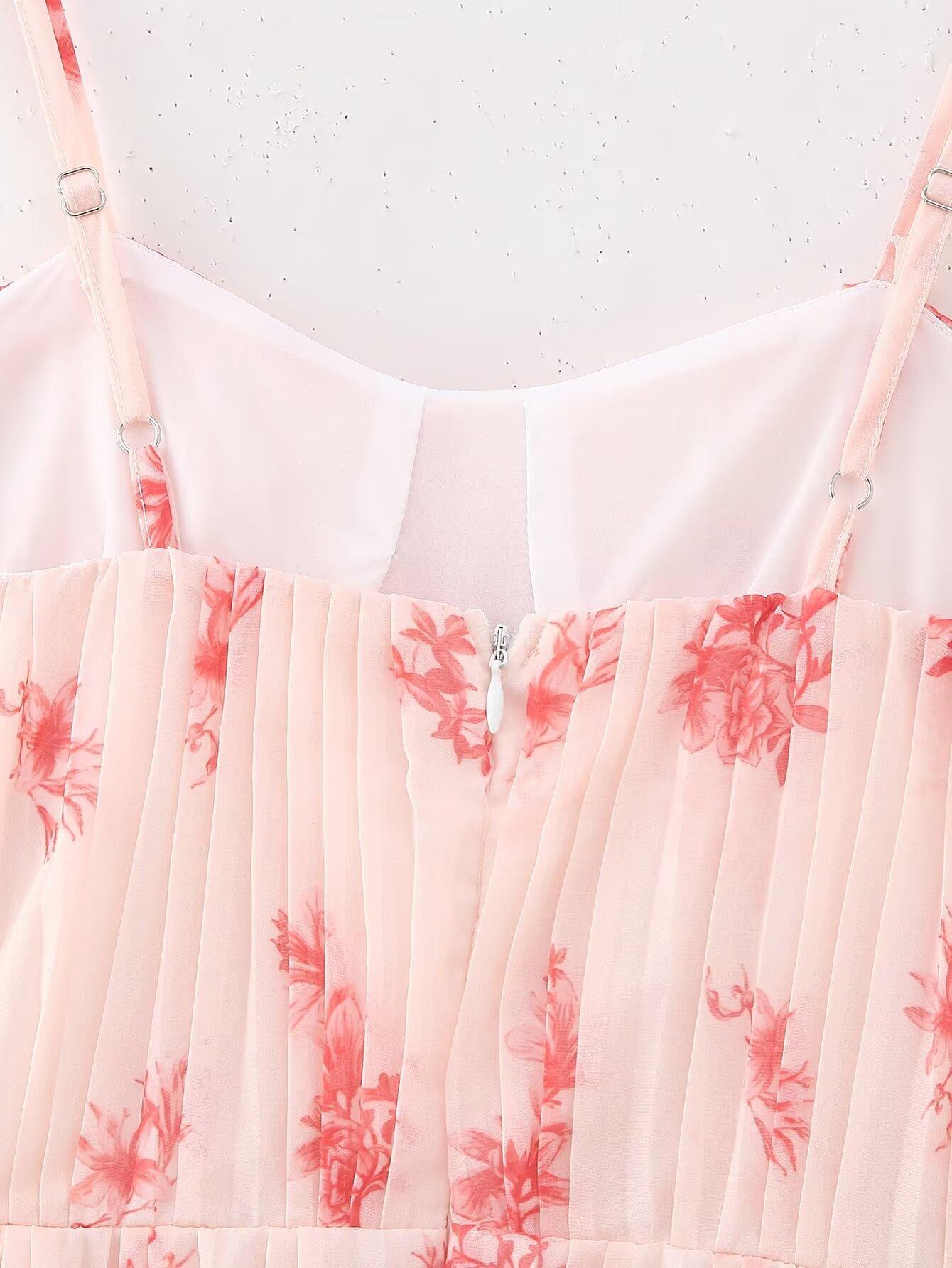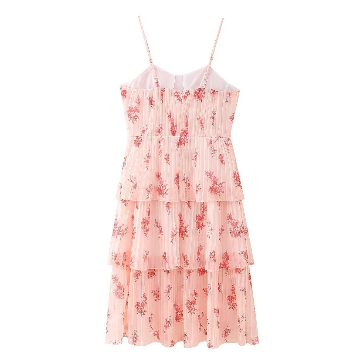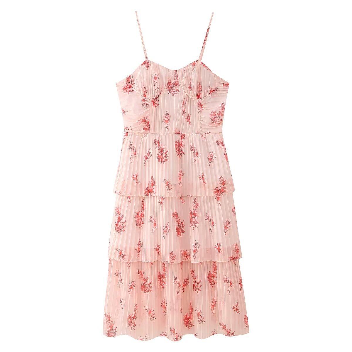 Venta al por mayor 2024 primavera nuevo estilo europeo y americano vestido de tirantes de chifón plisado para mujer falda de pastel