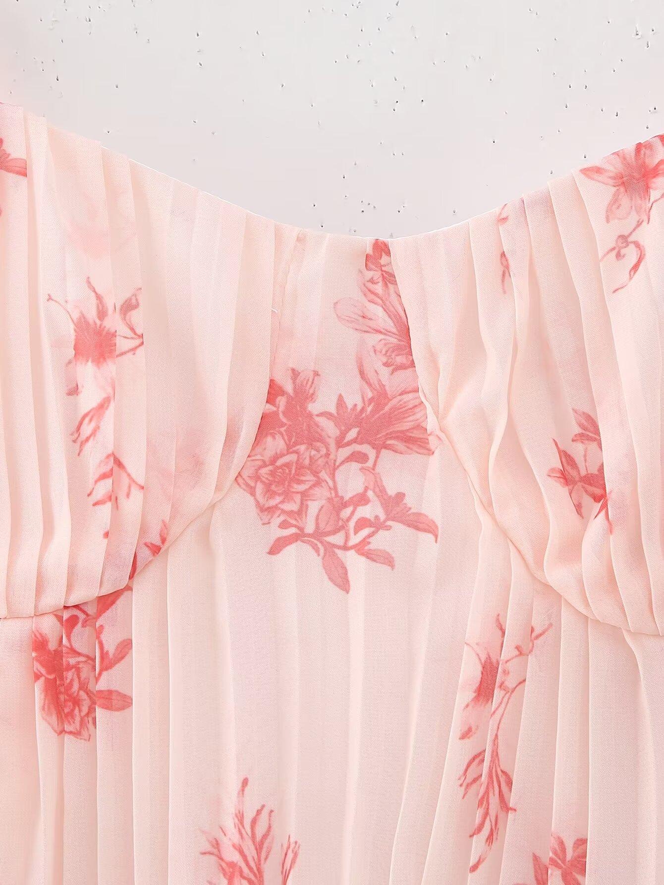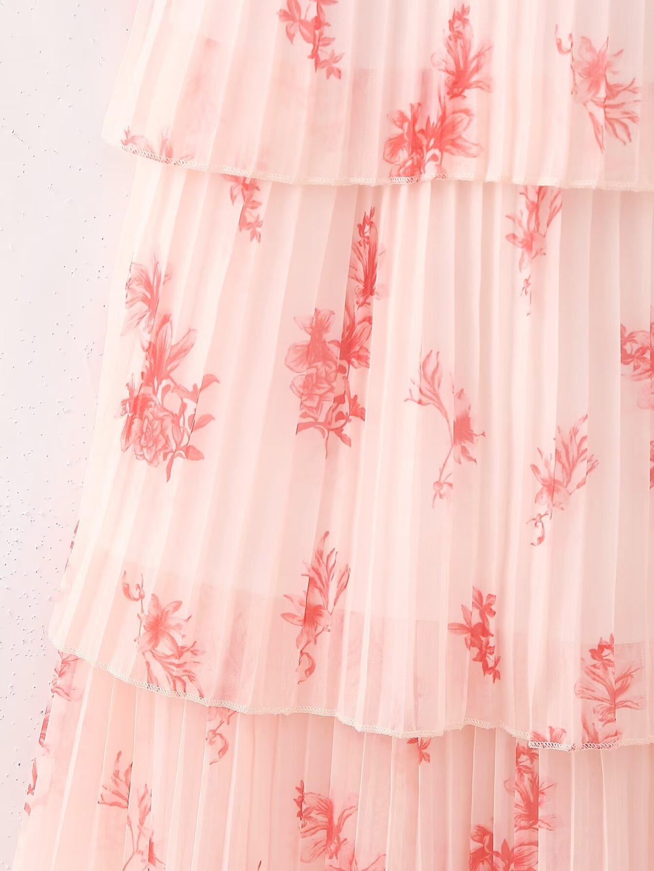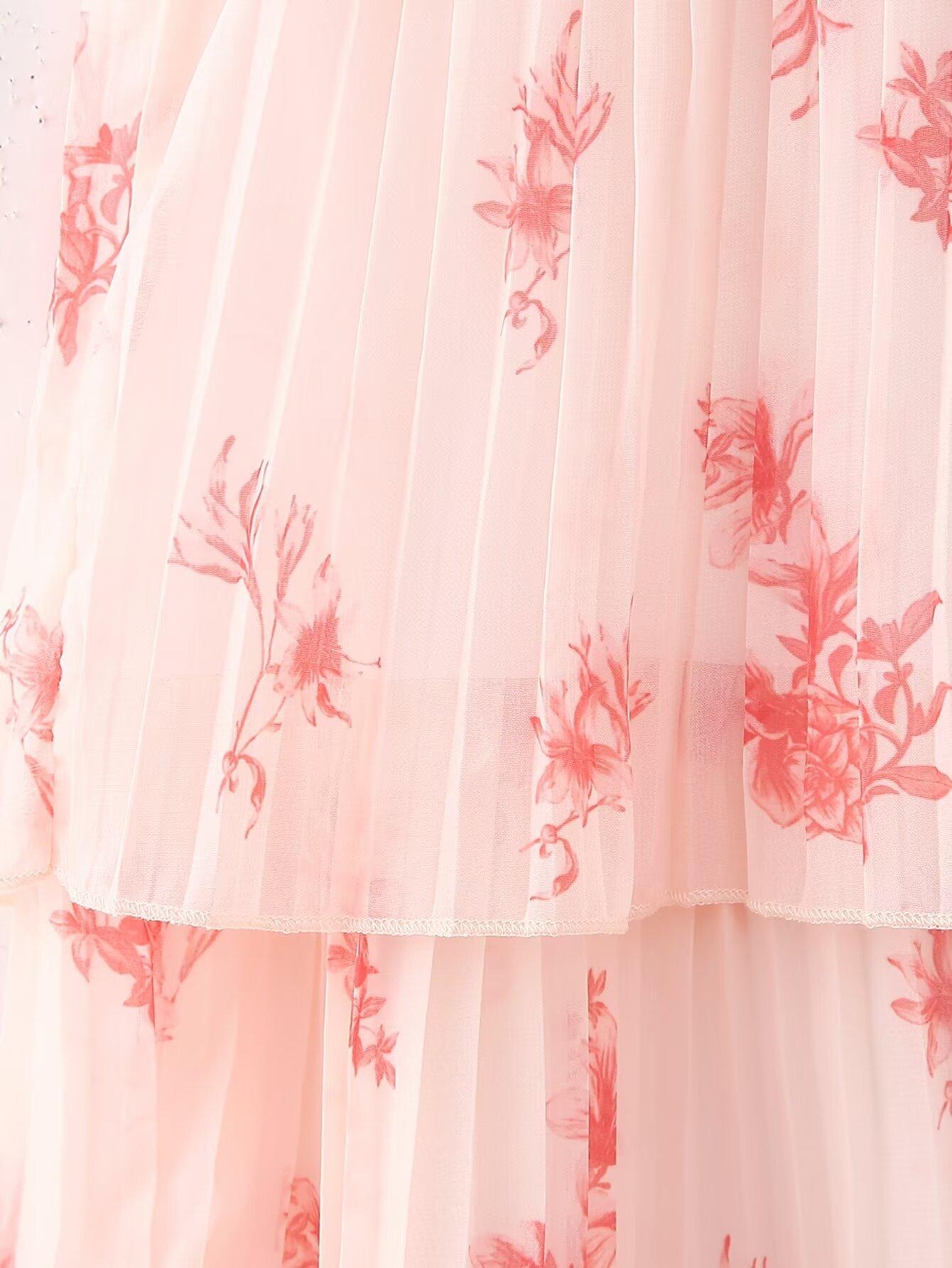 Venta al por mayor 2024 primavera nuevo estilo europeo y americano vestido de tirantes de chifón plisado para mujer falda de pastel