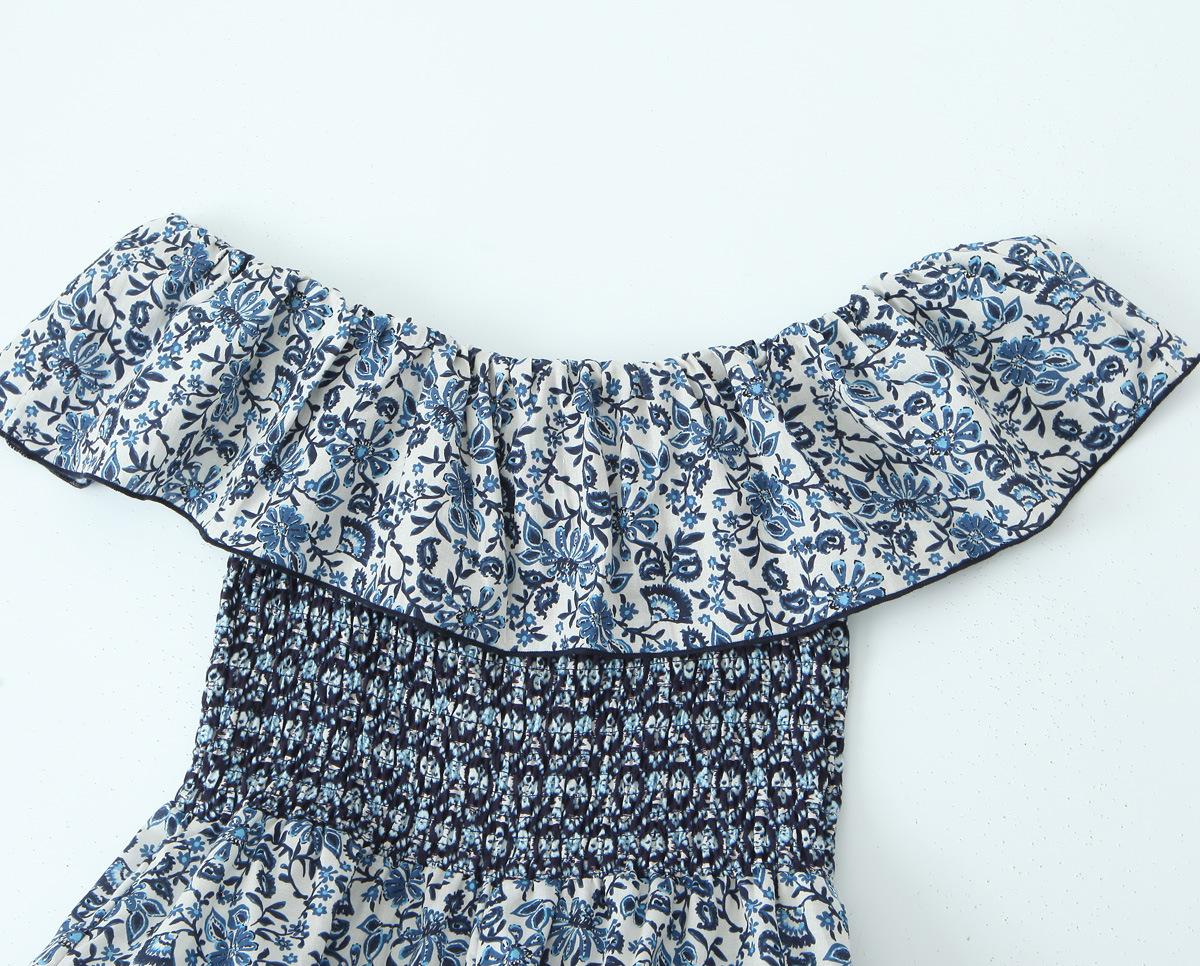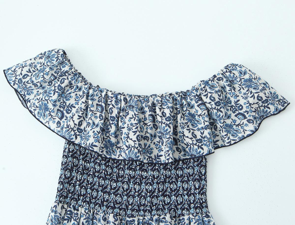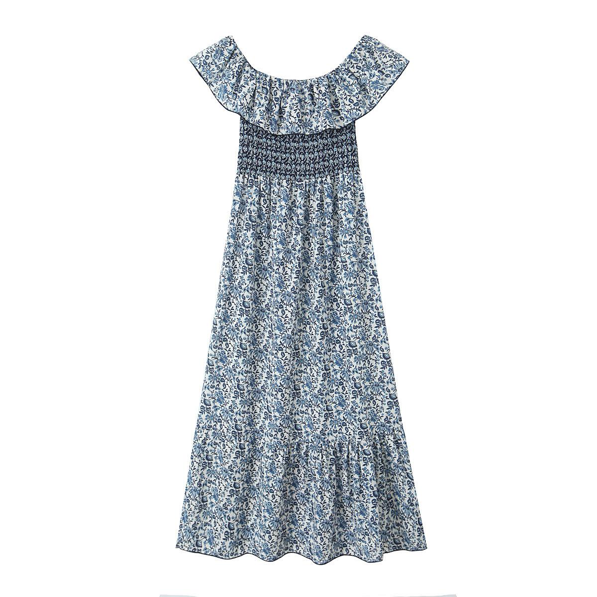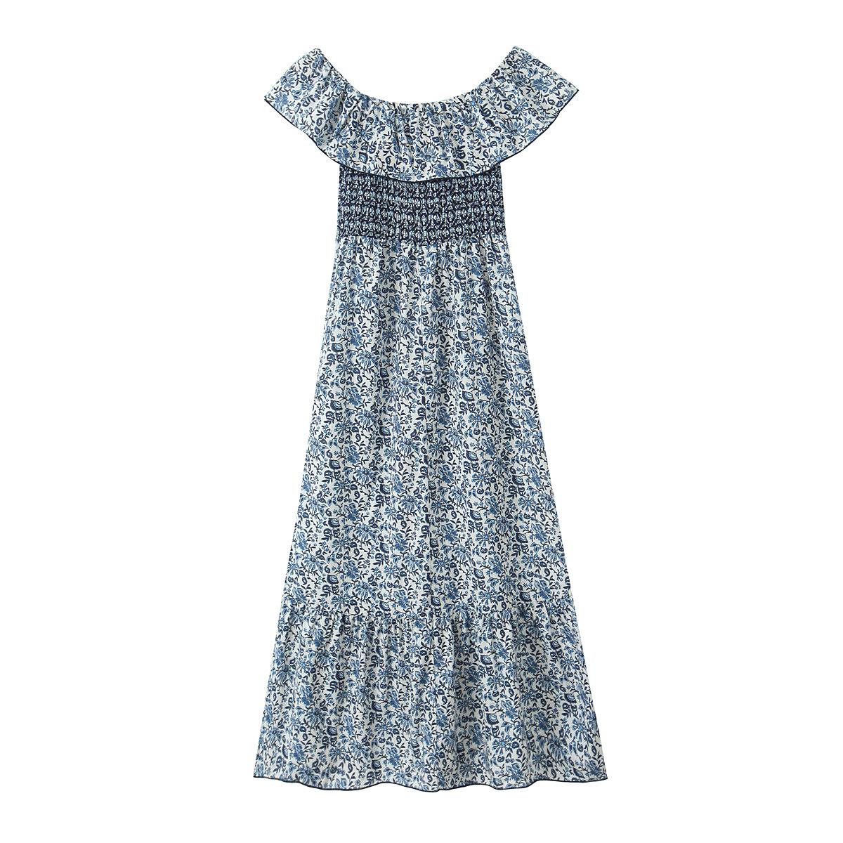 Venta al por mayor 2024 Primavera Nuevo Estilo Europeo y Americano Vestido Midi de Hombro Estampado para Mujer