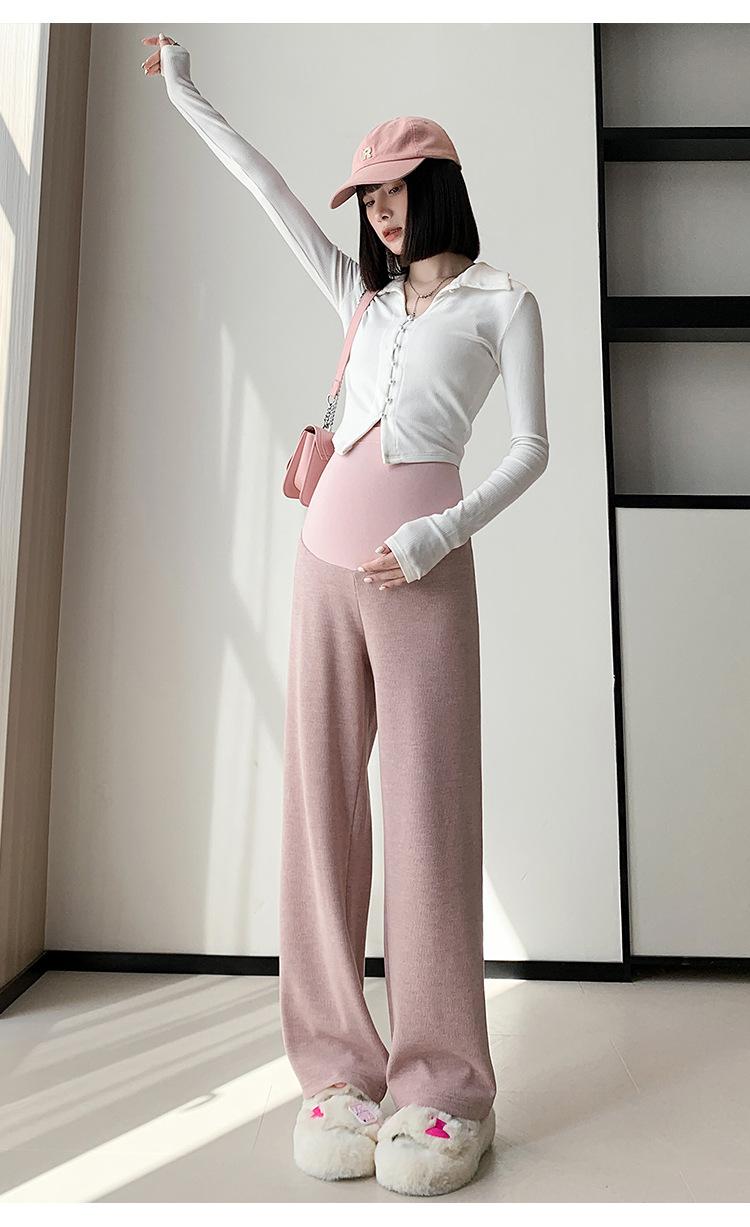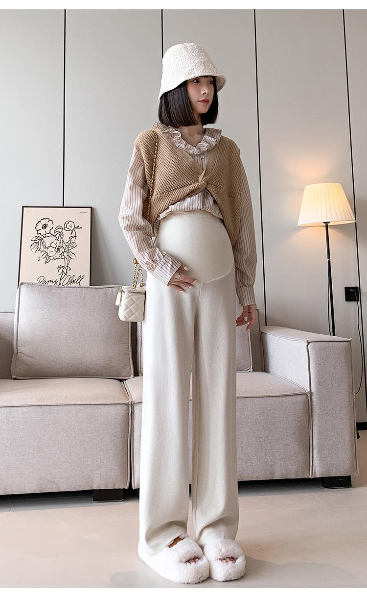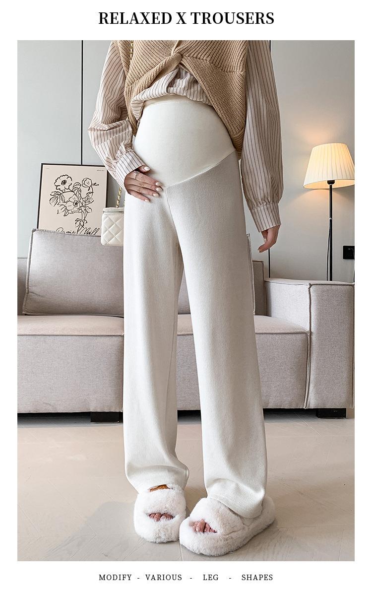 Pantalones Nuevos para Mujeres Embarazadas 2024 para Otoño e Invierno Ropa Exterior forrados de vellón Chenilla Pierna Ancha Pantalones Sueltos Rectos Adelgazantes