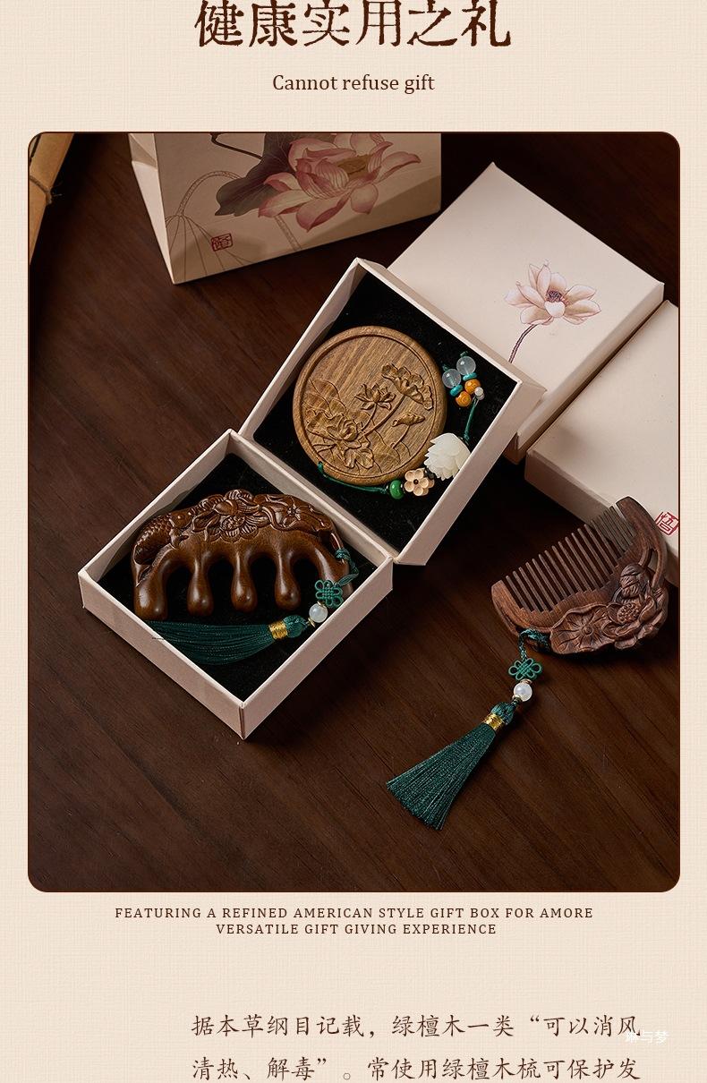 [all the best] sandalwood massage comb + tassel + gift box bag + greeting card, [all the best] lotus comb + ta...