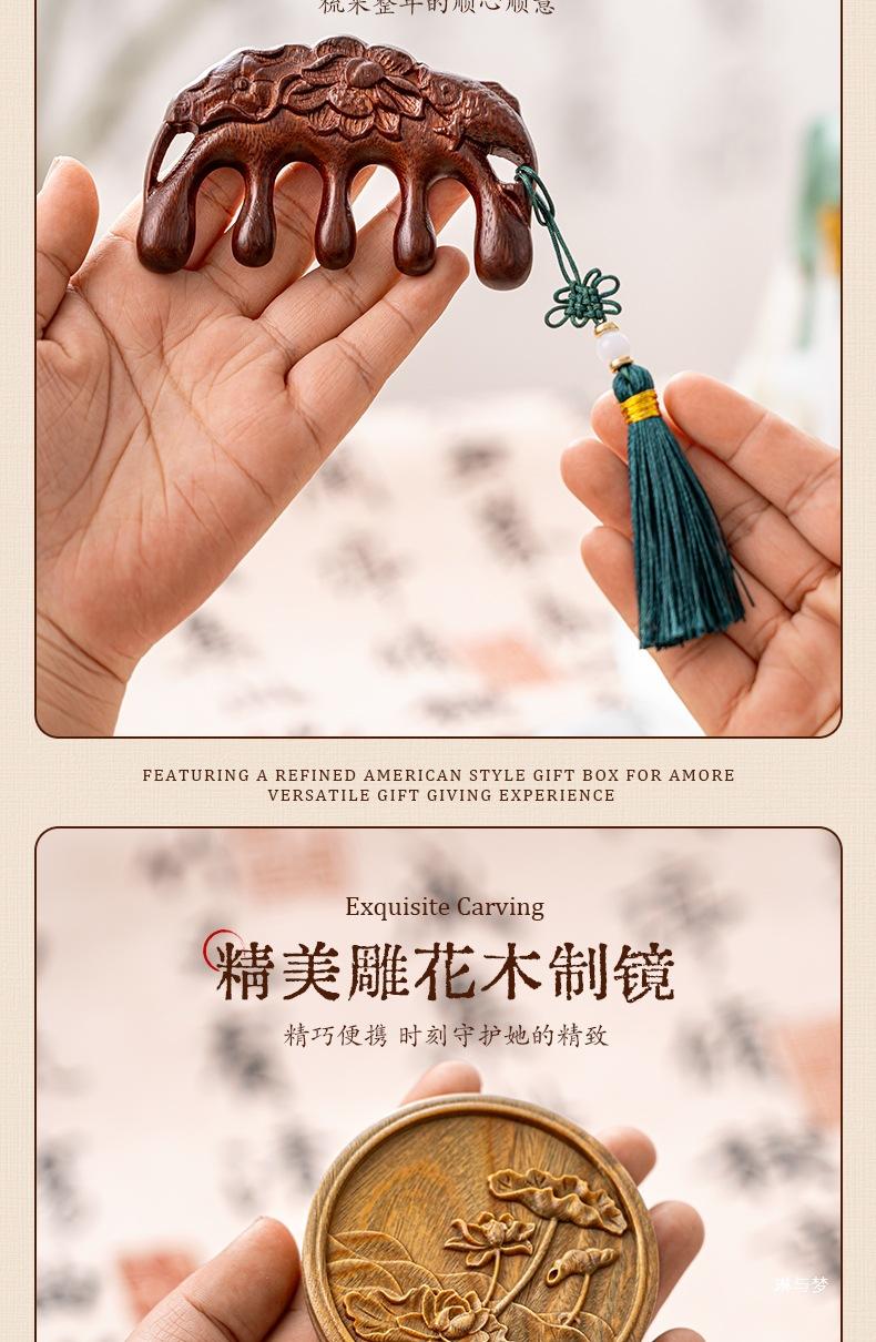 [all the best] lotus comb + carved mirror + mugwort essential oil + gift box bag
