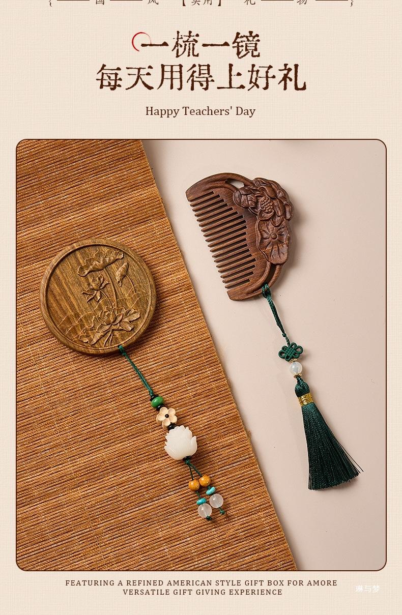 [all the best] lotus comb + carved mirror + tassel + gift box bag + greeting card