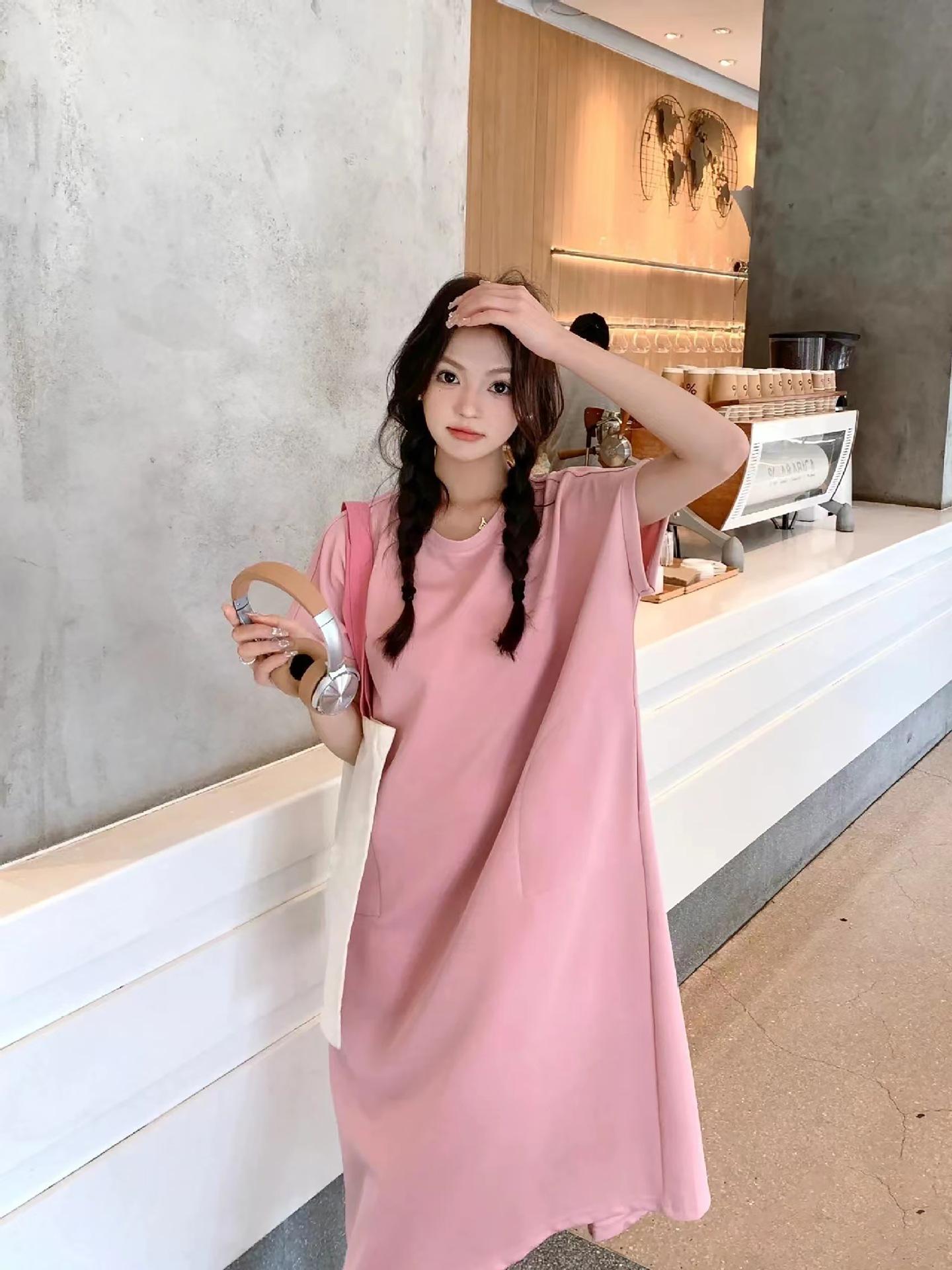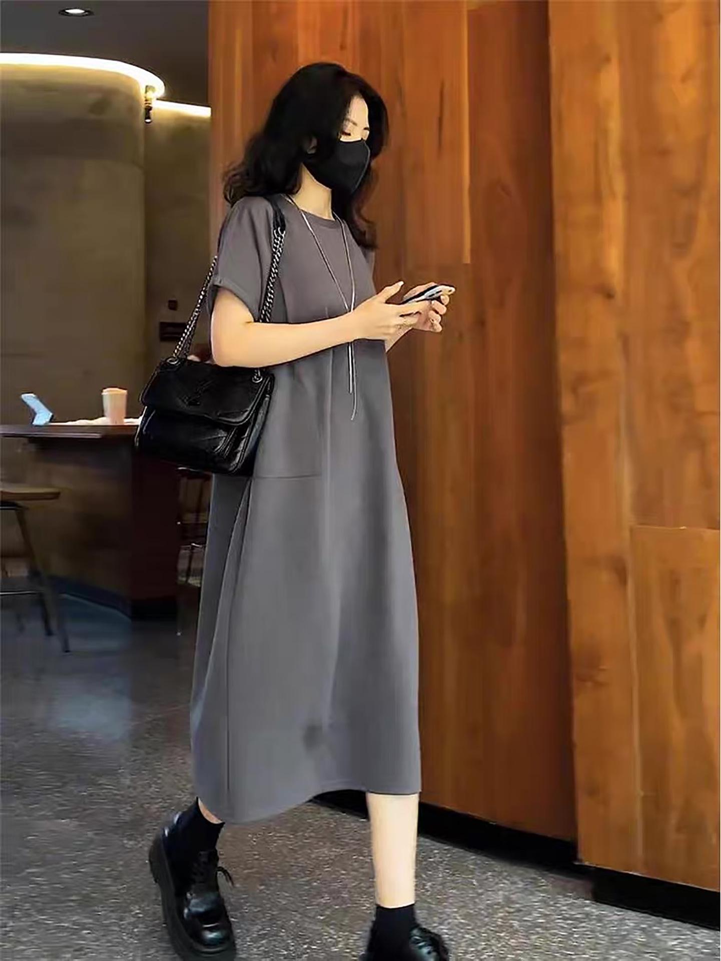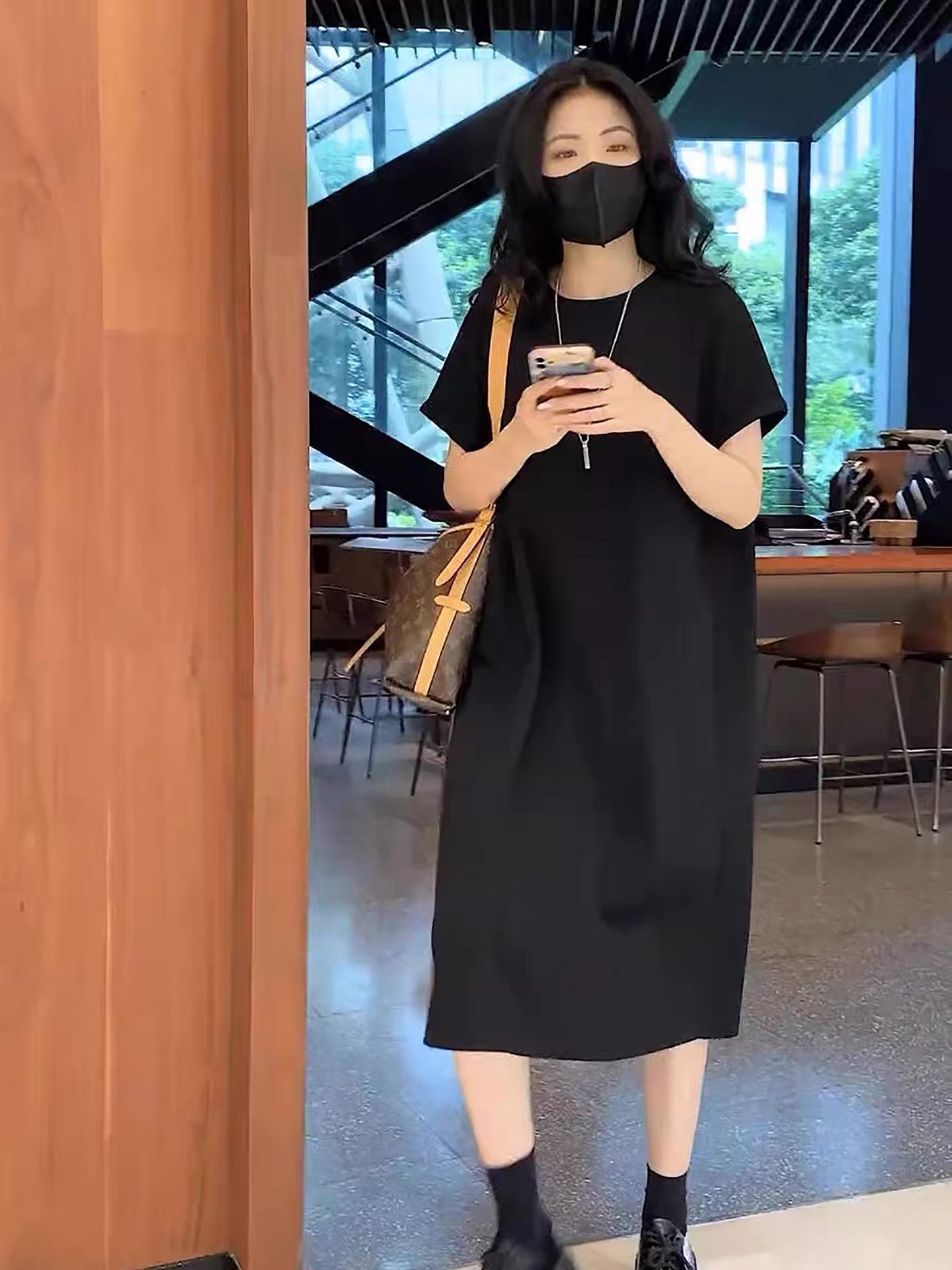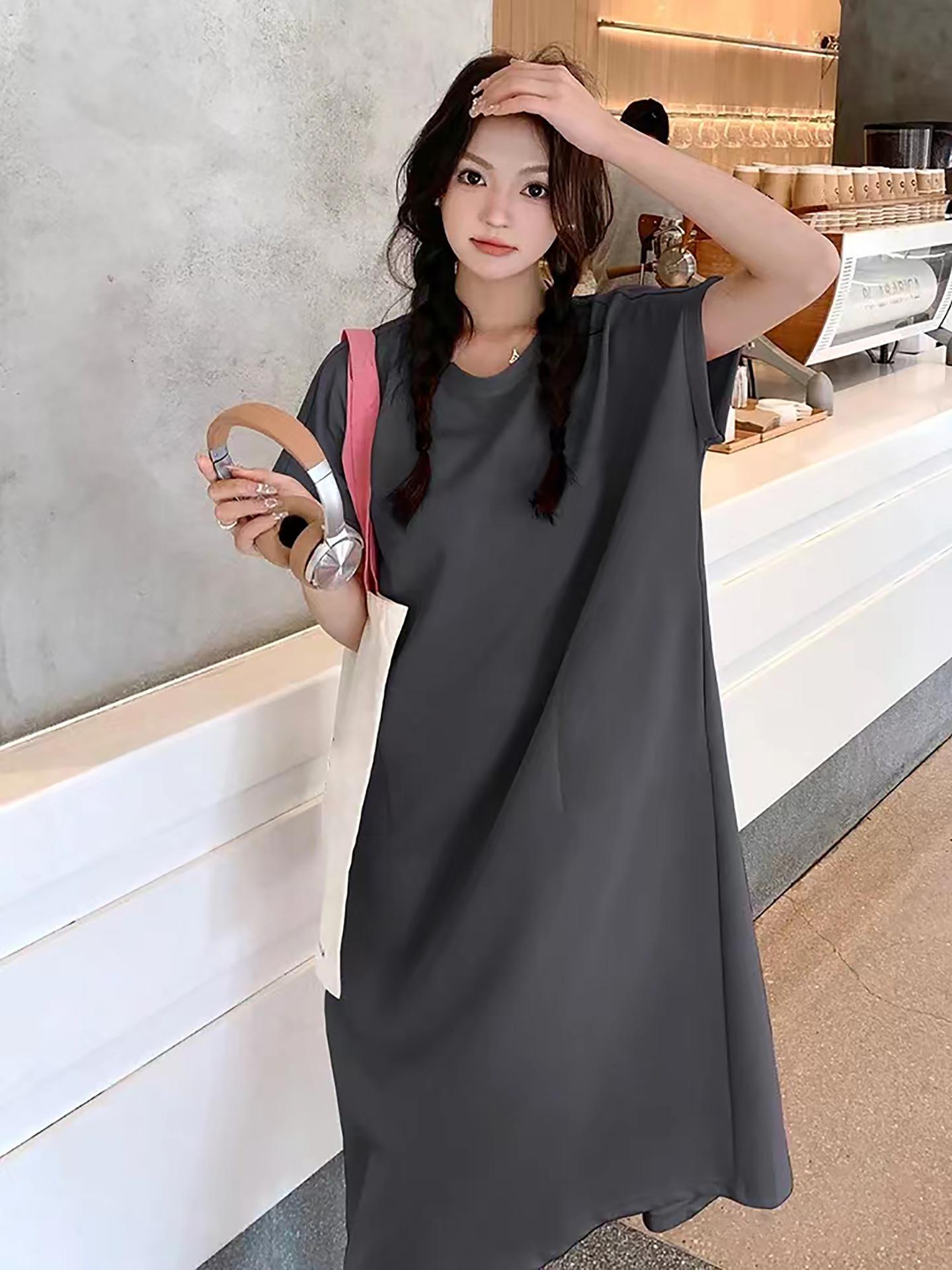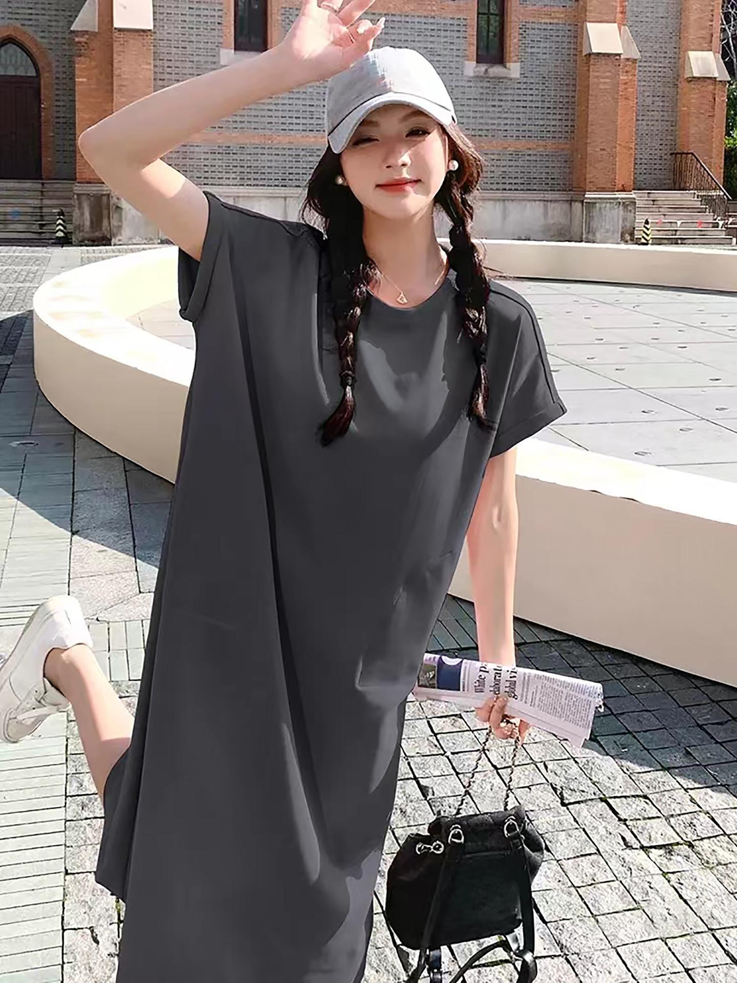 Vestido Camiseta Midi Z10 Temperamento Elegante Mujer 2025 Verano Nuevo Sencillo Versátil Suelto Adelgazante