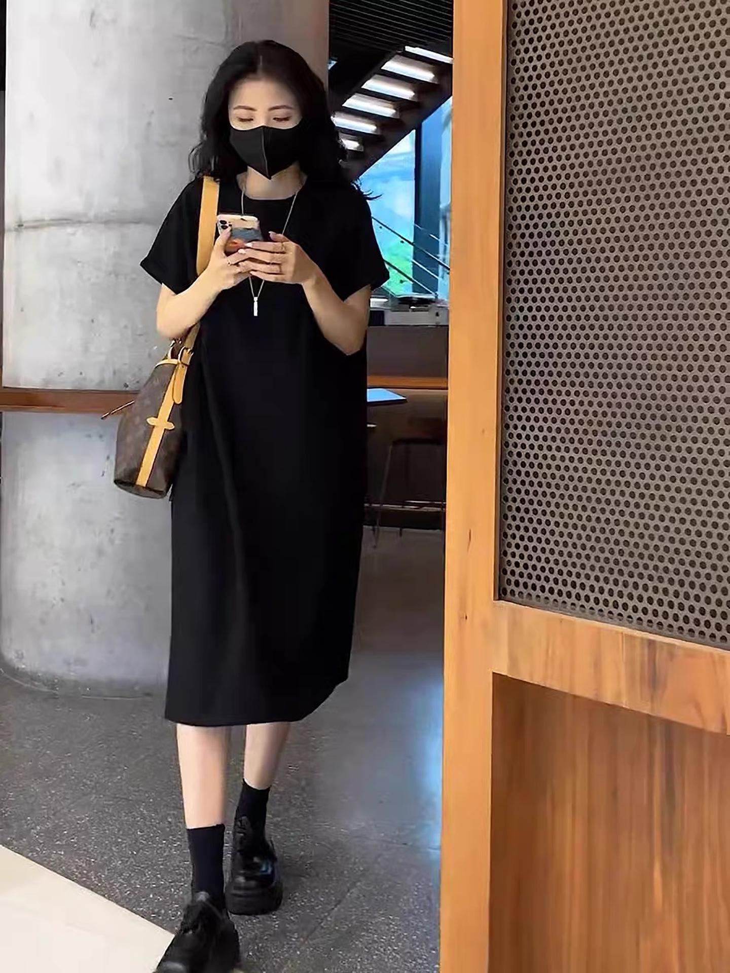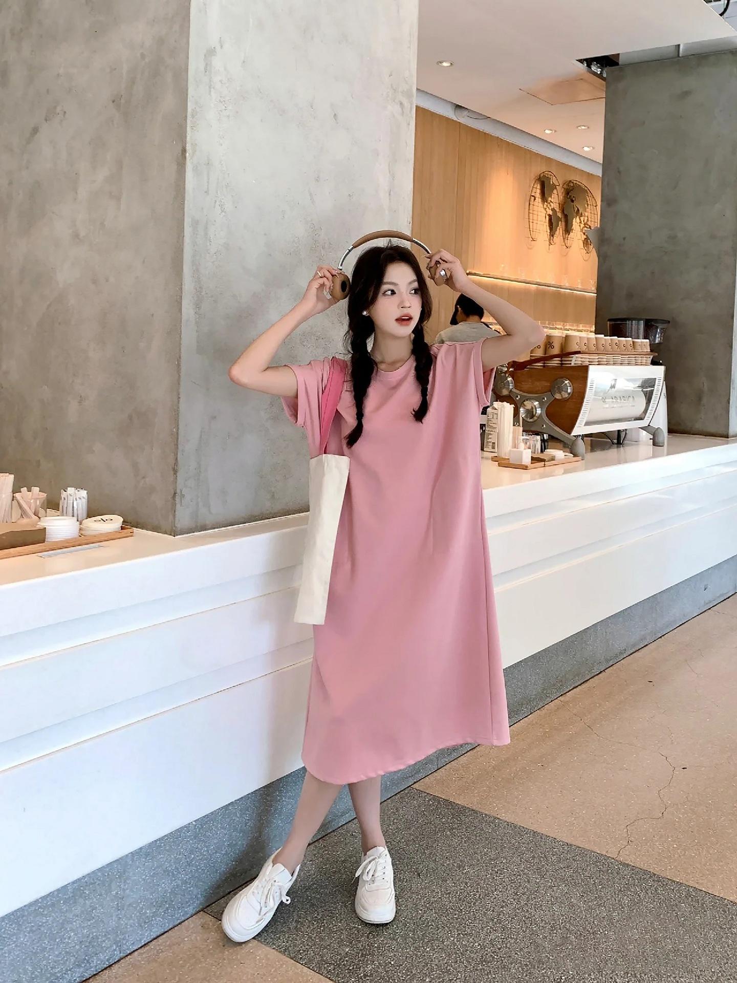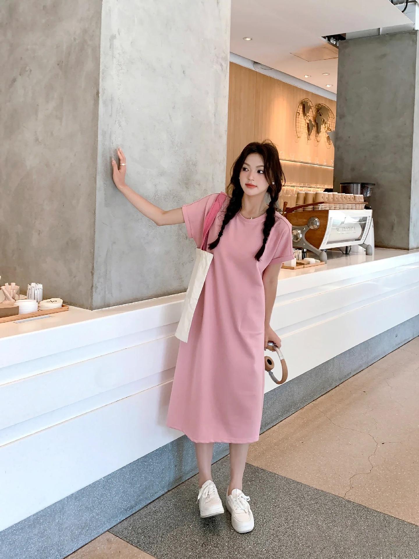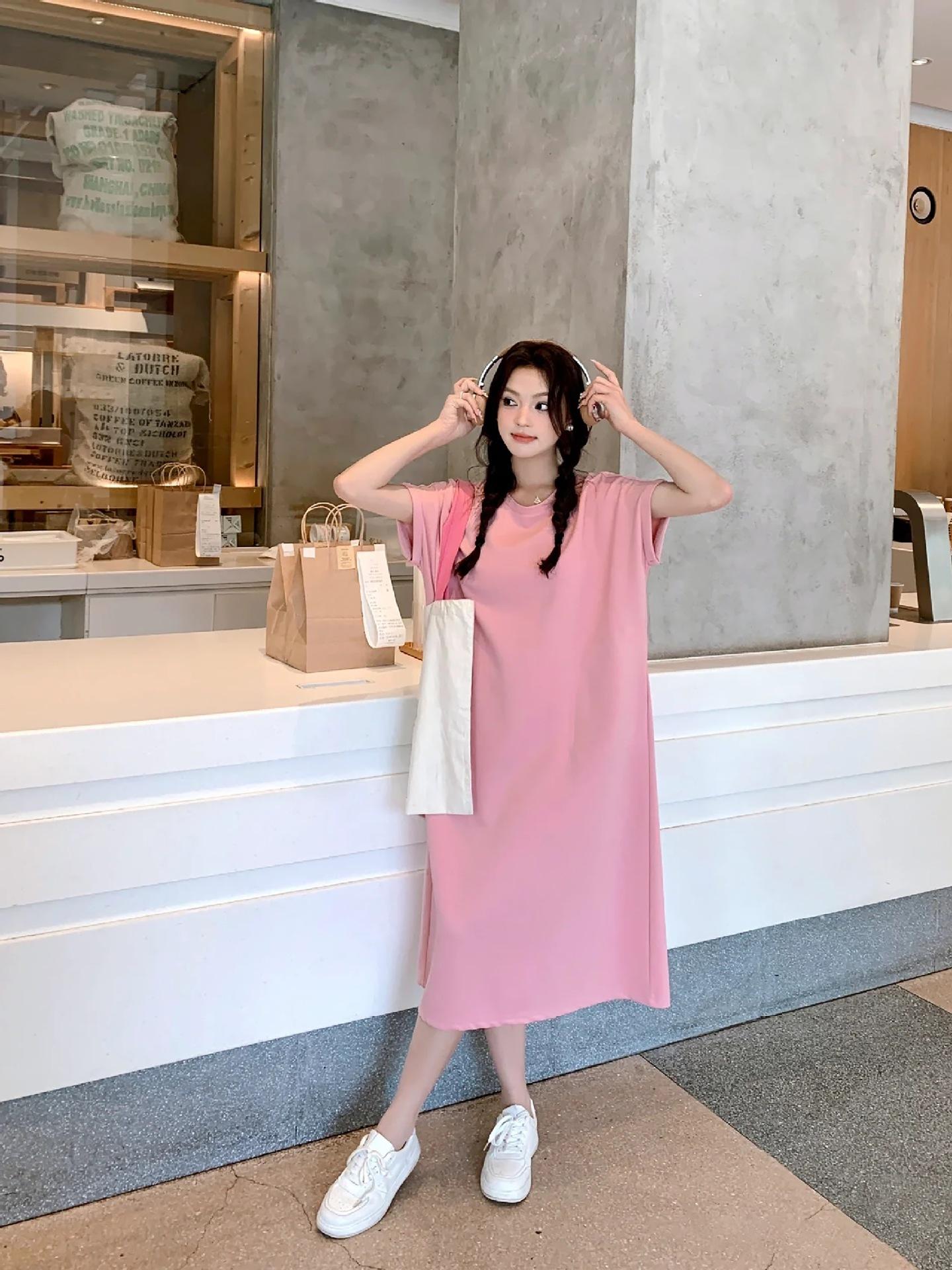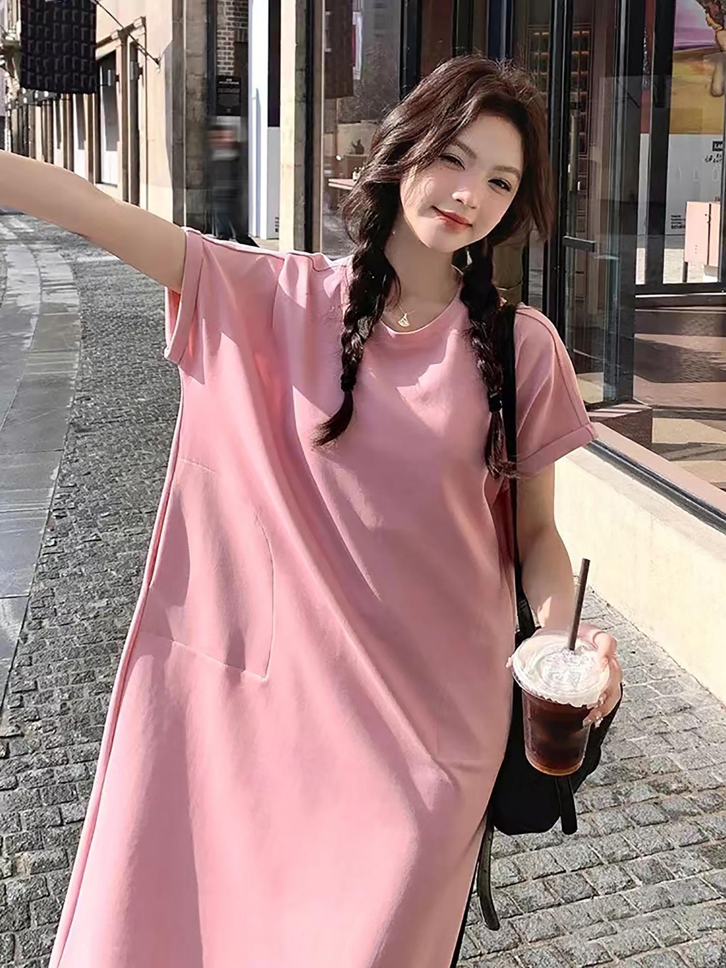 Vestido Camiseta Midi Z10 Temperamento Elegante Mujer 2025 Verano Nuevo Sencillo Versátil Suelto Adelgazante