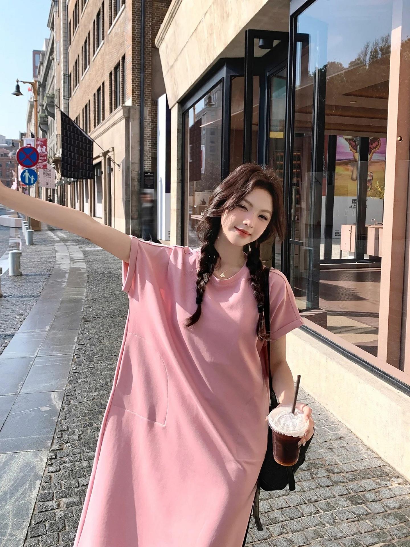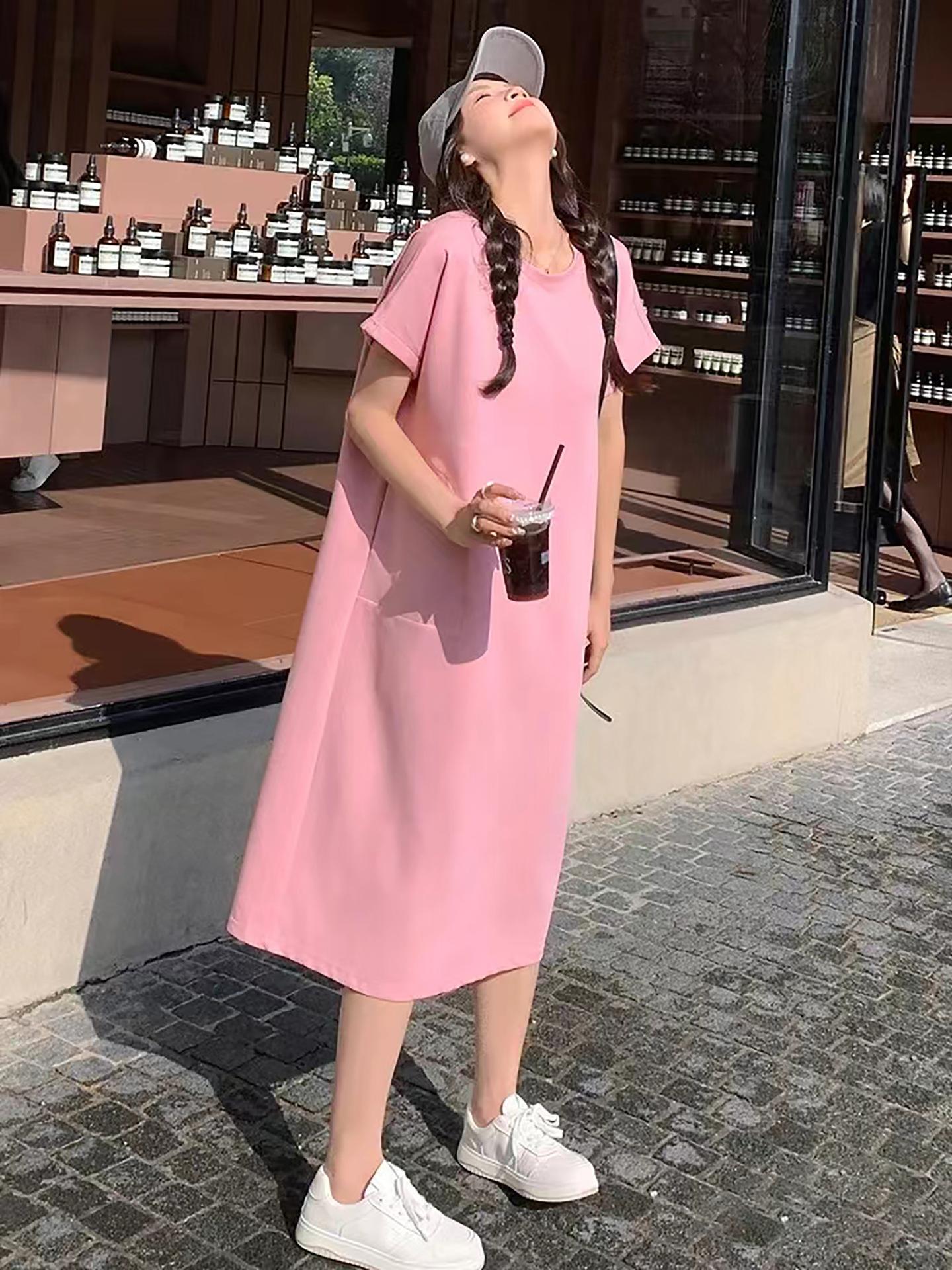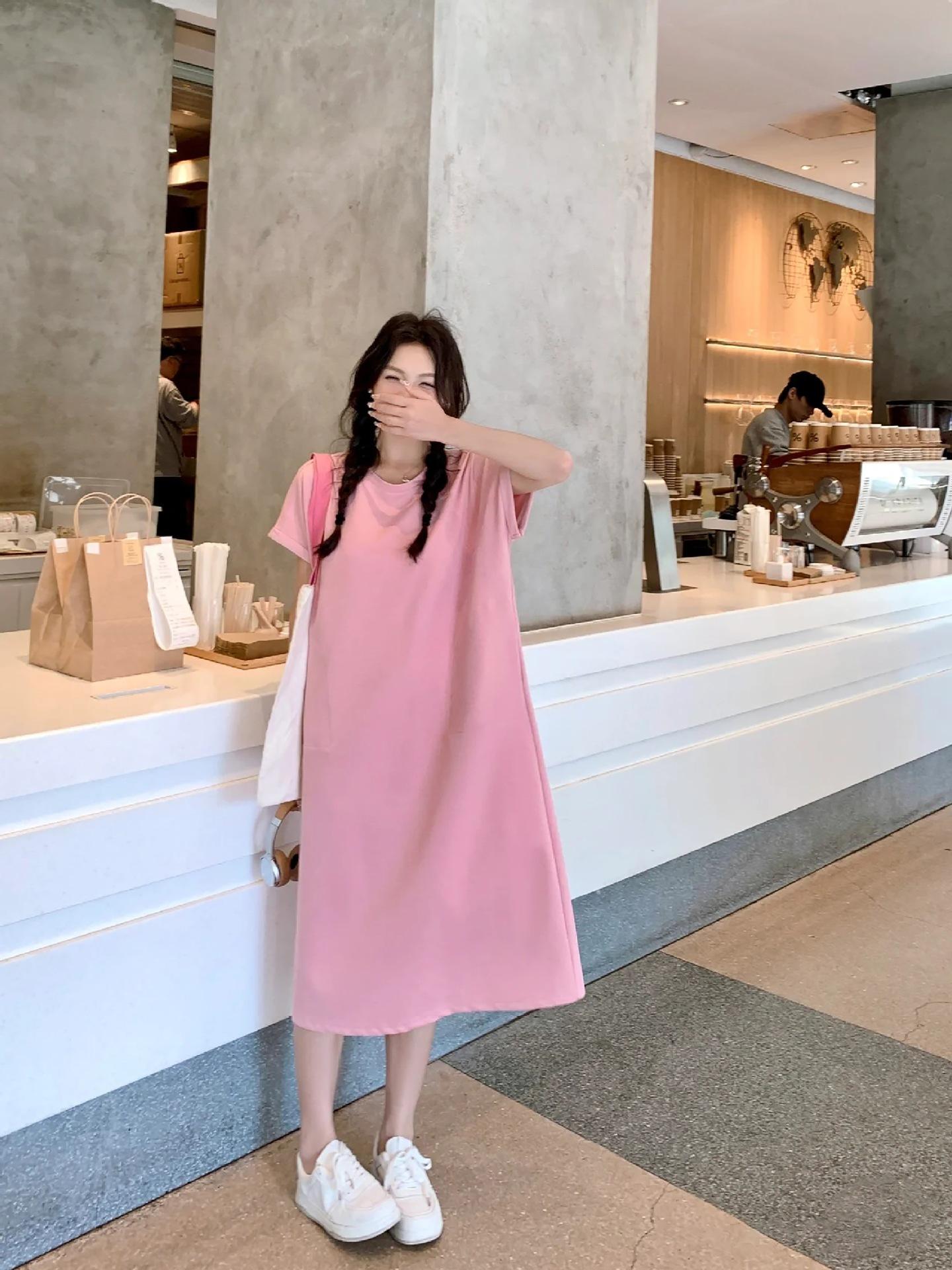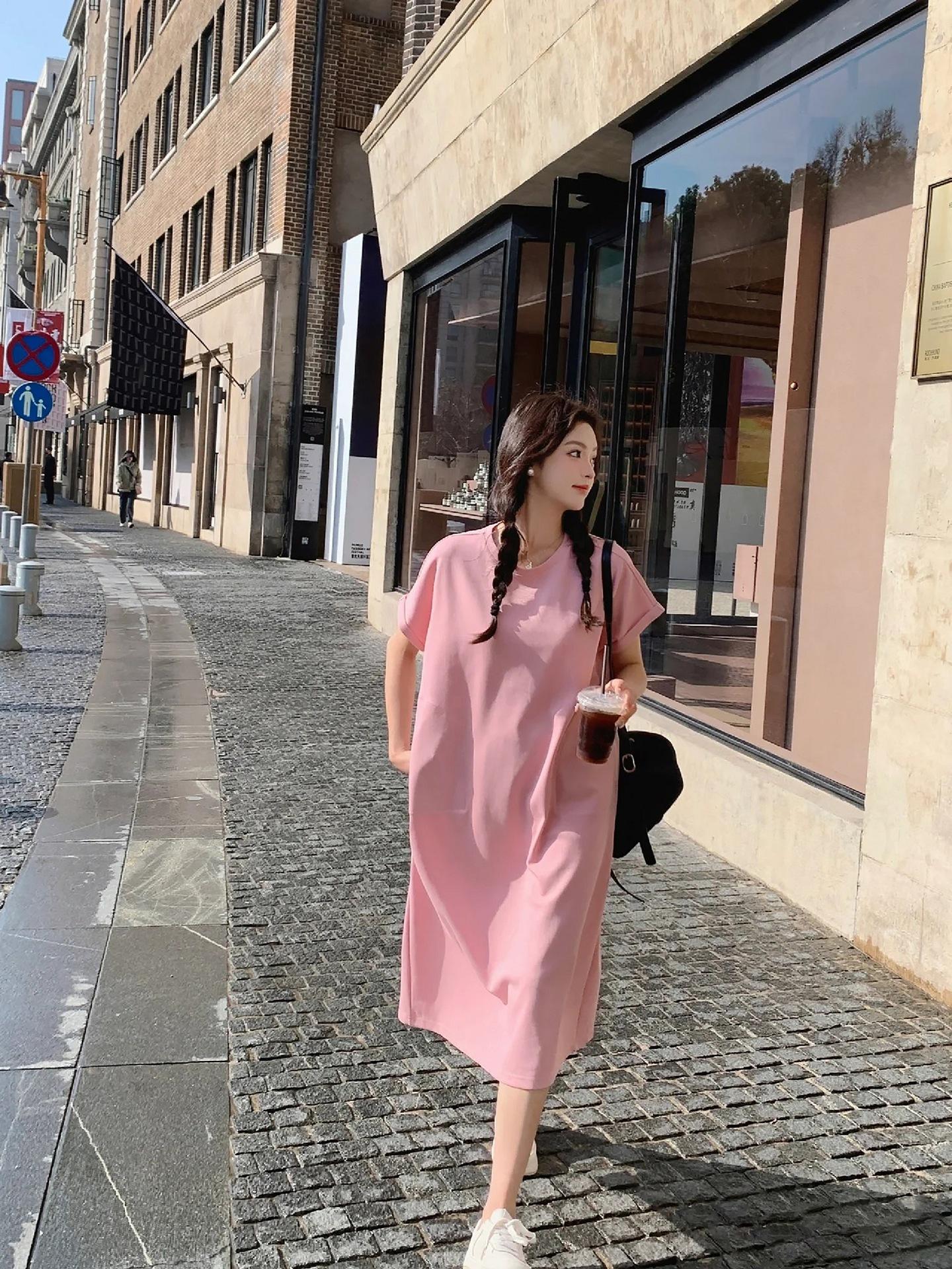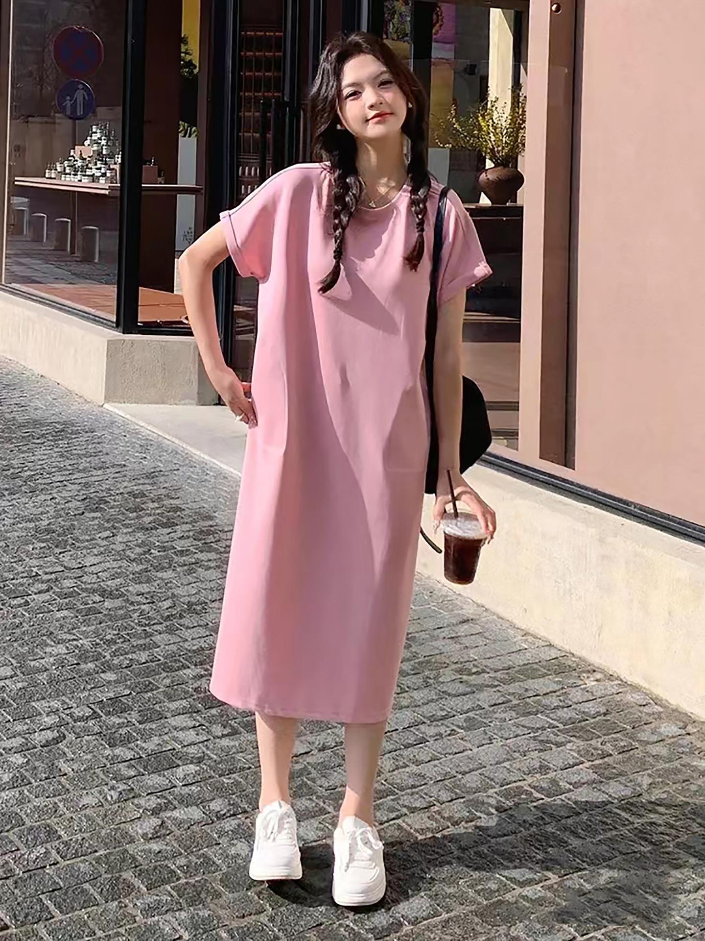 Vestido Camiseta Midi Z10 Temperamento Elegante Mujer 2025 Verano Nuevo Sencillo Versátil Suelto Adelgazante