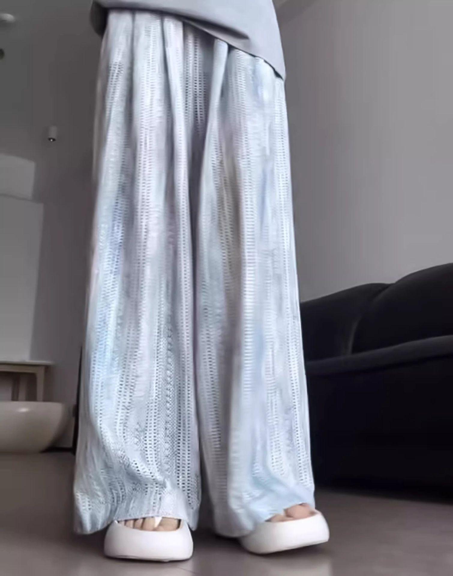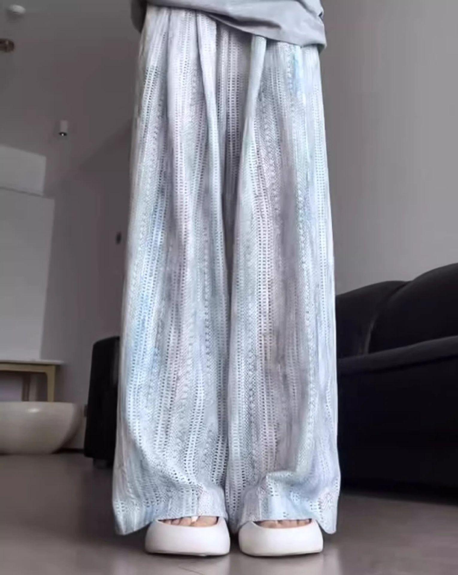 Pantalones Tie-Dye Calados para Mujer, Estilo Delgado de Verano 2025 Nuevo Cintura Alta Caída Sueltos Petite Pierna Ancha Modernos