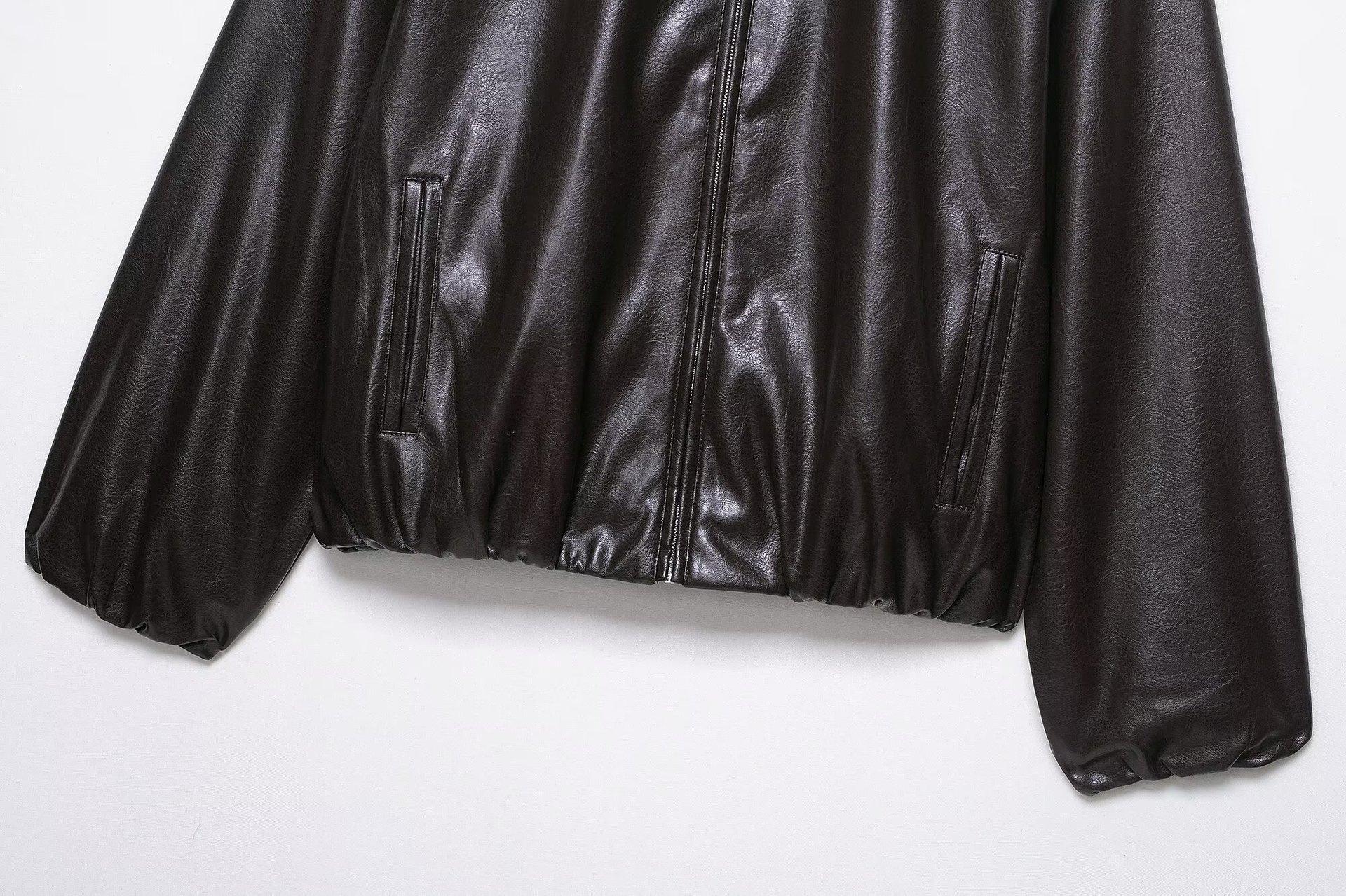 2025 Otoño Nuevo Europeo y Americano Transfronterizo Moda Urbana para Mujer Chaqueta Bomber de Cuero Sintético Abrigo w085 365009