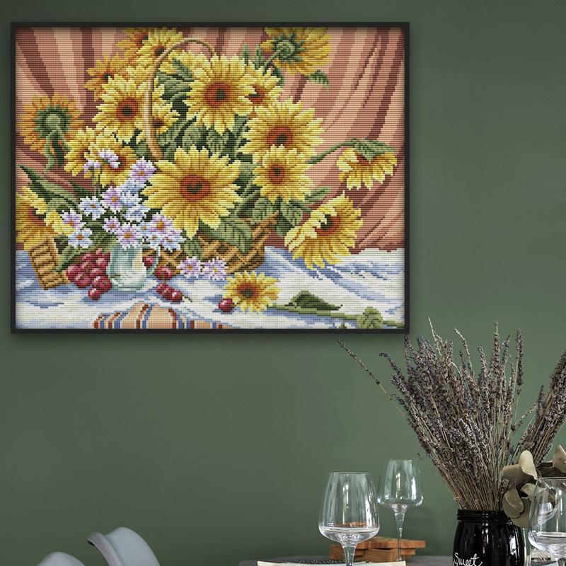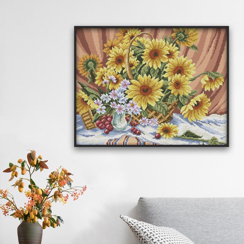 Suministro transfronterizo impresión DIY punto de cruz nuevo moderno simple imagen de girasol decoración del hogar pintura colgante al por mayor