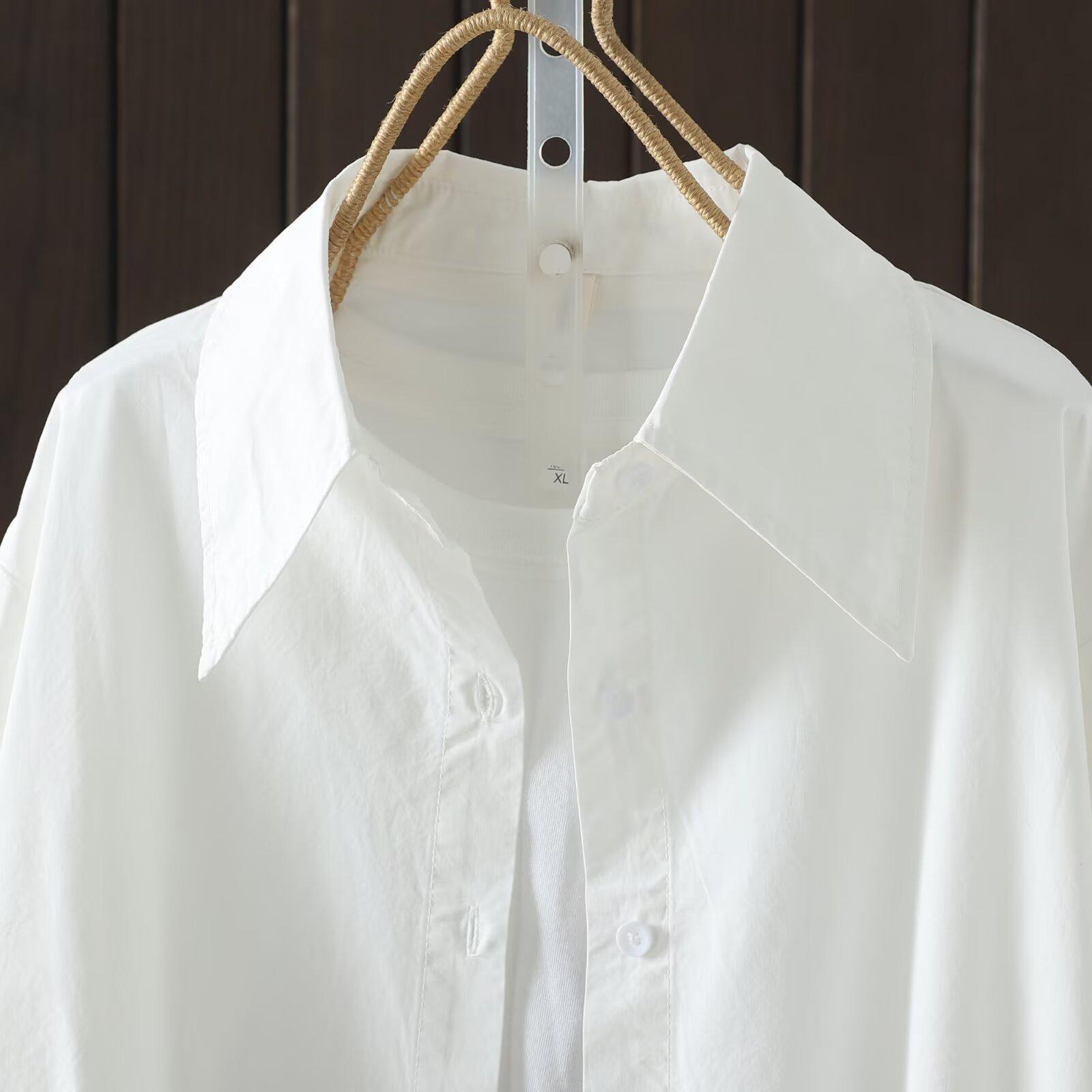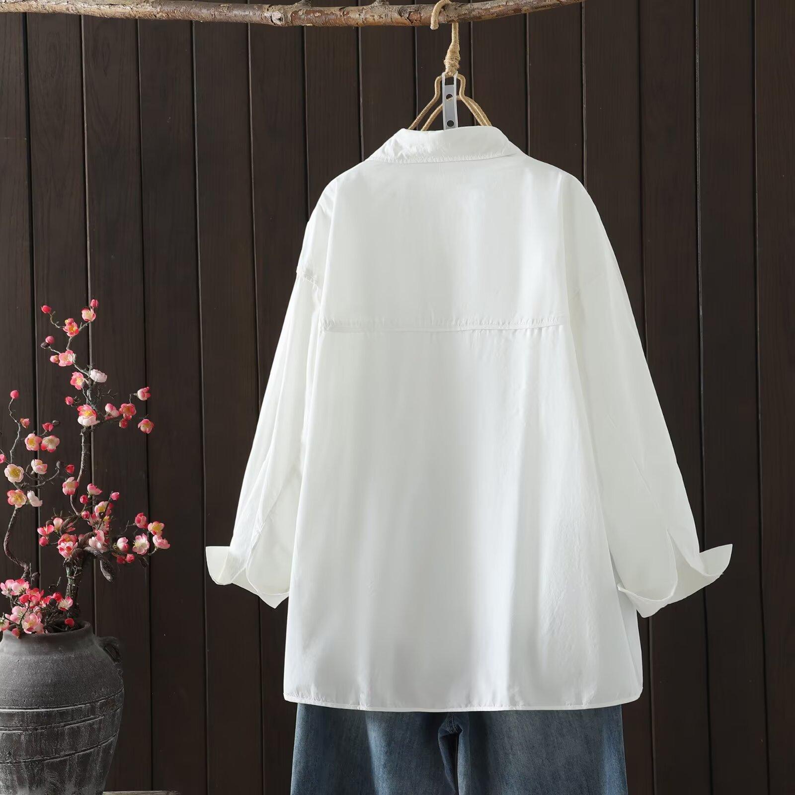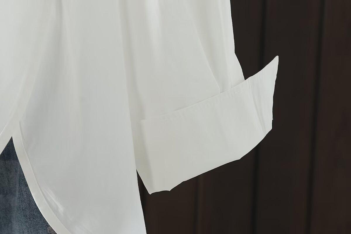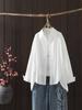 Otoño 2025 Nuevo Camisa de Manga Larga Color Sólido Top para Mujer Cárdigan Talla Grande Holgado Algodón Cuello Vuelto Al Por Mayor