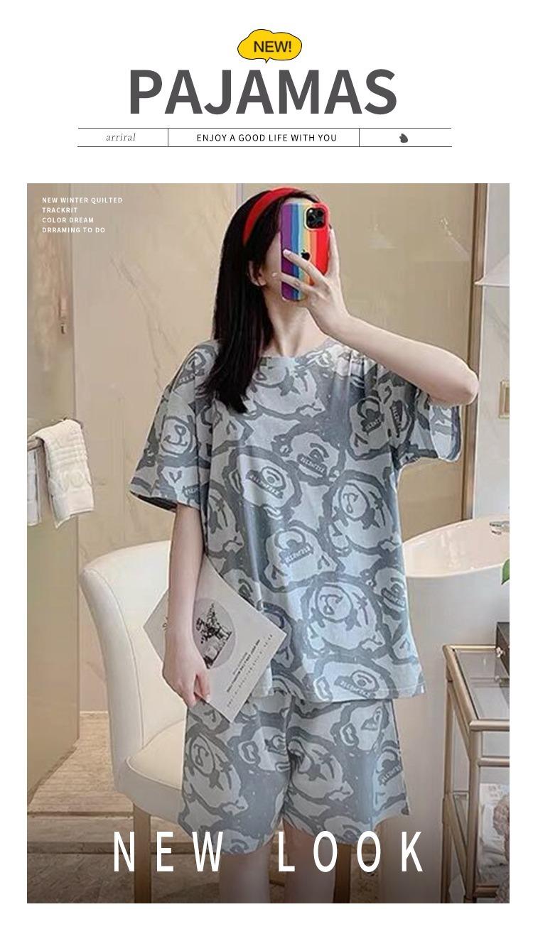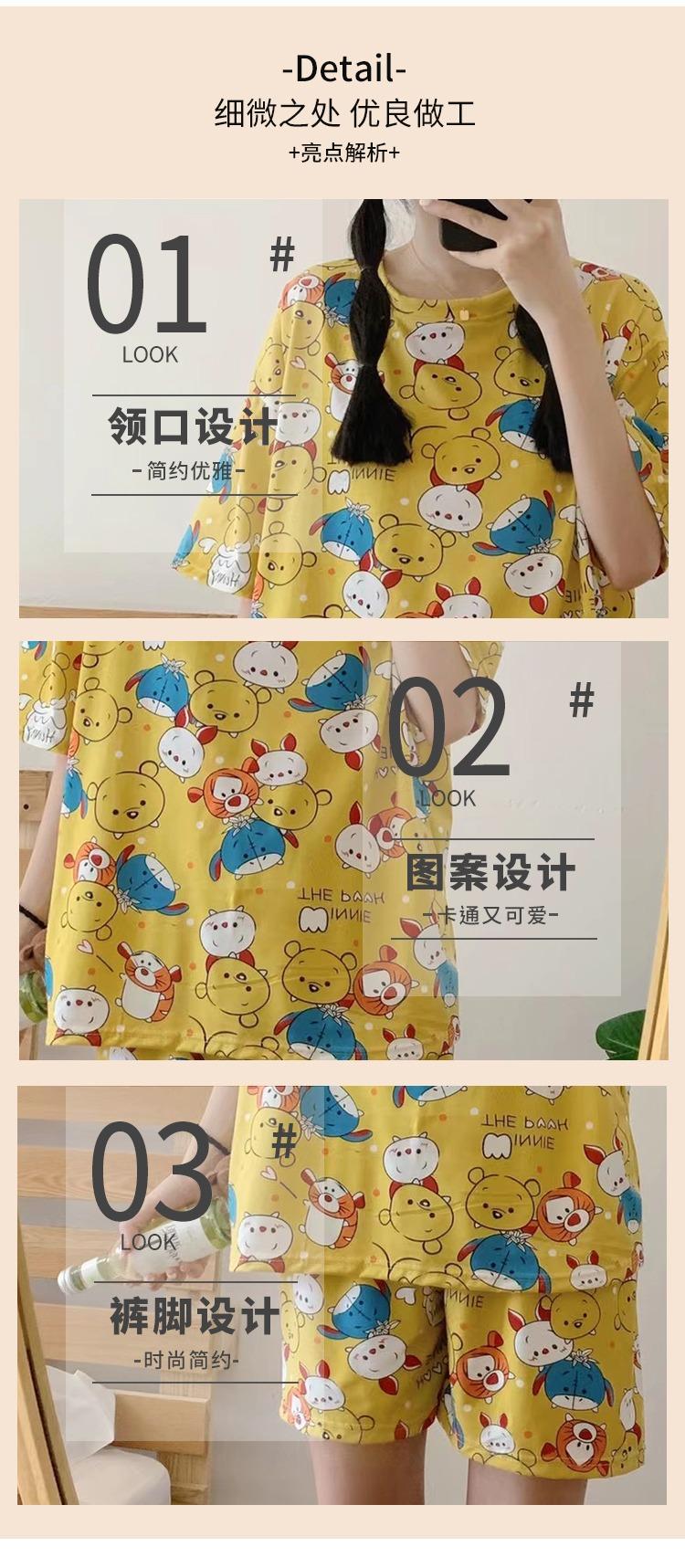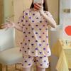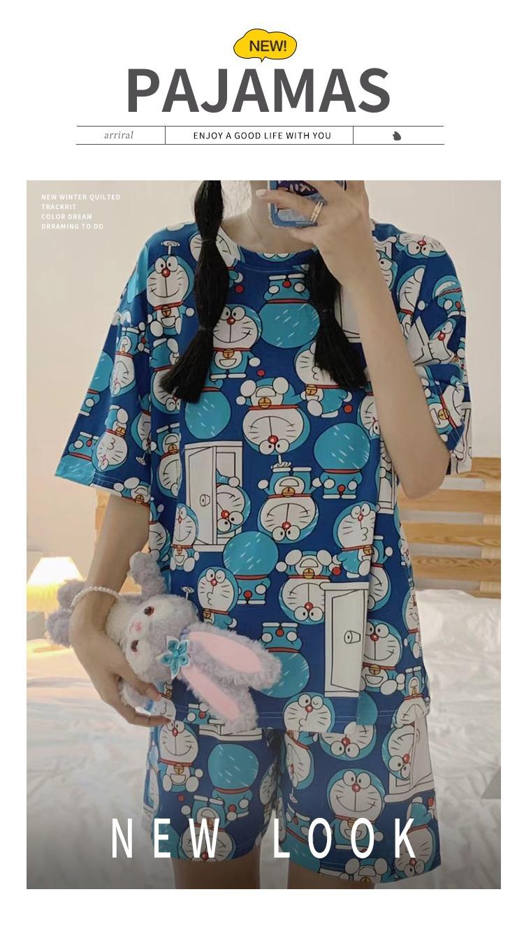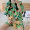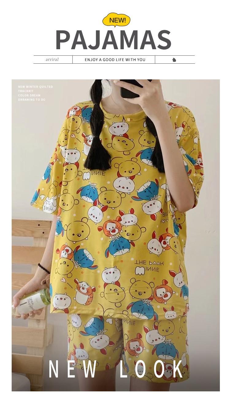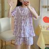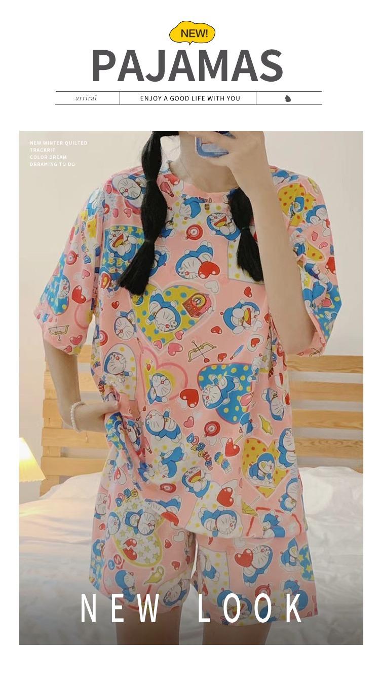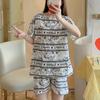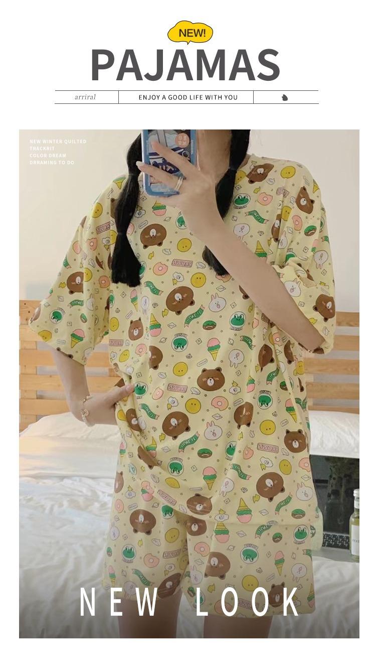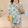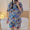 Pijamas de verano para mujer, pantalones cortos de manga corta, traje de rayas, verano, lindos dibujos animados, sueltos, ropa de casa de primavera y otoño para mujer.