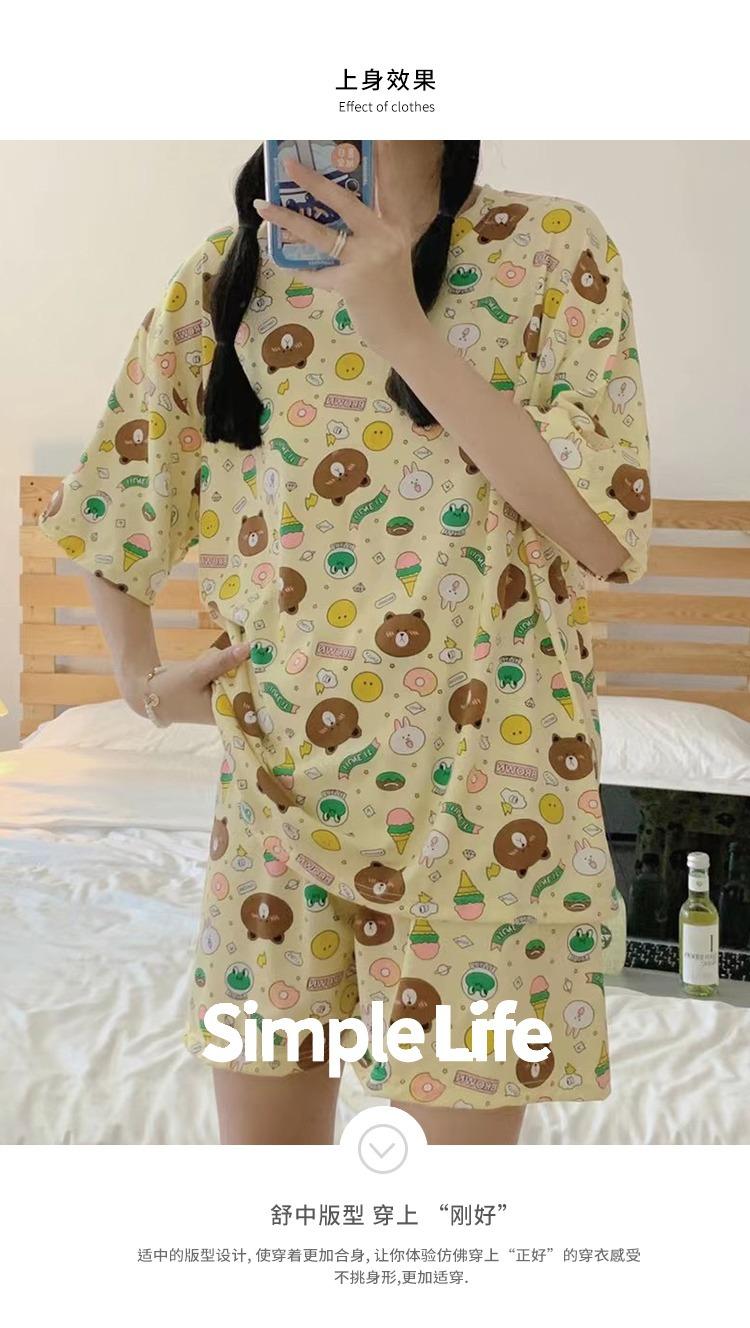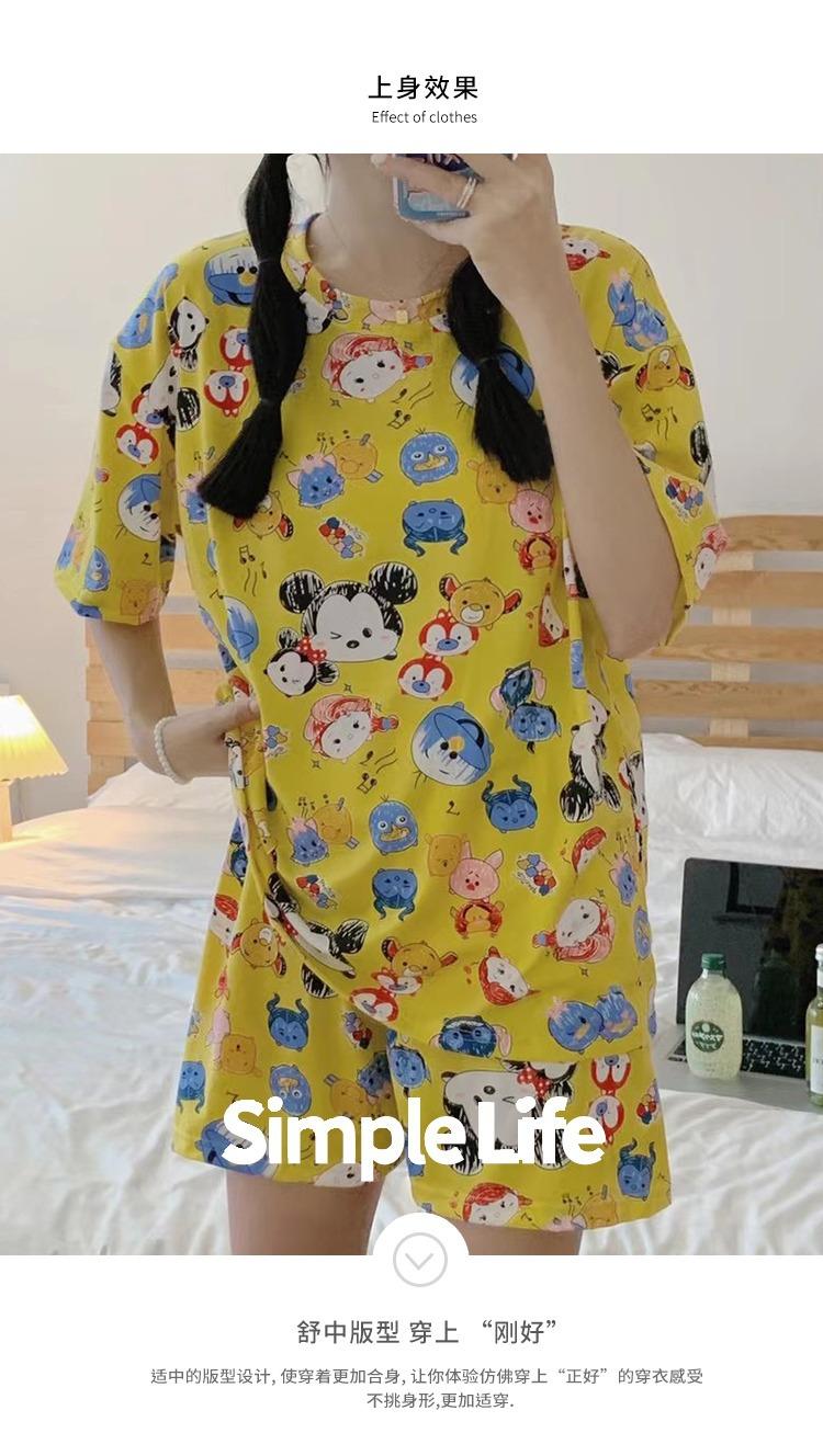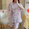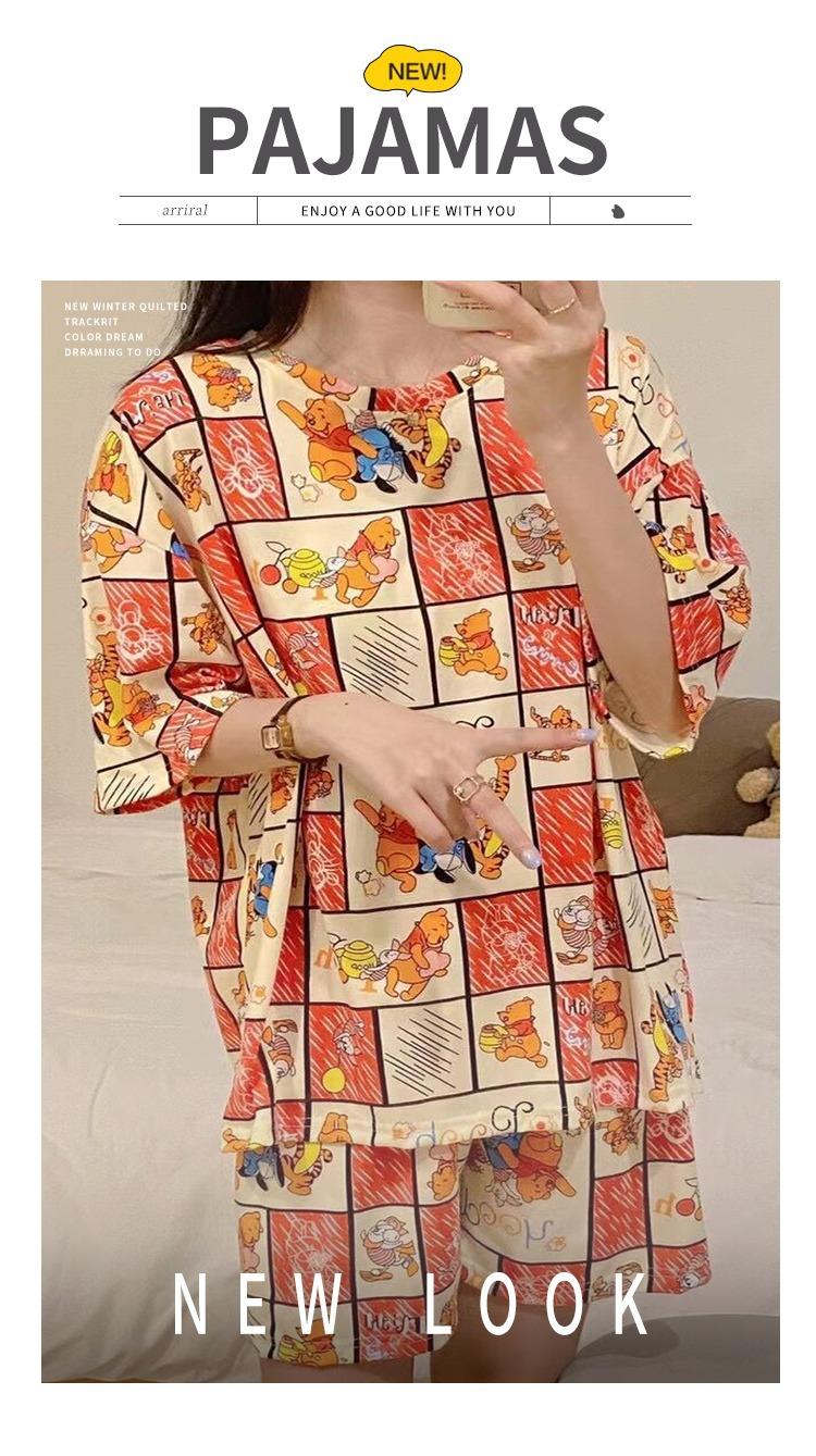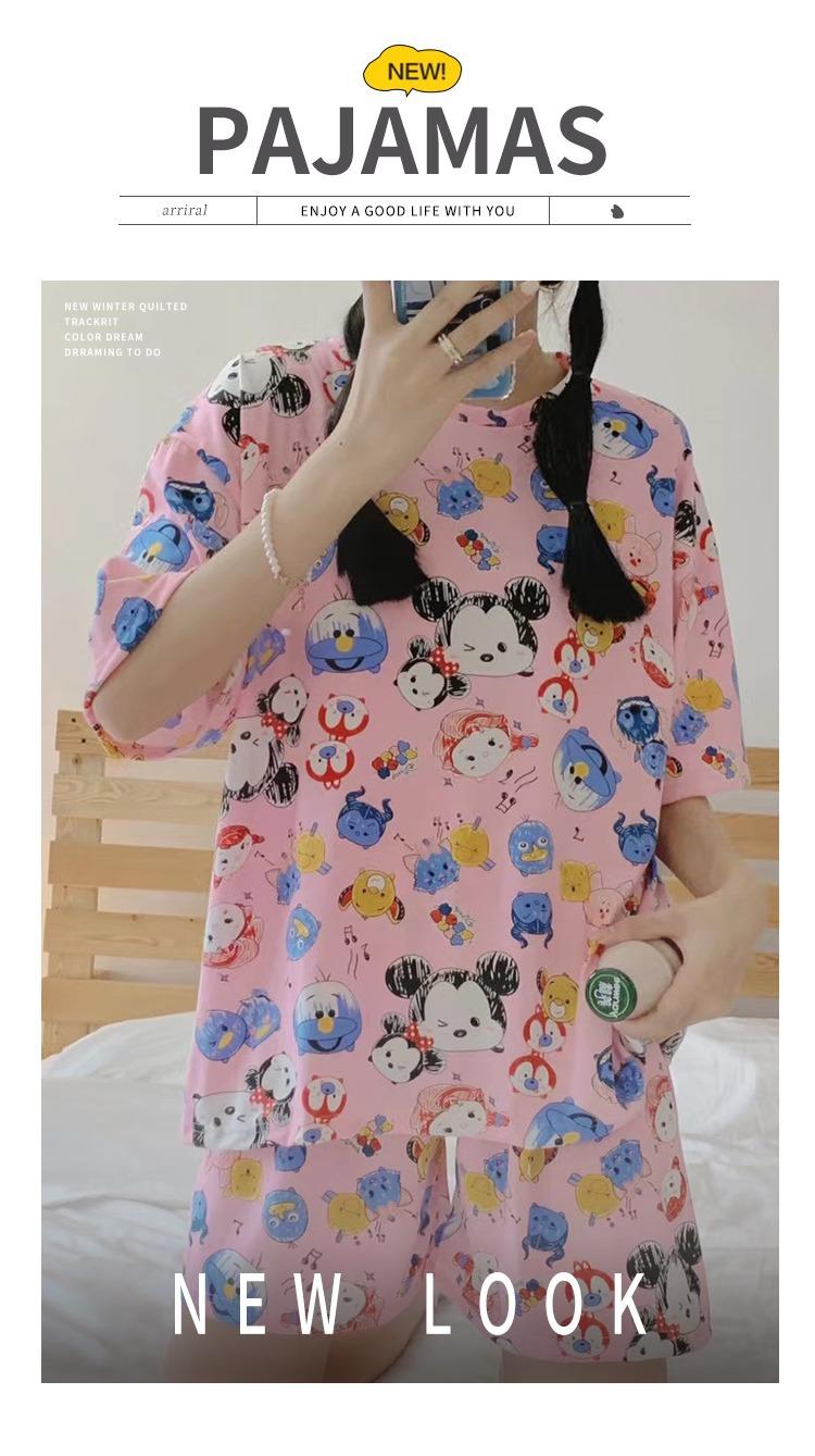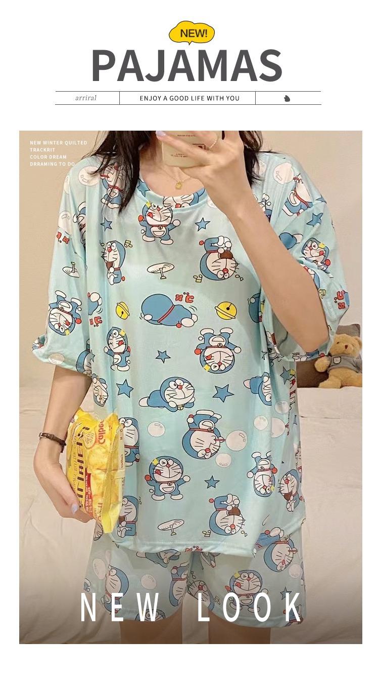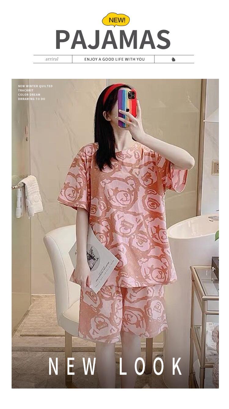 Pijamas de verano para mujer, pantalones cortos de manga corta, traje de rayas, verano, lindos dibujos animados, sueltos, ropa de casa de primavera y otoño para mujer.