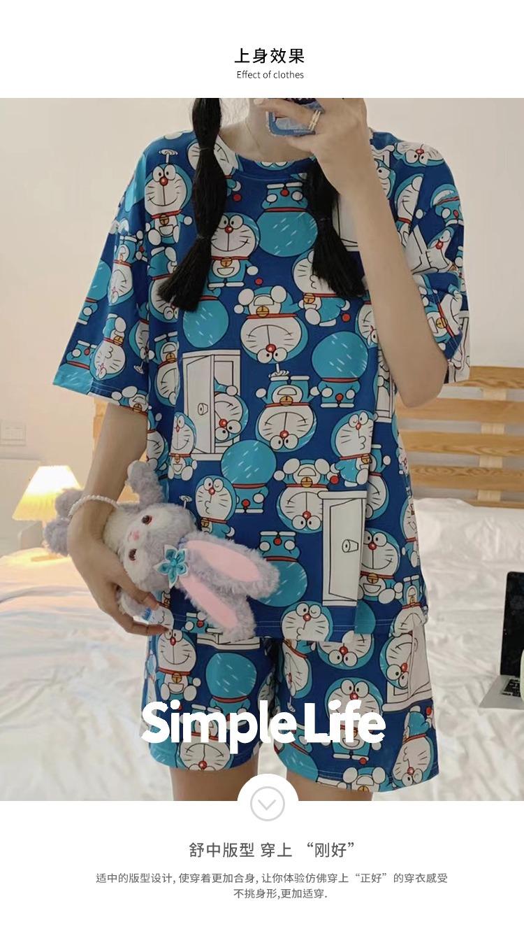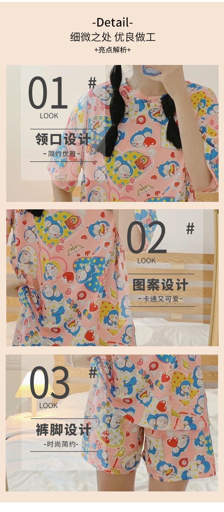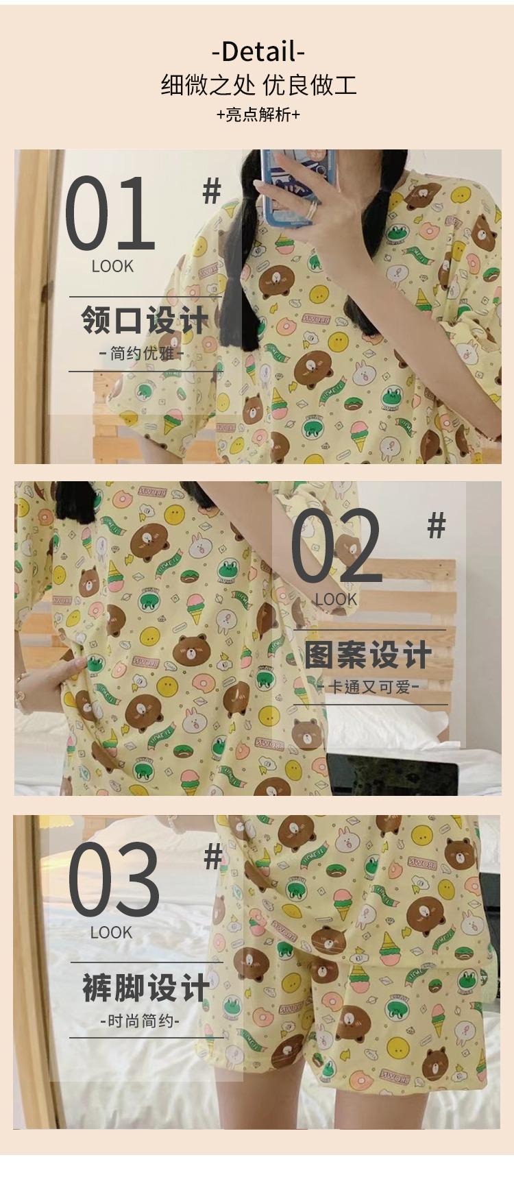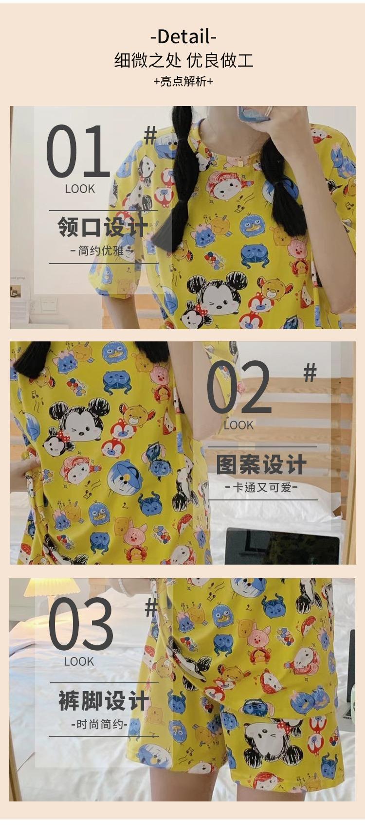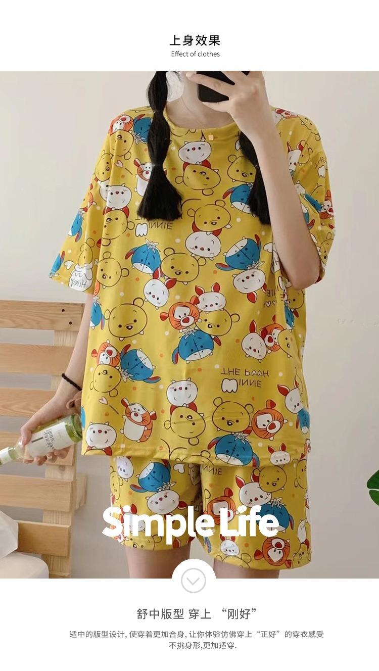 Pijamas de verano para mujer, pantalones cortos de manga corta, traje de rayas, verano, lindos dibujos animados, sueltos, ropa de casa de primavera y otoño para mujer.