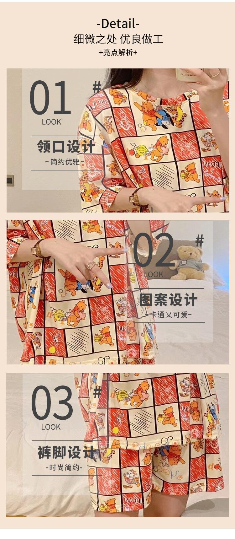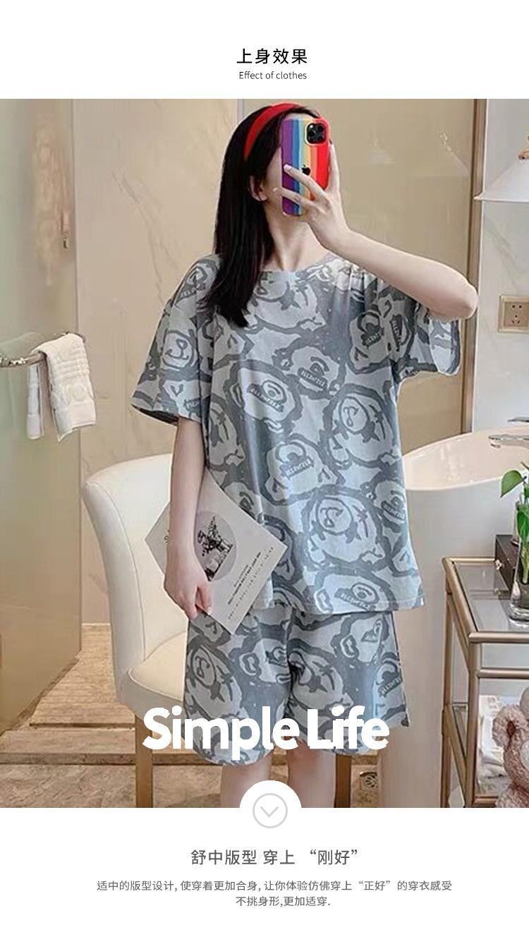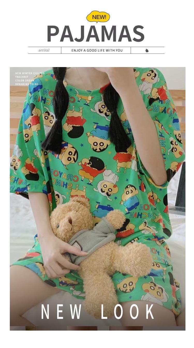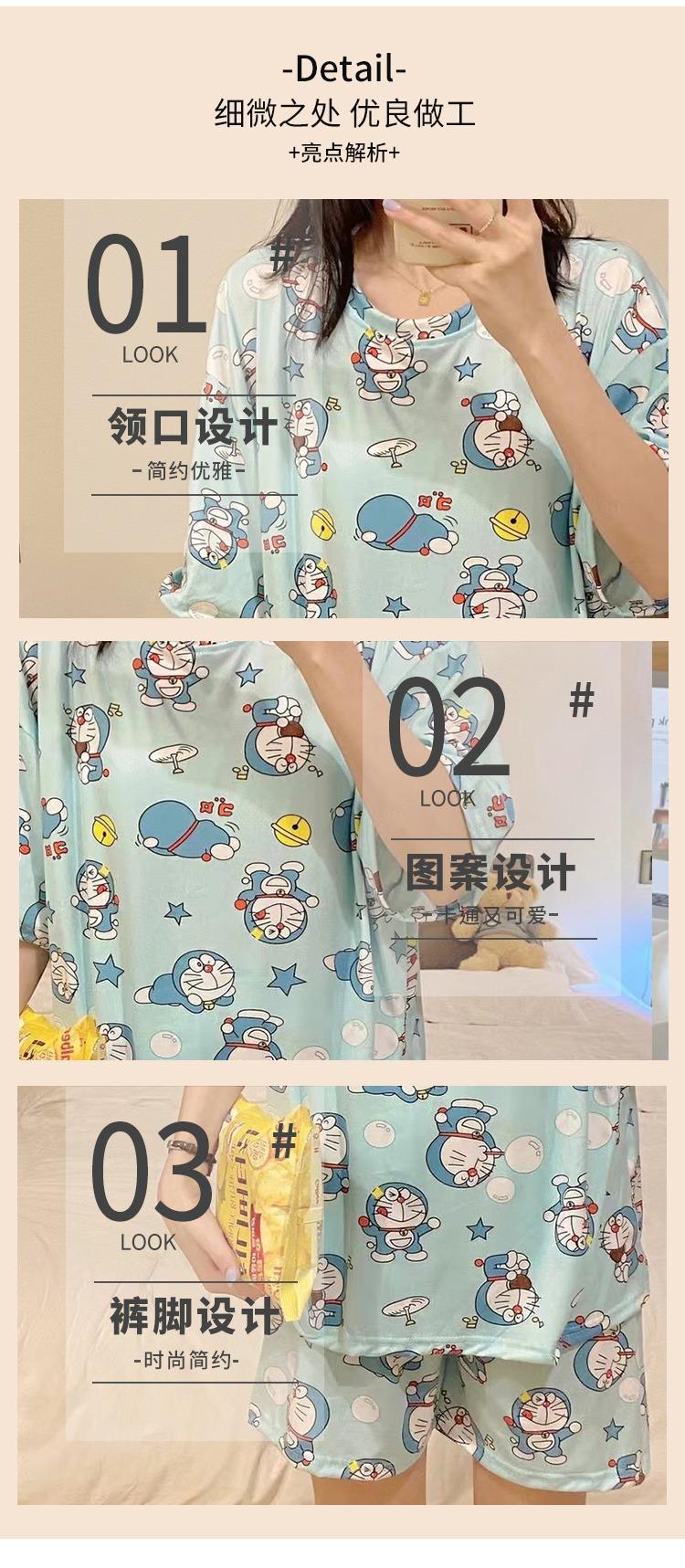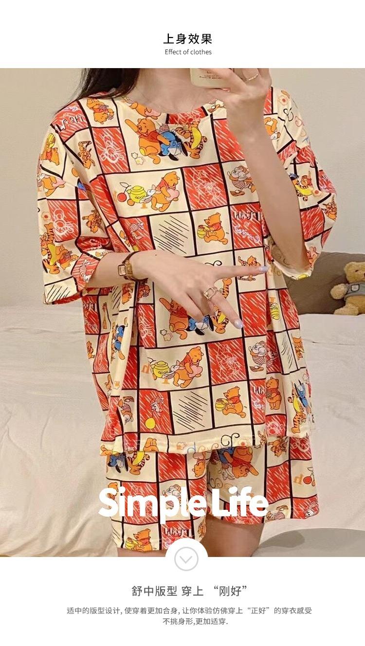 Pijamas de verano para mujer, pantalones cortos de manga corta, traje de rayas, verano, lindos dibujos animados, sueltos, ropa de casa de primavera y otoño para mujer.
