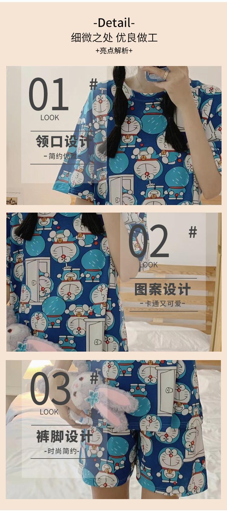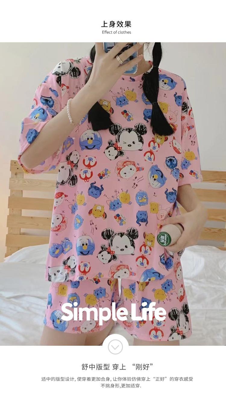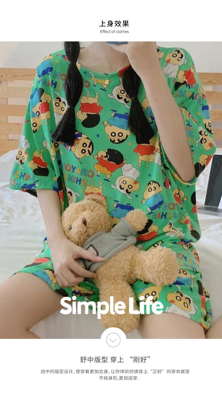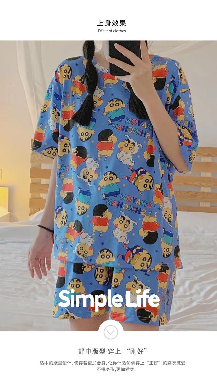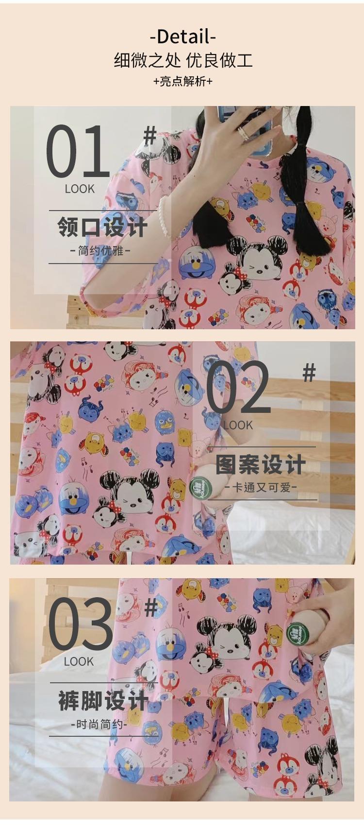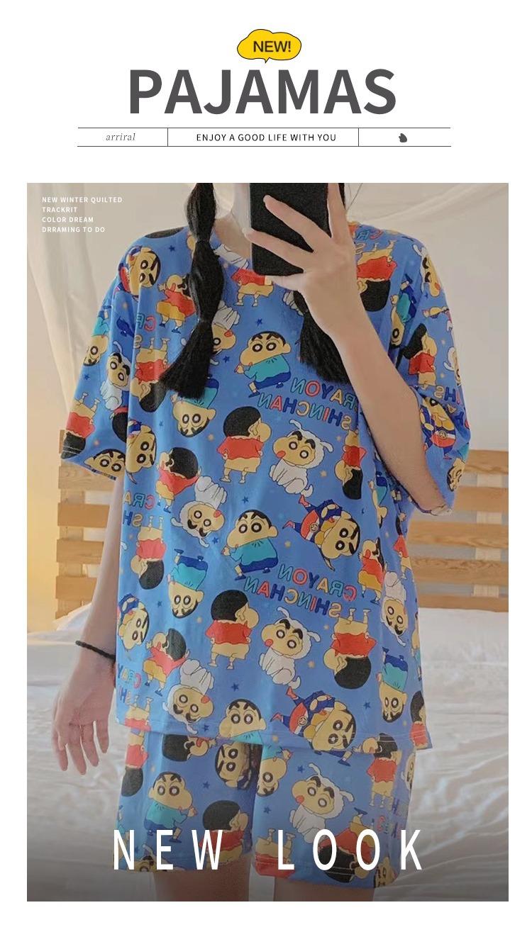 Pijamas de verano para mujer, pantalones cortos de manga corta, traje de rayas, verano, lindos dibujos animados, sueltos, ropa de casa de primavera y otoño para mujer.