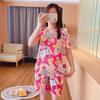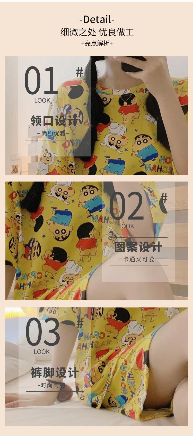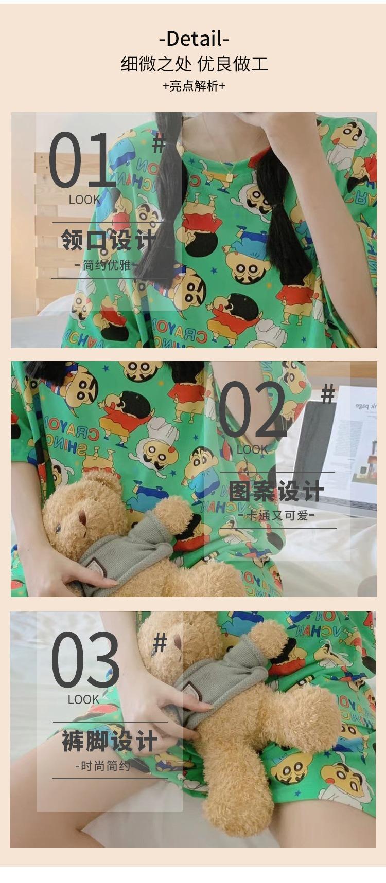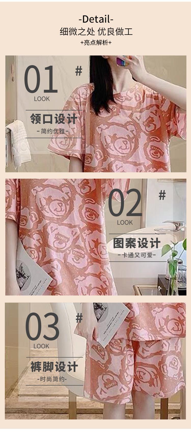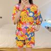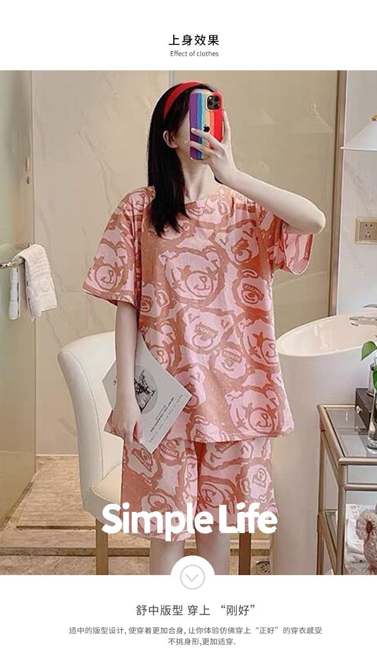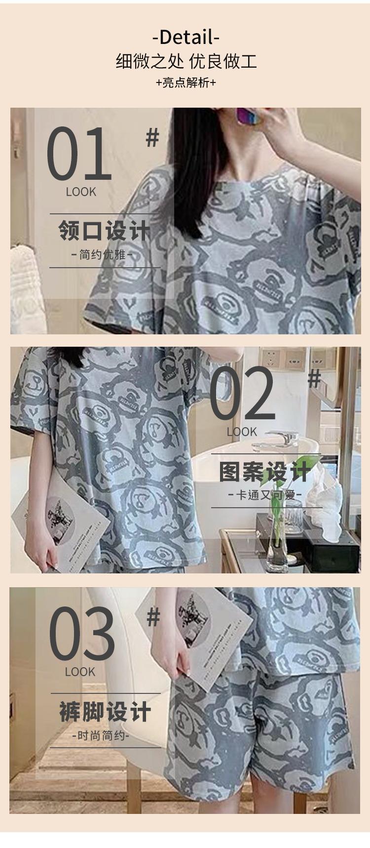 Pijamas de verano para mujer, pantalones cortos de manga corta, traje de rayas, verano, lindos dibujos animados, sueltos, ropa de casa de primavera y otoño para mujer.