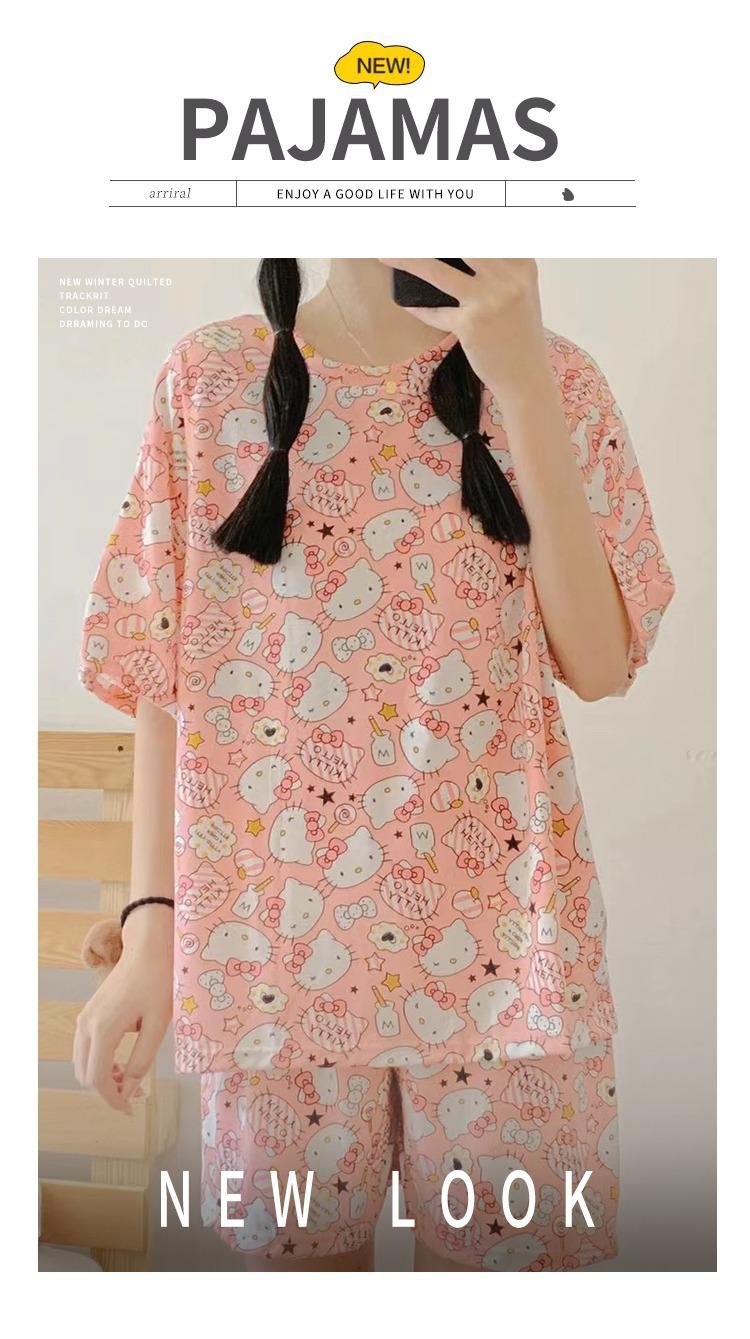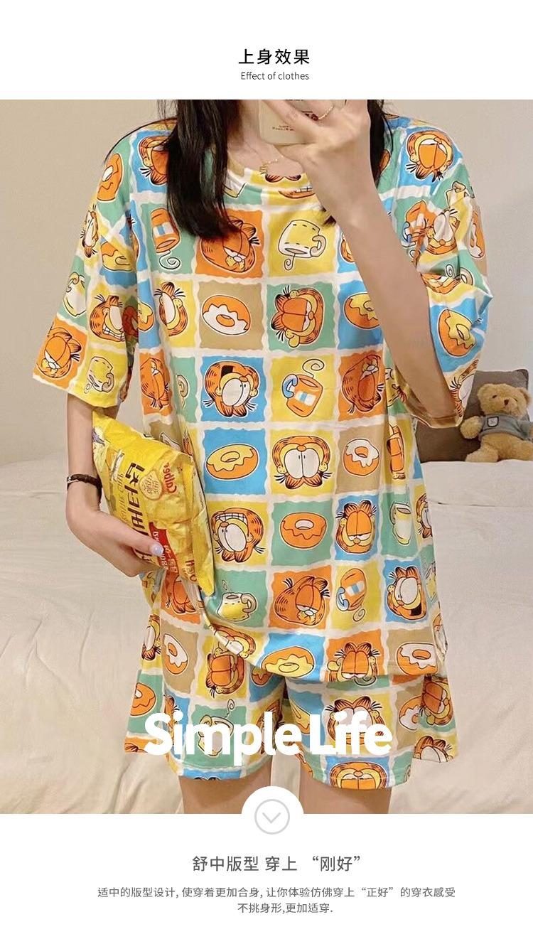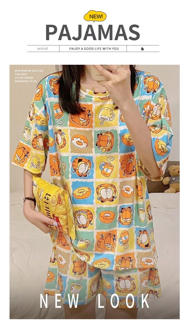 Aq-short set-pink kt cat, Aq-short set-grid snoopy, Aq-short set-garfield cat, Aq-short set-blue jingle cat, A...