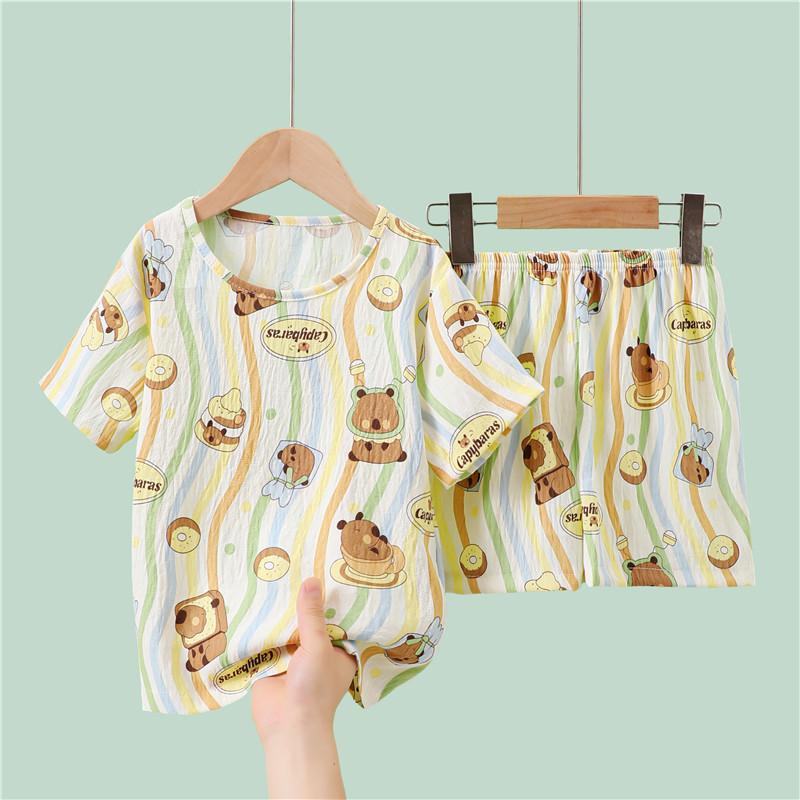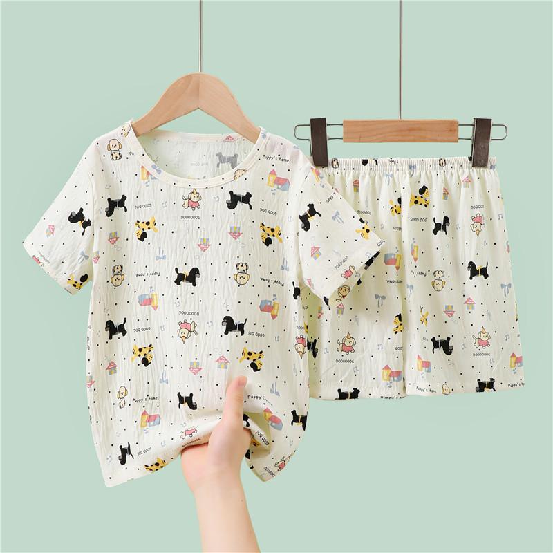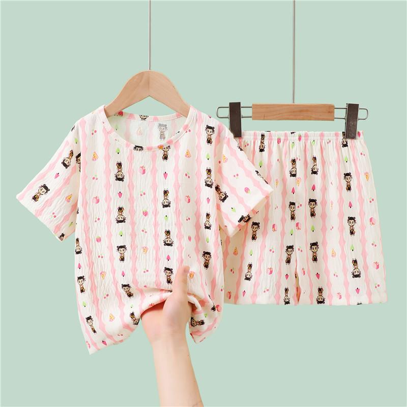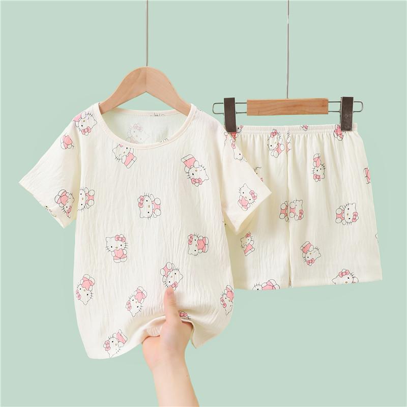 Pijamas de Verano de Algodón Nube de Manga Corta Delgados 2025 Niñas Niñas Verano Medianos y Grandes Traje Infantil Ropa para el Hogar