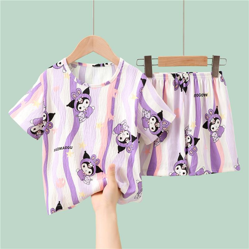 Xj-yunyuan short set 5200#Color striped kuromi, Xj-yunyuan short set 5201#Color bar melody, Xj-yunyuan short s...