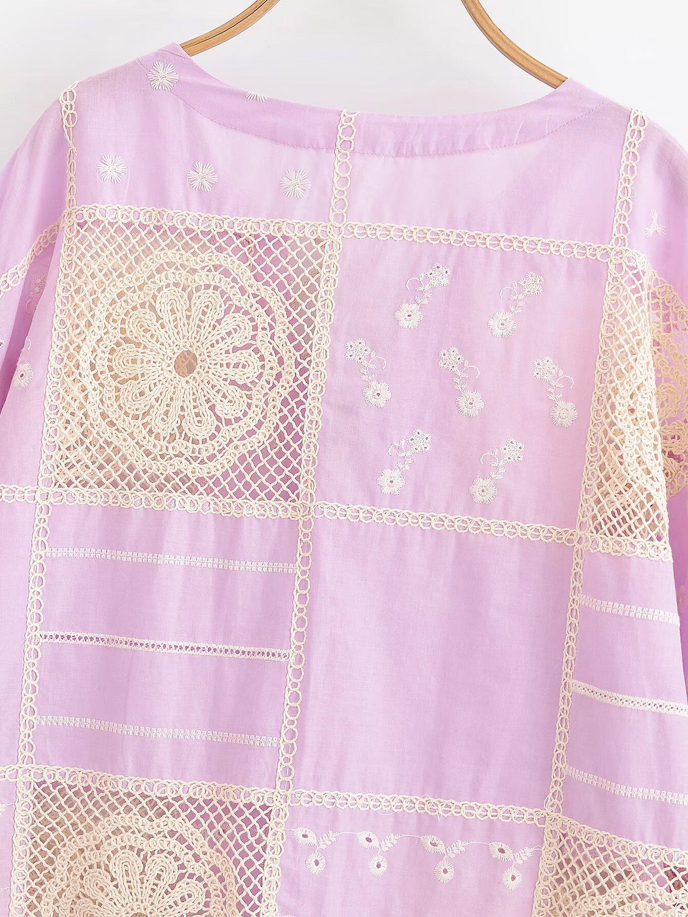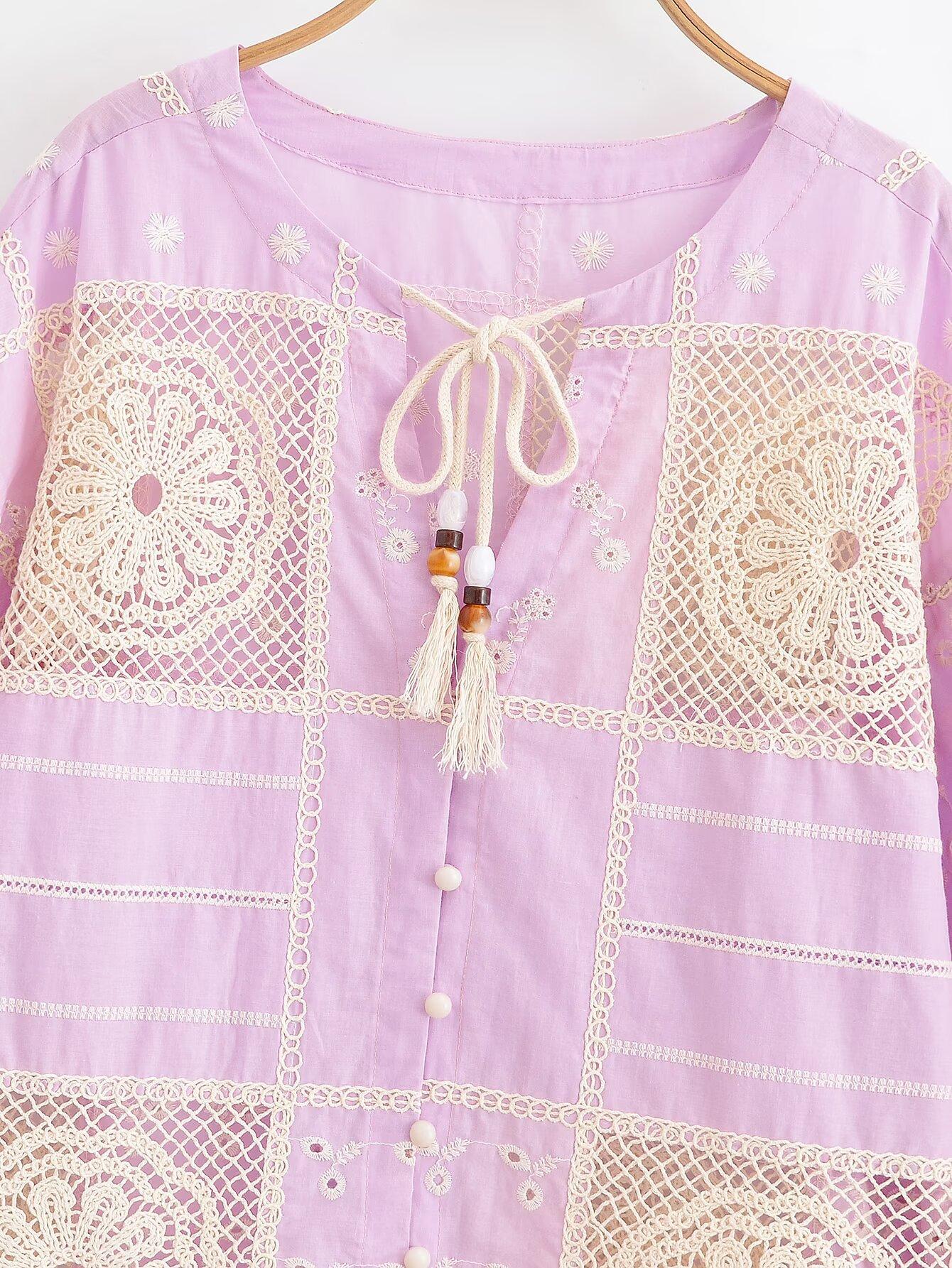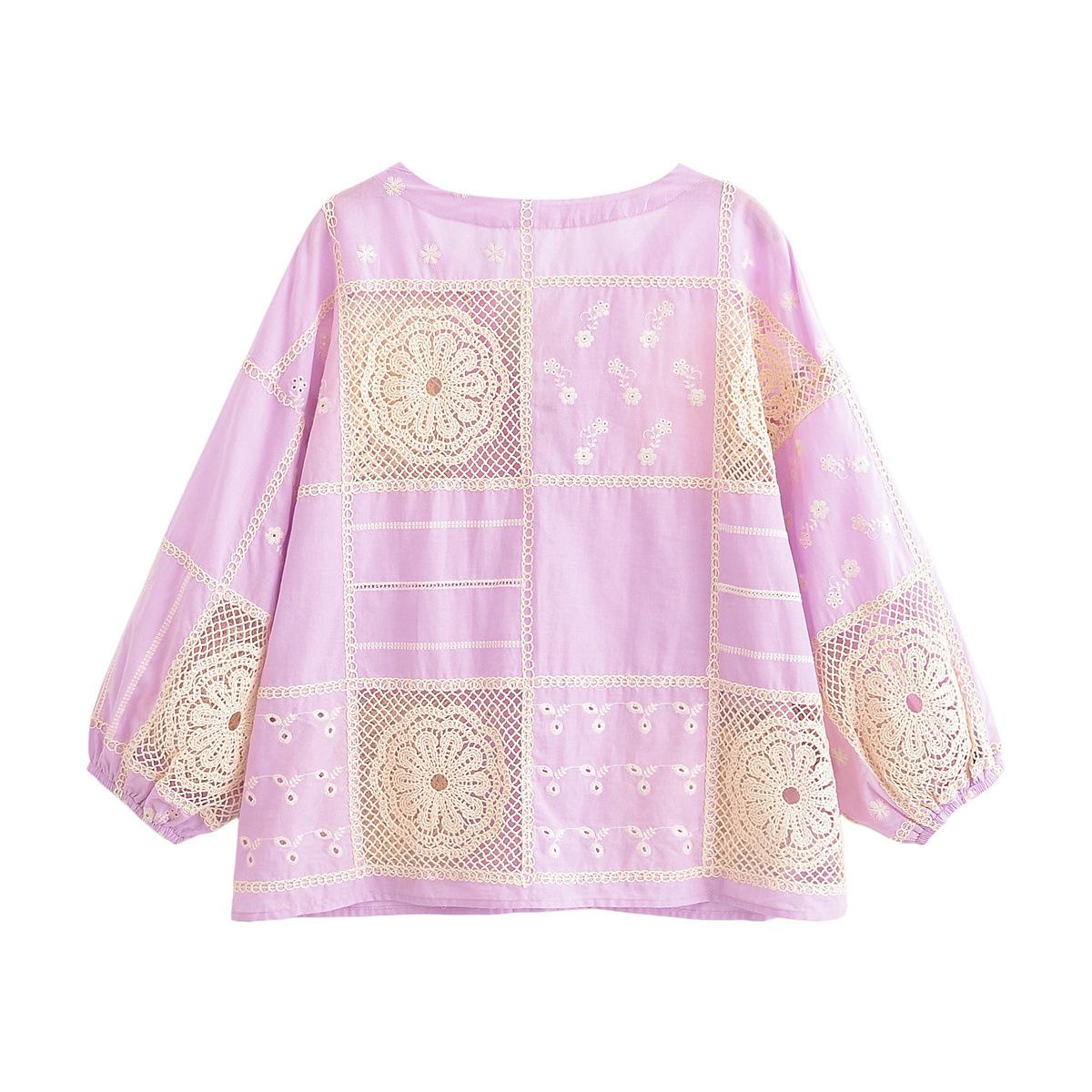 2025 Otoño Nuevo Europeo y Americano Transfronterizo Moda Urbana para Mujer Versátil Camisa Bordada Calada w09 11588